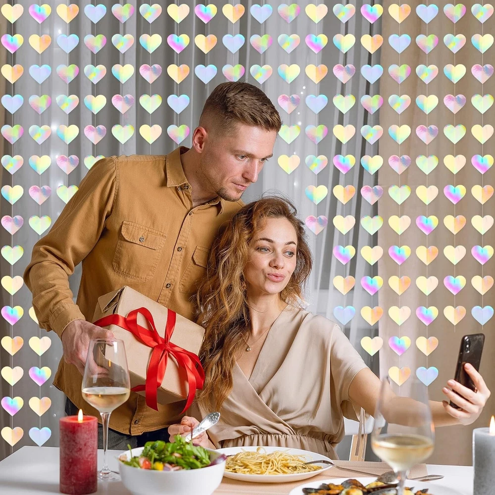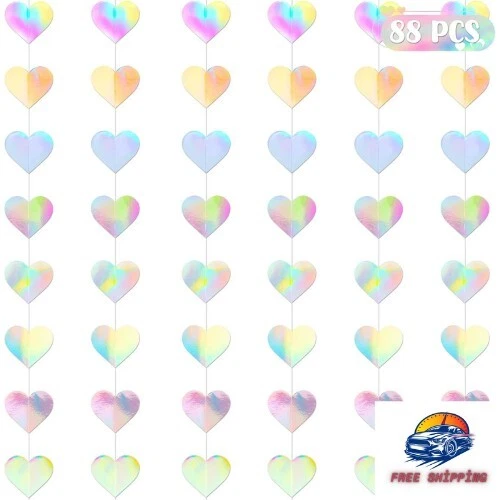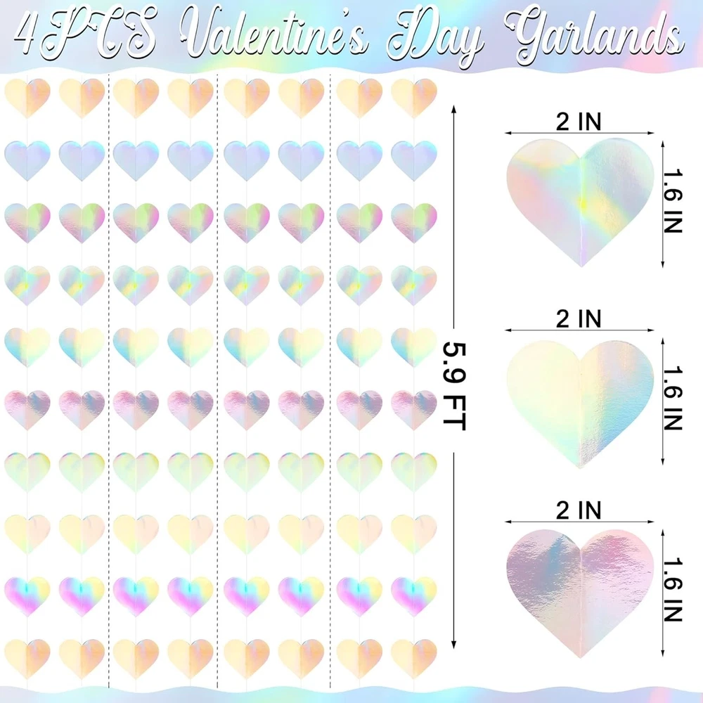 88 Hearts Valentines Day Garland, 4PCS Laser Valentines Day Decoration 5.9 FT Set Includes - This set includes four unique laser Valentines Day banners, each 5.9 FT long. The sparkling laser gives the space more sparkling colors and light. Easy to Use - These laser heart garlands are delicately sewn and do not require assembly. It is very convenient to use directly and saves you time in preparing for Valentine's Day. Sturdy Material - A Valentine garland made of cardboard that can be stored and used. The sturdy material ensures that it won't be damaged easily. It is great for both indoor and outdoor use. Special Design - The Valentine's Day banner is designed with a special laser to make the light in the space shine more brightly, adding more charming colors to your Valentine's Day celebration venue. Versatile Garlands - The unique laser design make these heart garland decorations stand out, suitable for romantic dinners at home, or elegant office decorations, ensuring your Valentine' s Day is great.
