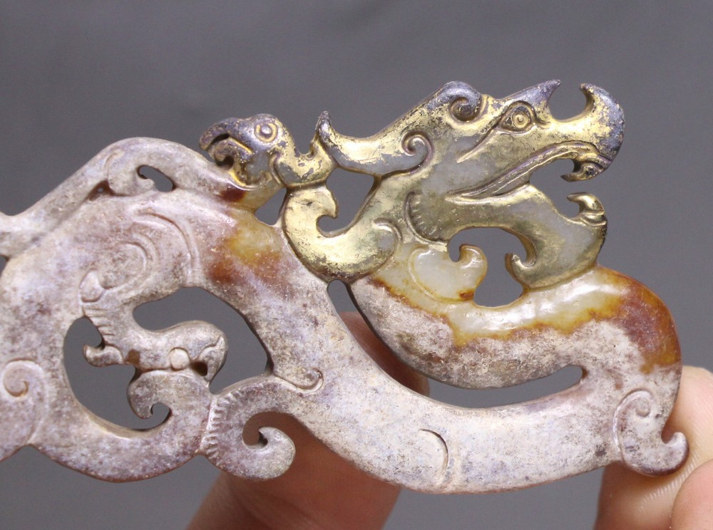 Originally established in Tibet with over 70 years of experience, my family's reputation has made it one of the premier antique dealers specializing in authentic Chinese and Tibetan artifacts. We are currently located in Beijing, the heart of China where we continue our tradition of offering the highest quality art objects from China's 56 nationalities.This is the first time I trade on ebay, and I will try my best to show you my collection. Everything in my collection is low price and perfect.In my ebay store, Honored Customers: My shop has contained warehouse of more ebay items. In my ebay store, there are more wonderful items that are waiting for you, such as silver ware, Chinese porcelain, handmade wood carving, bronze ware, brass and western artistic culture collection, jade ware, animal, vase, Bodhisattva Statues and more goods. Please note that I will give a 5% discount to anyone who bids on an item in my ebay store, I won’t make money.from the shipping cost, if you dislike the item when you receive it, I can refund all of your money to you within thirty days. Please do believe me. Materials: Hongshan Culture Hetian Jade Gold Size: Height 4.5 CM .Long 8.8 CM. Breadth 0.8 CM Weight: 0.4 KG----included the weight of packing materials Condition: Good condition Origin: China Shipping cost by China Post Mail (12--10 days):$0.00 When the individual auction is closed, please do request the total through ebay, and I will send you the invoice including the actual shipping cost as soon as possible . Combine Shipping Discount: (Buy more Save more) quantity discount 2 items 10% off on all shipping and handling fee 3-5 items 15% off on all shipping and handling fee 6-9 items 25% off on all shipping and handling fee More than 10 items 30% off on all shipping and handling fee We will send you the invoice including the actual shipping cost as soon as possible. Payment of winning bid is due within 7 days of auction end. A Payment Reminder email is send after a listing has closed and the item remains unpaid after 8 days. If no response after 10 days, Non- paying Bidder Alert is reported and the item may be relisted. All items will be shipped to you by EMS shipping way to arrive your door directly in 6-12 days , Our shipping prices included the following costs: Shipping Fees, Packing Materials, Processing and Labor Costs. No other cost ! We can ship items to all the world.All items are professionally packed for safety Delivery. Our shipping company does not accept P.O. Box address, so do not forget to provide us your full name and physical address, and available contact phone number (Mobile phone number is best, it is very important to shipper making most correct delivery. No worry, we only provide your private phone number to shipper. for large order we use Cargo service according to our customer demand. For Hungary, the Netherlands, Russia Federation, Iceland, Anguilla, Czechic, Slovak, Anguilla, Chile and other eastern European states, Africa and Middle East countries. We will consider ship by TNT, DHL based on our shipping company(Costs of these countries, please contact me). We recommend this method of payment paypal , which lets us receive your payment instantly and ship your item in time.Ebay invoice will be sent within 8 hours of auctions ending. All payment must be make in 5 days from the date you win the item. If you have any problem, Kindly please email me at PAYPAL before bidding. Thank you! We guarantee 100% satisfaction on all of our auction Items. Our ultimate goal as an Ebay Seller is to provide 100% satisfaction to every customer, customers' repeated business and good positive feedbacks. If you do experience any problem with your items purchased from us , Kindly inform us in order to provide us a chance to resolve the unsatisfaction. If you are not satisfied with the item you've purchased, you can contact us anytime at E-mail before after the end of auction Comparing with the 7 days or 10 days guarantee, we provide "No Excuse Refund" service and If you are not satisfied with your purchase, we will communicate with you ASAP, you may return and change items or get a full refund upon the receipt of the item. Please do not leave a negative feedback before connect me. We will strive to fulfill bidders' satisfaction. ·We encourage you to contact us in all cases, we always try to help our clients and ensure that you are happy with the transaction 2022.02.19