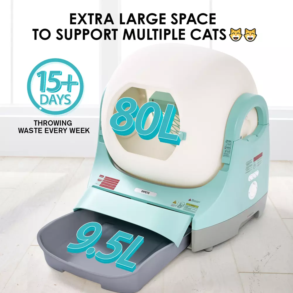 Highly Efficient Silo Expansion : We redesigned the internal structure of the silo, streamlining the internal components and reducing the footprint by 40%, thereby increasing the actual internal use capacity to 80 liters. This improvement not only enhances the appearance of the silo, but also significantly improves its ease of use. The design easily accommodates large cats up to 33 pounds, and Maine Coon mixes can easily walk in for a spin. Friendly for multi-cat households Safety Assurance : We prioritize animal safety with comprehensive 24-hour security and 360-degree coverage. Our system includes four layers of protection to prevent accidents. The entrance features an anti-gravity sensor and physical immobilizer for double protection. Infrared sensors at the rear stop the machine when touched by a cat, and weight sensors at the bottom detect the cat’s presence in real-time. These measures significantly enhance overall safety, providing peace of mind, especially when you're away. APP Remote Management : This self-developed cat litter robot app is designed entirely based on the actual experience of cat users, ensuring that all operations fit perfectly with the daily behavior of the pooper scooper. Whether you are a single-cat household or a multi-cat owner, it is easy to manage. The app notifies you instantly after each cleaning and also records each cat's weight for easy identification. On top of that, you can easily set up a daily cleaning program and adjust cleaning times. With just a few clicks, you can manage everything from your phone! Multiple Deodorizing Design : With innovative patented silicone seals and effective fecal compartments as well as changeable curtains to effectively curb unpleasant odors from the root cause, and the included air spray to keep your home always smelling fresh, this self-cleaning litter box not only makes your life easier, but also provides a more hygienic, odor-free environment for your cat. Structural Innovation :We are the only brand on the market that utilizes a unibody construction of the barrel silo. By using a design that costs twice as much as traditional silo construction, we have successfully prevented the problem of urine penetration to the bottom of the machine. This innovative design not only prevents damage and malfunction of the machine, but also completely solves the problem of urine penetration in high peeing cats. Reflects thoughtful consideration of the needs of pets and owners! Three Modes :Designed for practicality and efficiency, the Dvpets Smart Cat Litter Maker features intelligent cat usage sensing with three modes: manual, automatic, and do not disturb. Using advanced gear-driven motor technology, it quickly cleans clumped excreta by rotating and sifting. The spout design allows easy cleaning, while the silicone sealing ring and rubber edge control odors, providing a fresh, clean experience. With multiple cleaning modes, you only need to change the litter bag once a week, eliminating daily scooping and odor issues. Dvpets ensures a clean and healthy environment for you and your cat. Extre Capacity: The 9.5L large-capacity litter box is not only designed to be used as a regular litter box on its own, but is also equipped with a separate weigh-sensing technology, which is a disruptive innovation in the field of electronic litter boxes. This innovation has allowed the new generation of poop collection bins to show its strength in the litter robot market. The pooper scooper can track the details of each cat's every toilet visit in real time, accurate to each real-time excretion, providing a detailed data record for monitoring your cat's health. A+ Grade After-sales Guarantee : we provide professional after-sales service, including 30 days no-excuses return policy, overseas repair engineers covering the whole United States, and 7x24 hours phone and email customer service support. In addition, we offer a three-year warranty warranty. Regardless of any questions you may have, our customer service team is available online 24/7 to provide you with fast, friendly support, ensuring that your experience is always as exceptional as an A+ rated product. You can also give us suggestions about our products, and if we take them on board, we'll send you a freebie and a quick upgrade. On Oct 9, 2024 at 18:40:51 PDT, seller added the following information: