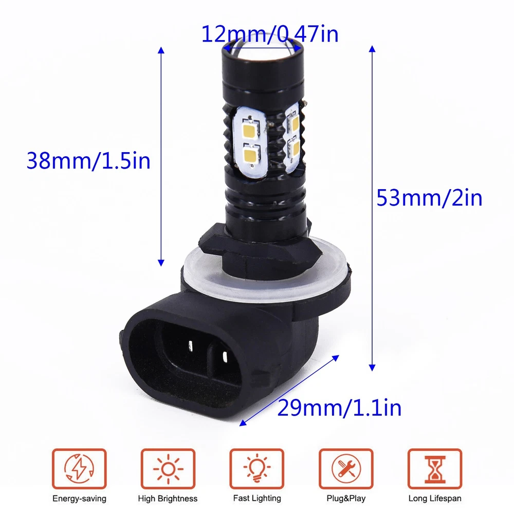 Product Description Features: *Ultra Bright Car LED Fog Driving Lights *Can be used as Fog Driving Lights/ Daytime Running Light for DRL *Super bright white light, giving your car an extra glow *Faster on/off response, no delay to light up *Easy to install, and play *Low power consumption, energy saving and *Long lifespan, waterproof& vibration resistance, to use * brand new and high quality Specifications: *Light Color: White(As Pictures Show) *Color Temperature: 6500K *LED Type: 2323LED *LED Number: 10 *Lumen: 1200LM *Beam Type: for 360 Degrees *Power: 50W *Lifespan: 50000 hours *Waterproof Grade: IP68 *Interchange Number:, L,, 889, 862, 894, 894X, 896, 898, 886, 888 *Dimension: 53*12mm(Approx.) Package Contents: 2pcs Fog Lights Note: The real color of the item may be slightly different from the pictures shown on website caused by many factors such as brightness of your monitor and light brightness. Payment We accept payment via Paypal only. Payment must be made within 5 days, Non-payment may result in an UPI (Unpaid Item), eBay will automatically close your account if you accumulate 4 UPI's total. Import cutoms duties or taxes which are not included in item price, if any, are on buyer's responsibility. You can check with your local customs office for further information prior to bidding/buying. Delivery details We only ship to confirmed Paypal addresses. Please comfirm that your paypal address is in line with your shipping address. Please kindly note that the c ombined shipping is not provided because the shipping fee is calculated by weight. Also, the each additional item means exactly the the same color and size. It takes about 7 -15 working days to US; about 10-30 working days to other countries. Transit time may be a little delayed because of the bad weather and customs inspection . If you do not receive your item within 30 working days since payment finished, please contact us immediately for further assistance. Contact us We strive for 100% customer satisfaction! Positive Feedback is very important to us. If you have any questions, p lease feel free to contact us via "Ask seller a question" . We will reply your email within 24 working hours.