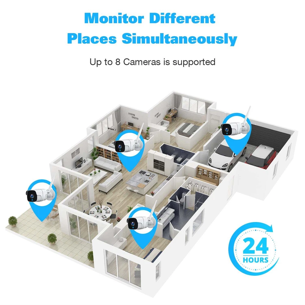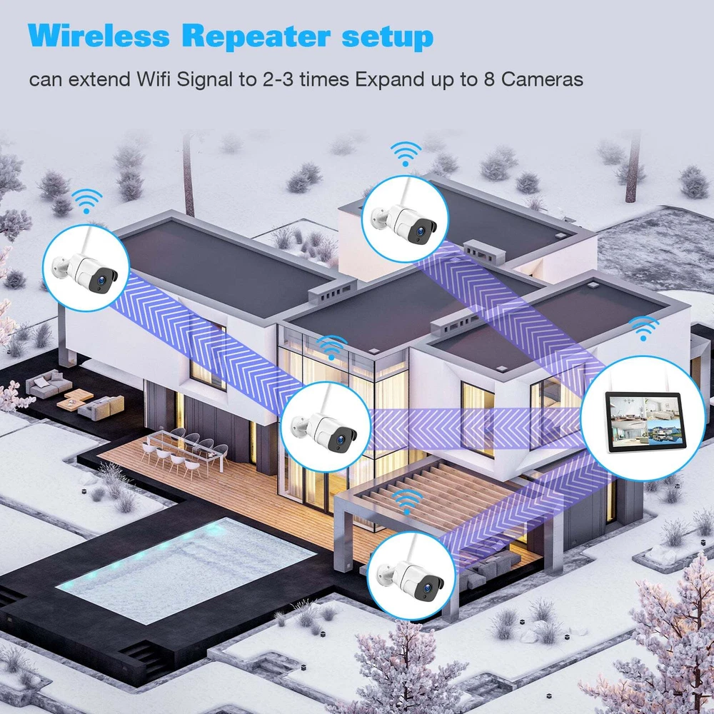 8CH 2MP Home Wireless Security Camera System 12" LCD Monitor 1080P WiFi NVR 3TB