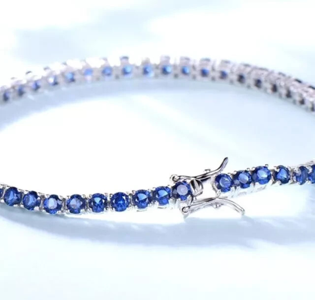 8CT Round Lab-Created Sapphire Tennis Bracelet in 14K White Gold Plated for Women