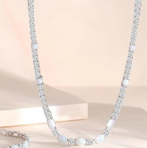 Country/Region of Manufacture: India Main Stone Creation: Simulated Era: Undated Metal: Sterling Silver Main Stone Length: As per picture Material: Stone, Metal Antique: No Handmade: Yes Metal Purity: 925 Pendant/Locket Type: Na Personalize: Yes Secondary Stone: Simulated Diamond Chain Type: Cable Color: White Closure: Snap Main Stone: Opal Base Metal: Sterling Silver Gemstone Clarity Grade: Na Theme: Beauty Type: Necklace Pendant Shape: NA Signed: No Wholesale: Yes Features: Engraved Vintage: No Main Stone Depth: As per picture Main Stone Color: Multicolor Main Stone Shape: Oval Setting Style: Prong Main Stone Treatment: Not Enhanced Number of Gemstones: Na Brand: karunas-76 Country of Origin: India Style: Tennis Necklace Length: 18 in Cut Grade: Excellent Occasion: Anniversary, Birthday, Christening, Christmas, Confirmation/Communion, Engagement, Graduation, Mother's Day, Valentine's Day, Wedding Main Stone Width: As per picture Customized: Yes Seller Warranty: Yes