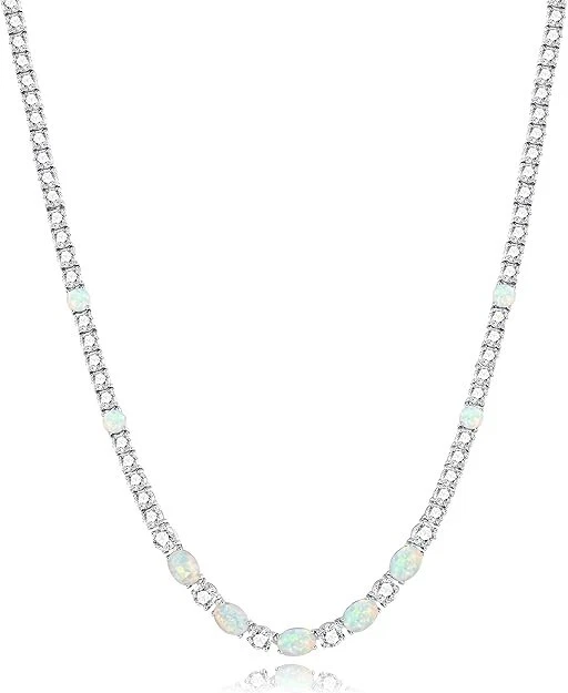 8Ct Oval Cut 18 Simulated Fire Opal Womens Tennis Necklace 14K White Gold Plated