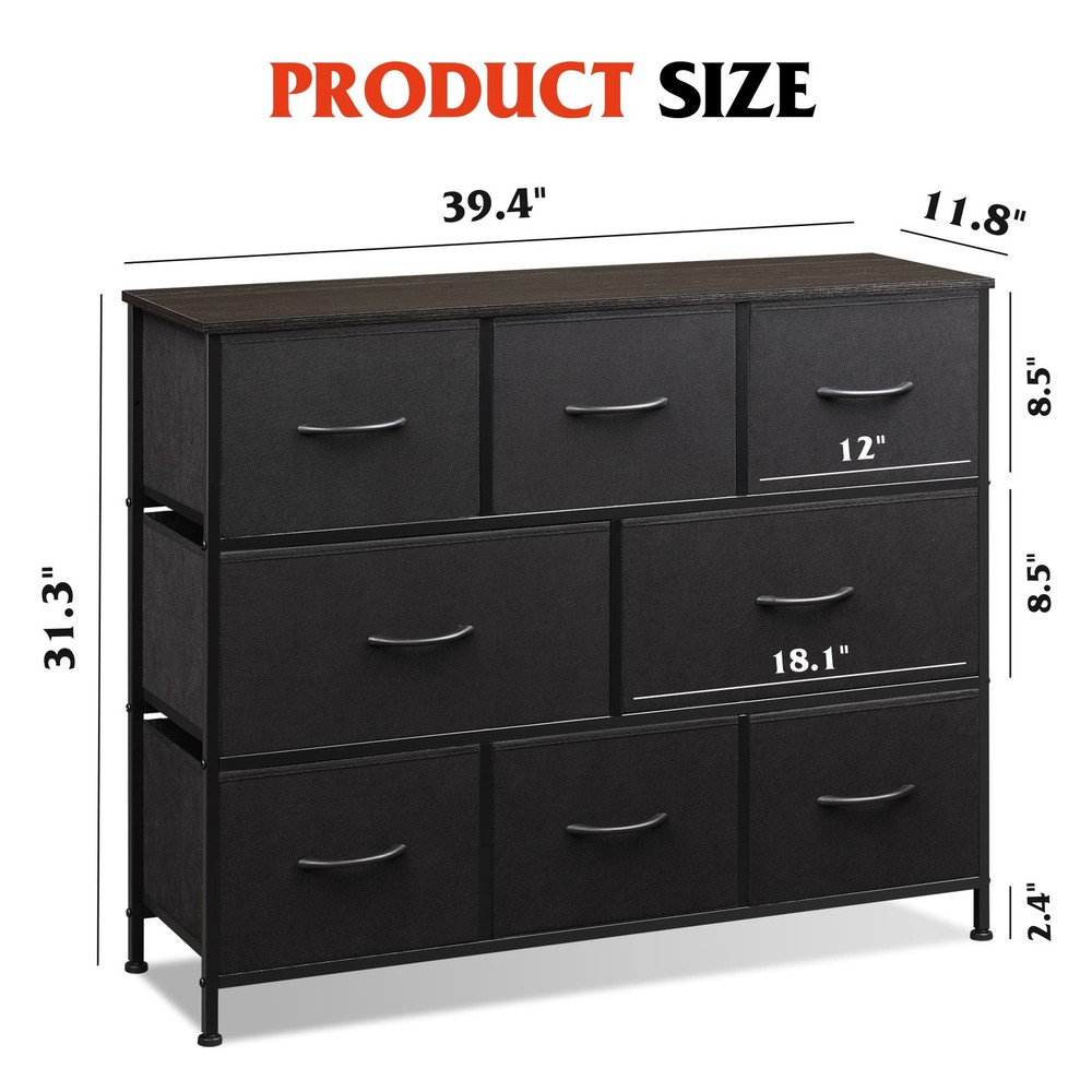 Multifunction Dresser: This wide dresser is perfect for bedroom, closet, living room, hallway, dorm and office, and matches perfectly with other fabric dressers. 【⏰Large Storage】With 8 large deep drawers, the dresser for bedroom provides endless organizational possibilities and can help you keep your home clear of clutter. 【🏠Multifunction Dresser】This wide dresser is perfect for bedroom, closet, living room, hallway, dorm and office, and matches perfectly with other fabric dressers. 【✨Exquisite Design】 Wood top can place things you want to display or keep within reach. The bedroom dresser can also be a dresser TV stand for 32", 40", or 43" TV. 【🎁Practical and Durable】Selected materials ensure years of use of the dresser. Easy-to-pull handles help open and close the drawers smoothly and 4 adjustable feet can protect your floor from scratches. 【📕Easy Assembly】The storage drawer unit measures 11.8" D x 39.4" W x 31.4" H. The chest of drawers comes with clear step-by-step assembly instructions and tools needed for installation; assembly video has been uploaded for your reference. If you encounter any problems during installation, please feel free to contact us to request assistance.