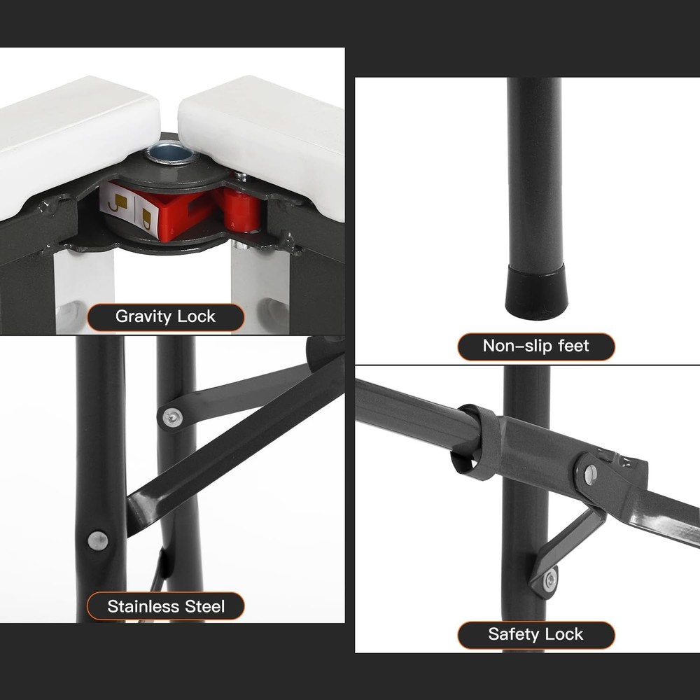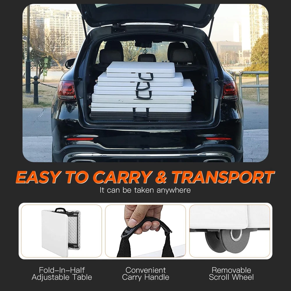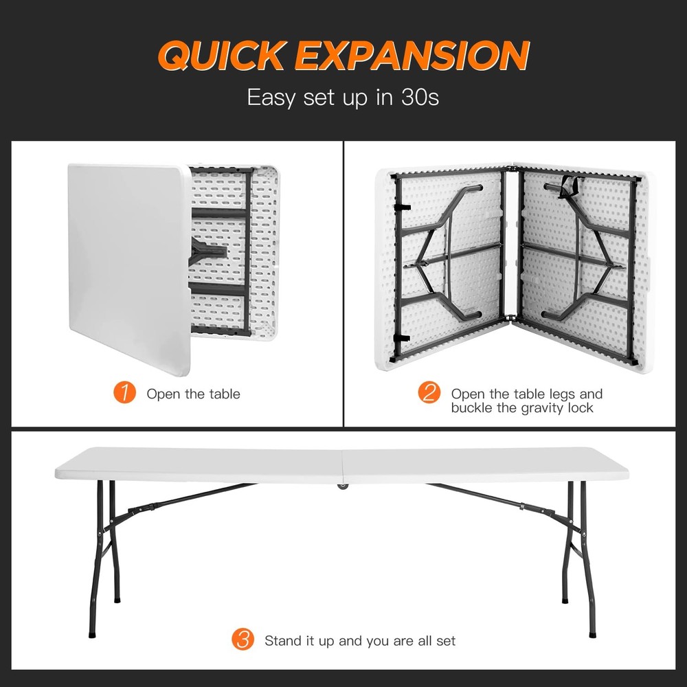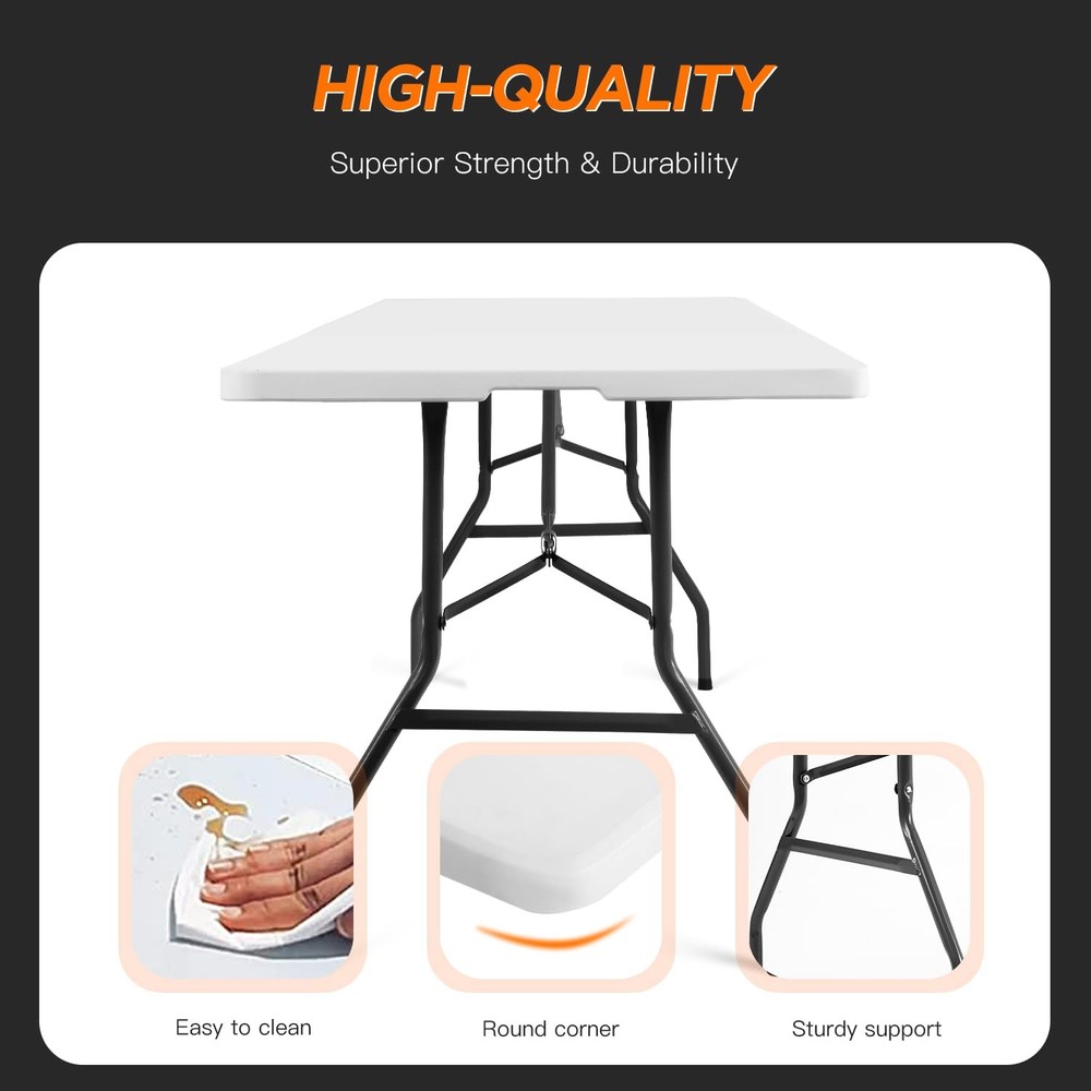 💕【Sturdy Support】 The Picnic Table with Powder-coated steel legs, the camping table frame joint locks, and non-slip rubber feet help to keep the plastic table in place during every event. 💕【Portable】 Foldable design of the folding table includes a side lock and handle, making the the camping table easy to take on the go or store away in a compact space when not in use the plastic table. 💕【Easy to fold up and be stored away】You can fold the picnic table up and easily store behind your dresser, Then the camping table are outta sight, and easy to grab the plastic table when needed. 💕【No assemble needed】The picnic table come fully assembled and folded of the camping table.You only need open the box,take out of the plastic table.Then you can use it. 💕【Take The folding table to Anywhere】The picnnic table comes with a handle, great for commercial use, parties, backyard events, traveling, family exercises, etc. You can take the plastic table to everywhere you want.
