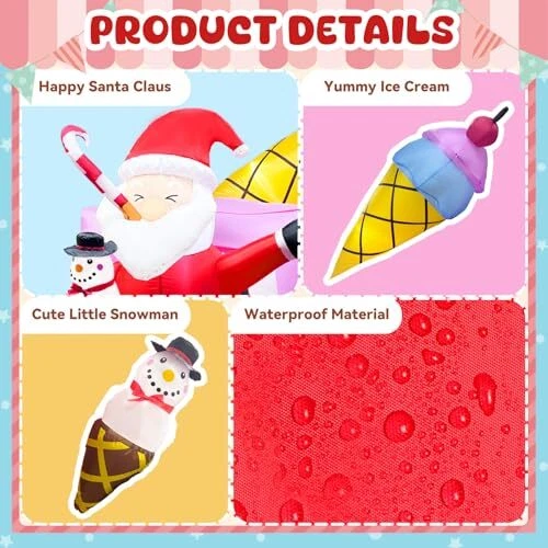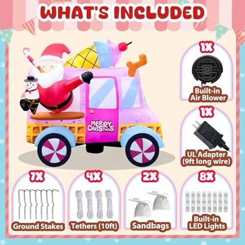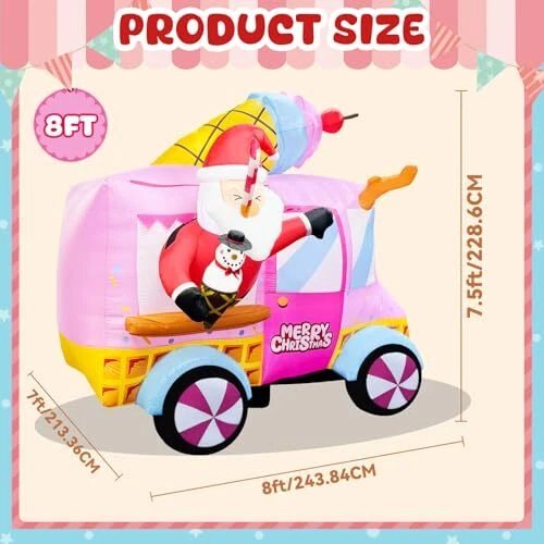 30 Days Return Policy Fast Delivery Trusted seller 8FT Santa Ice Cream Truck Inflatable, Cute Christmas Inflatable Outdoor Decoration Santa Claus Blow Up Snowman Cone in Giant Pink Van with Built-in LEDs & Blower for Yard Xmas Party Decor Product Description 【8FT Christmas Santa Truck Inflatable】The christmas inflatable outdoor decoration features an adorable pink ice cream van with antlers, a happy santa claus holding a snowman ice cream, a perfect addition to your winter wonderland display! What's more, the blower, adapter, ground stakes and fastened ropes that everything needed for setup are all included in the package. 【Outdoor Lighted Christmas Decorations】Adorned with 7 LED lights, when darkness falls, this christmas truck inflatable will light up your front yard, creating a warm and inviting glow that's sure to delight all passersby, making this a delightful addition to your outdoor Christmas decor. Your kids and friends will love this joyful addition to your blow up Christmas decorations. 【Weather Resistant Christmas Yard Inflatables】Made of 210T polyester, this outdoor inflatable christmas decorations is not only waterproof, but also soft, durable, and wear-resistant, rest assured that it's built to withstand years of use. With the added sandbags, fastened ropes and ground stakes, this santa claus inflatable can confidently face any wind or snow challenge or any other weather conditions that may come its way. 【Easy Installation with Self-Inflation】Setting up this ice cream snowman outdoor Christmas decorations is a breeze. It features a built-in blower that self-inflates blow up santa in seconds. Simply plug in and watch as it pops up magically before your eyes. The lightweight materials and user-friendly design make it a snap for anyone to set up in their yard. And when the celebration is over, taking it down is just as easy. 【Perfect Outdoor Santa Claus Decorations】Transform your yard into a winter wonderland with this delightful 8 ft christmas inflatable outdoor decoration. Perfect for decorating your house, lawn, yard or patio with this Christmas inflatables snowman. The beautiful design of the Christmas outdoor decorations is sure to bring a smile to the faces of all who see it. Shipping Returns Payment Shipping Shipping is FREE to all addresses other than APO/PO boxes in the lower 48 states. All our stock ships from US-based warehouses. Shipped via USPS or UPS (depending on location and package weight) Unless stated otherwise, all orders will ship within 24-72 hours of your payment being processed. Check our feedback to see the great reviews of FAST shipping we offer. Returns As our valued customer, we will do our best to make sure the product you receive arrives to you on time and as expected. If you are not satisfied with your purchase, please contact us within 30 days of receiving your order to process a return. Payment We currently accept payment via eBay managed payments only. Once payment is cleared, we will dispatch your shipment within 1-3 business days. Please refer to the "Shipping" tab for more information regarding shipping speed to your destination.