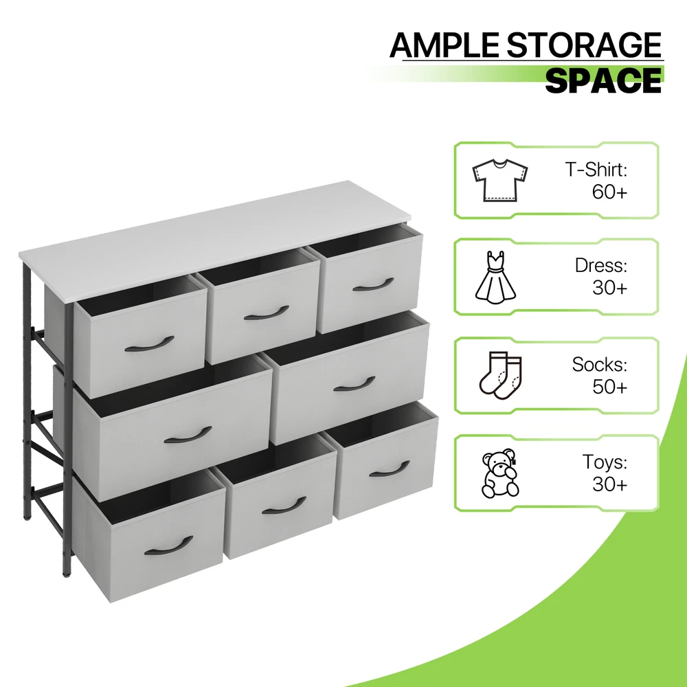 Magshion Home About Us Feedback Add to Favourites New Arrivals Ending Soon Contact Us Barstools LED Lighting home décor patio pet supply shelf Others 8-Fabric Drawer Dresser Clothing Organizer Storage Cabinet Bedroom Furniture Bin Item Description The 8-drawers dresser storage organizer is very suitable for closets, bedrooms, entrances, living rooms, and other places, adding storage space to smaller spaces. Wide drawer can store clothes, socks, towels, and daily necessities, keeping your home clean and tidy. The sturdy metal frame provides stable support, the wooden tabletop is waterproof, and can withstand up to 50lbs, making it suitable for use as a TV stand. Adjustable legs to maintain balance and prevent scratching of the floor. Brand : Magshion Dresser Type : Vertical Dresser Color : Gray Frame Material : Iron Top Material : MDF Overall Size : (L)39.5" (W)12.0" (H)32.0" Number of Drawers : 8 Tipover Restraint Device : No Assembly Required : Yes Recommended Rooms : Bedroom; Living Room; Office; Entryway Spacious 8-Drawer Design - Drawer dresser features 8 large non-woven drawers, perfect for storing clothes, toys, blankets, socks, underwear, and more. The versatile tabletop can hold daily items or serve as a TV stand, gaming center, or media console. Quality Material - Compared to cheap non-woven fabrics, our drawer dresser uses high-quality non-woven fabrics that are harder, more breathable, durable, less prone to mold, safe and environmentally friendly, and come with plastic handles that are easy to pull. Solid Construction - The sturdy metal frame and waterproof MDF board top extend the lifespan of the drawer dresser. Strong fixing rod enhances the stability of the cabinet. 4 adjustable legs can protect the floor from scratches. Easy to Assembly - Following the instructions, you can easily install the drawer dresser within 30 minutes. The package includes all parts and accessories, with instructions and installation videos. Overall dimensions: 12"D x 39.5"W x 32"H. Versatile Dresser - This dressers & chests of drawers is suitable for various styles of houses, beautiful and practical, and can be placed in the bedroom, living room, closet, nursery, dormitory, and entryway to expand your storage space. Overall dimensions: 39.5" L x 12" W x 32" H. About Us Payment Shipping Returns Feedback Contact Us Magshion Inc. Decor Essentials We are in the business of enriching your home experience through creative, stylish and yet affordable décor. Magshion is an online platform offering a broad selection of traditional and contemporary merchandise including furniture, Patio Goods and home improvement products, expertly crafted and designed to last. We are confident that our products will capture your imagination, and help you turn your inspiration into action without hurting your wallet. The growing willingness of customers to do their shopping online encouraged us to set up our first online store on eBay in November, 2005. Since then we have established a strong presence on Amazon, as well as our own e-store. We make sure to keep up with the trends in interior design and dedicate our efforts to bringing you the latest styles. Having strong relationships with factories abroad allows us to pass the savings along to you. Our online platform offers a wide range of products so you can pick the ones that express your personality and fit your home and budget. Magshion brings you outstanding customer service and makes your decoration projects easy, affordable and fun. We only accept PayPal for the Payment Terms. We ship all our items either via UPS/FEDEX or USPS. If there is no specific request prior to purchasing, we will ship either method. General receipt time is 2~10 business days from payment receipt date. Free shipping only applies to the lower 48 States of the U.S. (Exclude HI/AK/PR/PO BOX) Double check shipping address. We are not responsible for incorrect or undeliverable Addresses. We are not responsible for any changes to address after item has been shipped. Store returning policy, you have to return the item within 30 days after receiving. After receiving the item back, we are going to refund a full purchased payment back to your account. For returning, you will return the item with your own shipping cost. After 30 days, store will not accept the return. Before returning, please make sure the items to be clean, no dirty, not damaged at all, and the color is unchanged because of using. We will not accept the item if it is already used and worn out cover with the color changed. After we receive the items in a good original condition, we will refund you a full purchased price back to your payment account. We are so sorry that we are unable to accept your return if you already keep our product for more than 30 days, or the product is damaged because it is already used. Thank you. About Us Magshion Inc. Decor Essentials We are in the business of enriching your home experience through creative, stylish and yet affordable décor. Magshion is an online platform offering a broad selection of traditional and contemporary merchandise including furniture, Patio Goods and home improvement products, expertly crafted and designed to last. We are confident that our products will capture your imagination, and help you turn your inspiration into action without hurting your wallet. The growing willingness of customers to do their shopping online encouraged us to set up our first online store on eBay in November, 2005. Since then we have established a strong presence on Amazon, as well as our own e-store. We make sure to keep up with the trends in interior design and dedicate our efforts to bringing you the latest styles. Having strong relationships with factories abroad allows us to pass the savings along to you. Our online platform offers a wide range of products so you can pick the ones that express your personality and fit your home and budget. Magshion brings you outstanding customer service and makes 