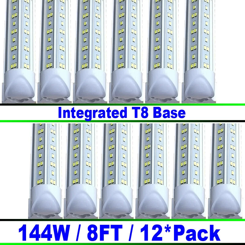 FAST DELIVERY - Ship from New Jersey or Los Angeles Warehouse via FedEx , 3-7 Days Delivered Your Door . SCIENTIFIC DESIGN - 8Ft LED Shop Lights Fixture is Made of 6500K Cold White SMD2835 LED Chip ,Plastic Clear Cover , Aluminum Bracket Housing ,and AC85-277V Constant Current Driver . It can work in -68F to 120F Temperature Conditions EASY INSTALLATION - The Integrated Tube Fixture Can be Install on Wall or Ceiling ,Easily Replace Traditional Fluorescent Tube Bulb . Plug and Play , Free Accessories (Power Cords, Connector , Extension Cords , Clip and Screw ) Come with Tube Lights Together WIDE APPLICATION - Linkable 8Ft Bulbs Widely Used in Garage Ceiling , Barbershop , Schools, Hospitals Basement , Factory Warehouses , Supermarkets Cooler Door , Offices, Shops,Hotels, etc 8Ft Linkable Led Shop Light Fixture, T8 Integrated Led Tube Light Bulbs 12Pack FAST DELIVERY - Ship from New Jersey or Los Angeles Warehouse via FedEx , 3-7 Days Delivered Your Door . SCIENTIFIC DESIGN - 8Ft LED Shop Lights Fixture is Made of 6500K Cold White SMD2835 LED Chip ,Plastic Clear Cover , Aluminum Bracket Housing ,and AC85-277V Constant Current Driver . It can work in -68F to 120F Temperature Conditions EASY INSTALLATION - The Integrated Tube Fixture Can be Install on Wall or Ceiling ,Easily Replace Traditional Fluorescent Tube Bulb . Plug and Play , Free Accessories (Power Cords, Connector , Extension Cords , Clip and Screw ) Come with Tube Lights Together WIDE APPLICATION - Linkable 8Ft Bulbs Widely Used in Garage Ceiling , Barbershop , Schools, Hospitals Basement , Factory Warehouses , Supermarkets Cooler Door , Offices, Shops,Hotels, etc