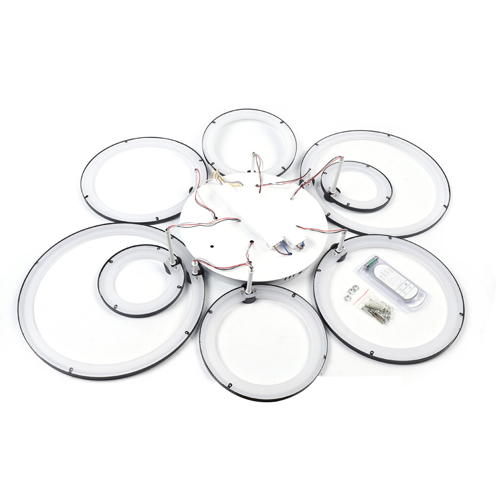 8-Head Indoor Modern LED Ceiling Light Pendant Lamp Living Room Dimmable Fixture 8 Heads Chandelier 3Color Light Change LED Ceiling Light Fixture Acrylic Tips: All the lights are connected, do not modify the line when you install it. Specification: Material: Iron base and Acrylic lampshade Power: 60w,100w, 150w Pattern: 8 Heads Voltage: AC 110v, 50Hz Body Color: black Light Source: 2835 LED SMD Light mode: stepless dimming Light color: White light, Warm light, Neutral light Average service life: 30000(h) Remote Controller: 2x AAA Batteries (not included) Suitable area: about 25~30㎡ 8Heads Size: 8 Heads Size: 110*90*25cm Package Included 1 * Ceiling Light 1 * Remote Controller 2 * AAA Batteries All Accessories for Assembly Description The body of the ceiling lamp is creatively designed with four composed circulars with fine workmanship, bringing more brilliance to your life and highlighting your taste. This ceiling la mp is infinitely dimmable with three adjustable colors including white light, warm light, and neutral light, you can adjust it according to your own needs. This ceiling lamp is perfect for living rooms, balconies, bars, cafes, clothing stores, aisles, etc. It is suitable for an area of about 86.11ft²-161.46ft². Key Features Creative Design: The body of the ceiling lamp is creatively designed with four composed circulars with fine workmanship, bringing more brilliance to your life and highlighting your taste. High Durability: The lampshade of the ceiling lamp is made of acryli c that has good transparency, chemical stability, and weather resistance, so it is more durable and can be used for a long time. Remote Control : This ceiling light is equipped with remote control. So you can easily control the light while lying in bed and don't need to get up and press the switch. Good Light Transmission: This ceiling lamp made of acrylic has good light transmission, which can create a brighter and warm atmosphere for you. Stepless Dimming: This ceiling la mp is infinitely dimmable with three adjustable colors including white light, warm light, and neutral light, you can adjust it according to your own needs. Energy Efficient: This ceiling lamp adopts the LED light source, which is highly efficient, energy-saving, and has a long service life. Easy Installation: All the four light heads are connected, you do not need to modify the line when you install it, saving your time and energy. Guaranteed After-Sales Service: We aim to provide quality products and services, if you have any problems, please feel free to contact us. We will reply and solve the problem for you as soon as possible. Details Acrylic Lampshade: The lampshade of the ceiling lamp is made of acrylic that has good transparency, so it has better light transmission, which can create a brighter and warm atmosphere for you. Reinforced Base: The base of the ceiling lamp is made of reinforced iron, making it more stable. Application This ceiling lamp is perfect for living rooms, balconies, bars, cafes, clothing stores, aisles, etc. It is suitable for an area of about 25~30㎡ Notes 1. All the four light heads are connected, do not modify the line when you install it. 2. The remote control needs to be used in the code, press and hold the vertical line above until the light flashes, that is, the code is successful, and you can remotely control it. 3.Please allow the slight color difference caused by the shooting light and 1-3cm error due to manual measurement, and make sure you do not mind before ordering. Payment Delivery details Terms of sales About us Contact us Payment We accept ebay payment 。 Fees such as import duties, taxes are not included in the item price or shipping costs. These charges are the buyer's responsibility. Delivery details Shipping: 2-9 working days to: USA Terms of sales We maintain high standards of excellence and strive for hundred percent customer satisfaction. Feedback is very important to us. We hope that you contact us immediately before you give neutral or negative feedback, so that we can address your concerns. It is impossible to address issues if we do not know about them! About us Your satis faction is our ultimate goal. We work hard to earn your trust and future business. Our certified technicians have tested each item before shipping. The unit comes with 1 year limited warranty on all manufacturing defects. a) If you receive a defective item, you may return it or ask for a discount. Please contact us within 14 days after you receive the package. b) What you returned must be intact and in its original packaging as re? u. Customer is responsible for shipping costs of the returned item. c) We will cover the cost of shipping back t with the shipping rate indicated in the registration page. We will send you a new unit or refund the full payment you paid. Thank you. Contact us Business Hour Business Hour: Monday To Friday: 8:30 AM to 5:00 PM (Beijing China time) Due to time zones, our reply to your questions may not be immediately. But within above working time, we will reply your email within 24 hours. If it's non-workdays, please kindly be patient and wait till Monday. Please contact us with ebay message. Please feel free to contact us if you have any questions. Monday To Friday: 8:30 AM to 5:00 PM (Beijing China time) Due to time zones, our reply to your questions may not be immediately. But within above working time, we will reply your email within 24 hours. If it's non-workdays, please kindly be patient and wait till Monday. Please contact us with ebay message. Please feel free to contact us if you have any questions. Country/Region of Manufacture Unknown Highlights Compact Design,Unique Appearance,high reliability Number of Settings 1 Control Style Remote Light Color Multicolor Power Source Wall Plug-In MPN Does Not Apply Light Source 2835 LED SMD Department Adults Lumens N/A Sensor Type Light Voltage AC 110v, 50hz/60hz Amperage N/A Style Modern LED String/Strip Type N/A Features Dimmable,