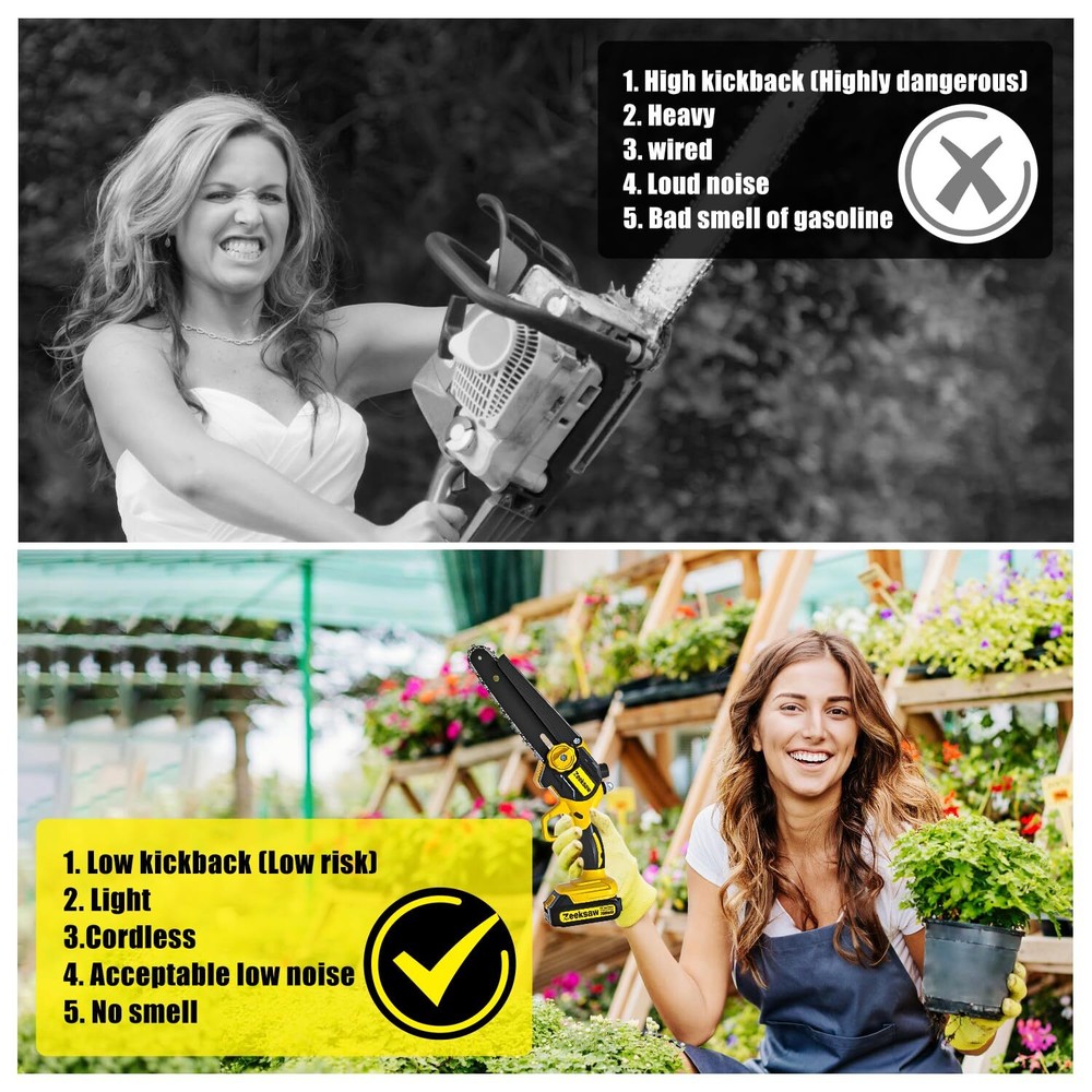 Mini Chain saw Cordless 8 inch Auto Oiler, Automatic Chain Tension, 21V MAX* Rechargeable Cordless Chainsaw with 2x2.0Ah Battery and Charger, Mini Chainsaw 8 inch Cordless Hand-Held Electric Chain Saw Brand Zeeksaw Power Source Battery Powered Horsepower 900 Watts Item Weight 2.8 Pounds Product Dimensions 15"L x 7"W x 5"H Chain Length 8 Inches Chain Speed 25.6ft/s Manufacturer Zeeksaw โ ใSelf Oiler System - 2024 ๐๐๐๐๐๐๐ใ Are you fed up with oiling the chain of your small hand chainsaw with the * extra * oil can? Our mini electric chainsaw has added a chain lubrication system to oiler the chain quickly and easily, so you don't need to carry extra oil pots, Simply pour oil into the tank and the chain will be lubricated freely for less wear and smoother cutting โ ใ TOOL-FREE CHAIN TENSIONING - 2024 ๐๐๐๐๐๐๐ใDon't need any fancy tools or expertise to replace the chain, the unique design made it easy and convenient. No tools are needed to adjust chain tension, very user-friendly and woman-friendly design. Even women and elderly people can easily control and use it and hold it for long periods of time without tiring their hands. โ SuperStar Garden Machine - The 25 ft/s super high chain speed can cut through a 6" thick branch in only 5 seconds. Support all your cutting needs. Even the tiniest girl can hold it in one hand to take a tree down like butter! โ Versatile Tool - Zeeksaw Mini portable chainsaw is perfect for deforestation, pruning, gardening, carpentry DIY, and more. It's a must-have for farm, garden, and home use. Hand Saw for Tree Cutting โ The Perfect Gift - Zeeksaw Woodwise Mini Chainsaw Cordless is the perfect Christmas gift for Father, Mother, Wife, Husband, Friends, Gardeners, DIY Lovers, and Woodworkers. Cool Dad Gifts, Fathers Day Gifts ๐ with 100% Satisfaction Guarantee - you can buy with confidence knowing that if you don't love it, we'll buy it back from you, no questions asked! This is our new upgraded 2024 version mini chainsaw, which is more powerful than the old one. It is a new type of portable electric chainsaw, which is light and easy to use. It is powered by a high-speed motor, and the chain speed is up to 5m/s, making it easy to cut wood, bamboo, tree branches, etc. This mini chainsaw is very suitable for cutting wood, tree branches, and other materials in the garden, farm, and daily life. It is also a good tool for outdoor camping, hiking, and barbecue. It is a necessary tool for home travel. Shipping We offer FREE shipping on all orders! We ship within Three business days of payment, usually sooner. We use a selection of shipping services such as UPS, FedEx, USPS etc. We only ship to the lower 48 states, no APO/FPO addresses or PO Boxes allowed. Local pickups and combined shipping options are not provided at this time. Return You can return a product for up to 30 days from the date you purchased it. Any product you return must be in the same condition you received it and in the original packaging. Please keep the receipt. Payment We accept payment by any of the following methods: PayPal Please pay as soon as possible after winning an auction, as that will allow us to post your item to you sooner! Feedback Customer satisfaction is very important to us. If you have any problem with your order, please contact us and we will do our best to make you satisfied. Contact Us If you have any queries, please contact us via ebay. We usually respond within 24 hours on weekdays. Please visit our eBay store to check out other items for sale! Thank you for shopping at our store.