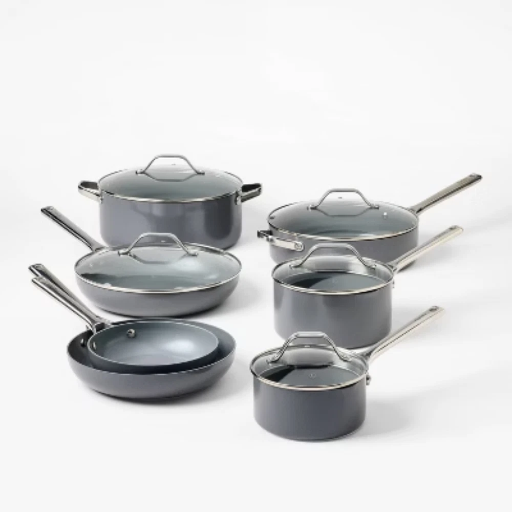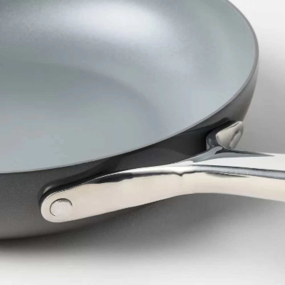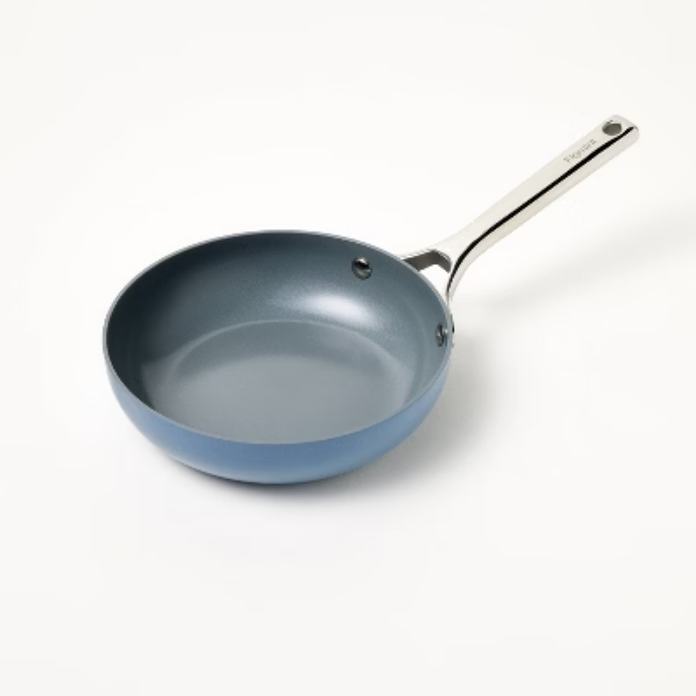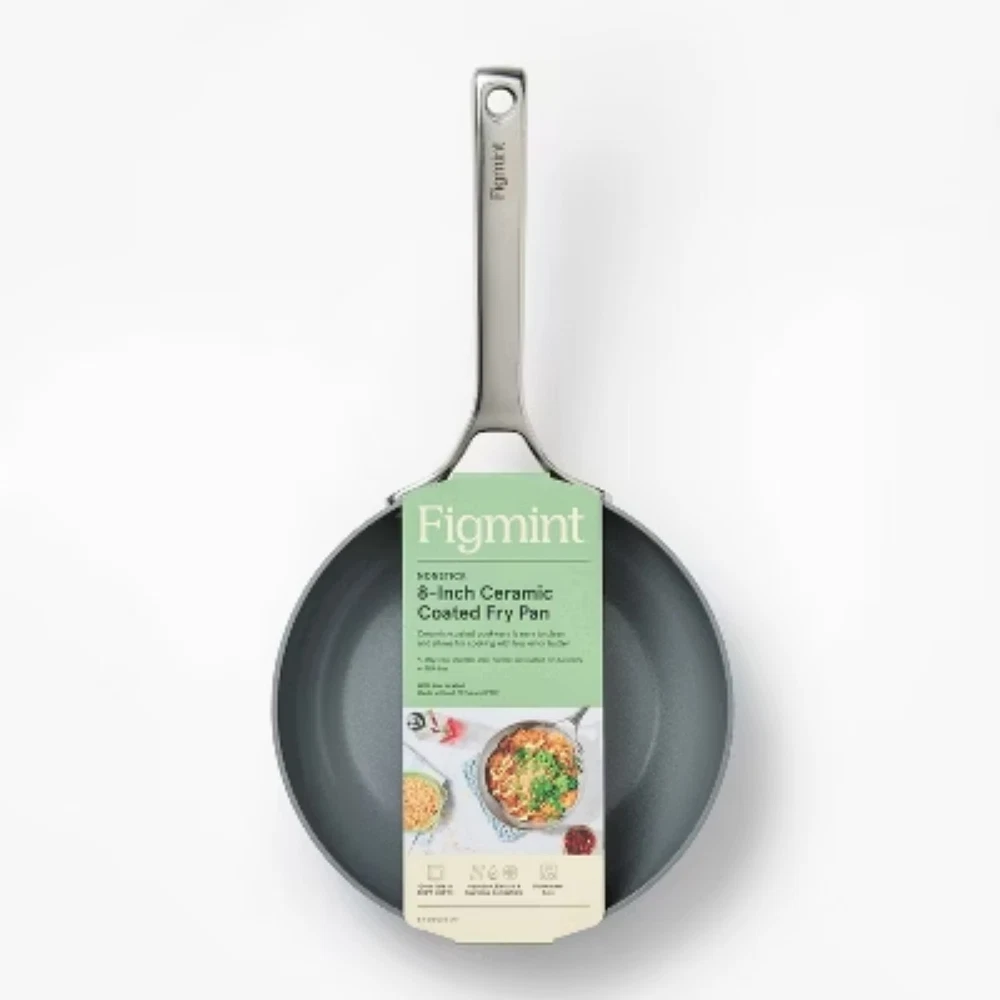 Description Add a versatile pan to your cookware collection with this 8-Inch Ceramic Frypan from Figmint™. This frypan's aluminum construction is ideal for even heat distribution, and the smooth, nonstick surface is convenient, easy to clean and helps you cook with minimal butter or oil (to protect the nonstick surface, use only with silicone, nylon or wood cooking utensils). The pan is compatible with induction, gas and electric stoves and is oven safe up to 450 degrees Fahrenheit, allowing you to tackle a variety of recipes regardless of your kitchen setup. Figmint™: Mixing up a taste of adventure everyday. highlights 8in ceramic frypan in solid hue Smooth, nonstick surface Aluminum construction is ideal for even heat distribution To protect nonstick cooking surface, use only with silicone, nylon or wood cooking utensils Induction, gas and electric stove compatible Dishwasher safe Oven safe up to 450 degrees F Made with no PFOA or PTFE