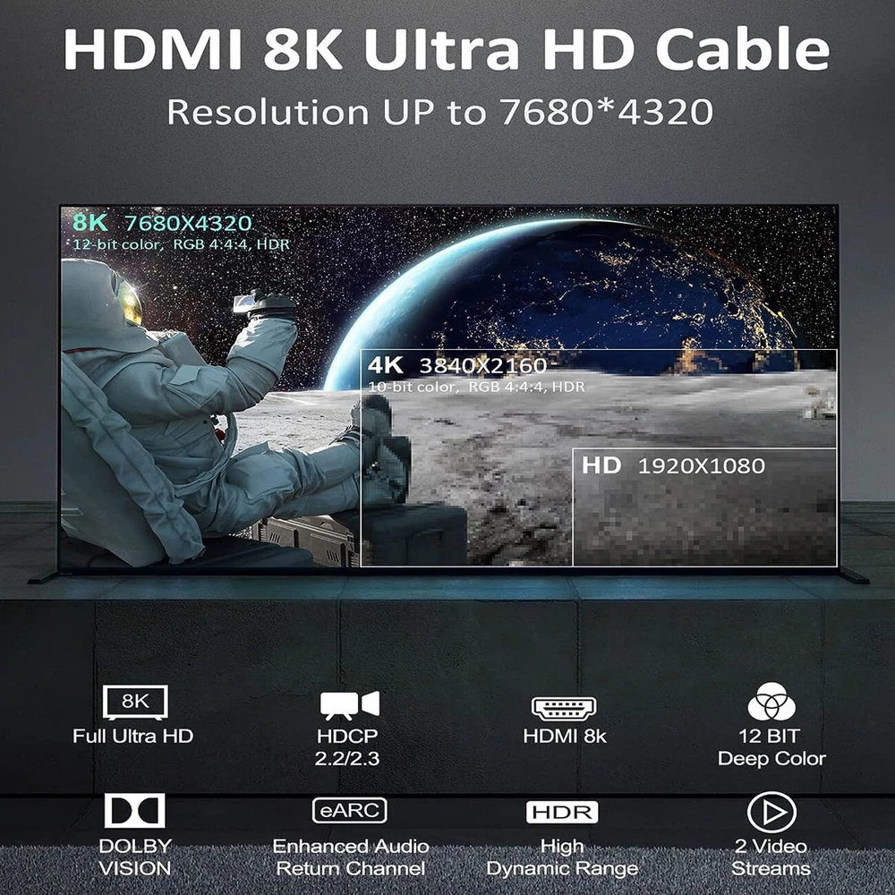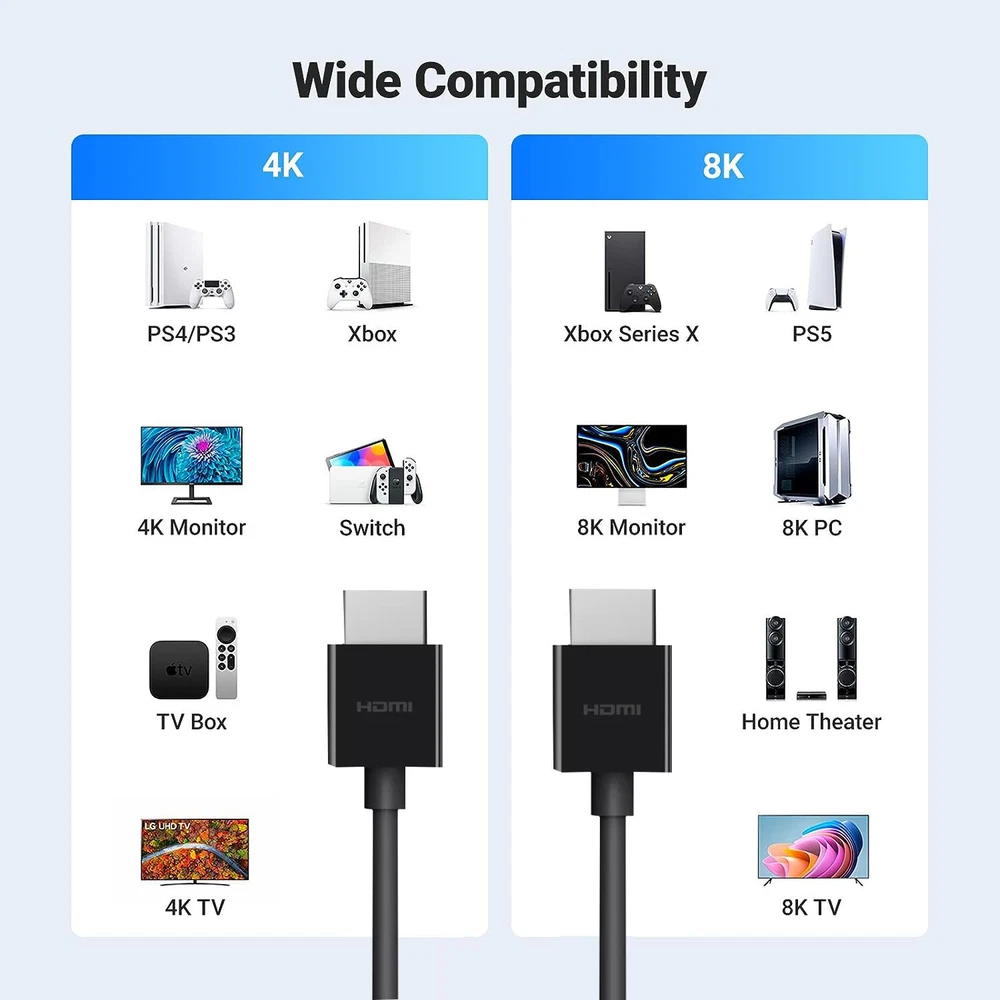 8K HDMI 2.1 Cable 6.6ft 48Gbps 4K 120Hz eARC for Switch TV Laptop