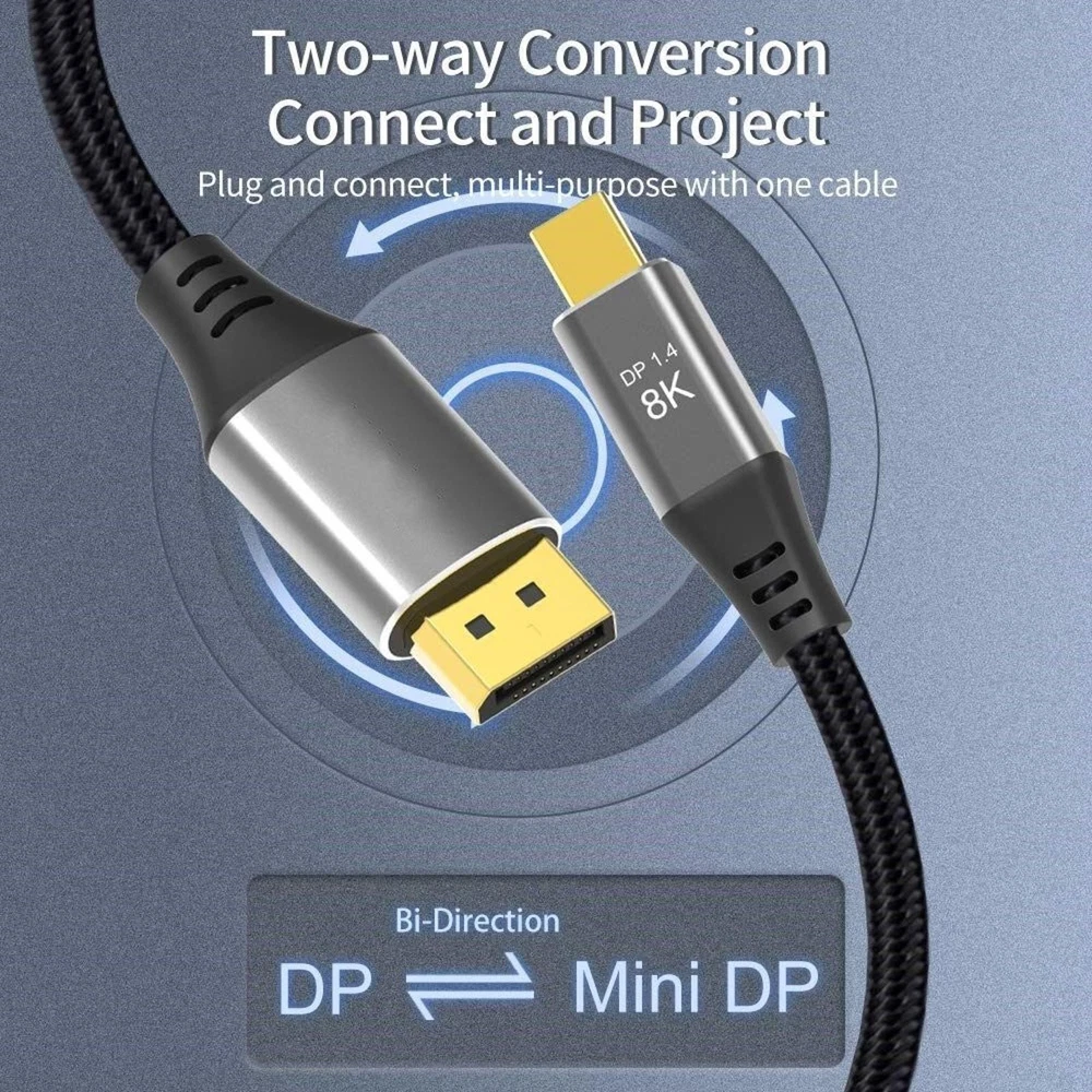 8K Mini DP to DP Cable Bi-Directional Transmission Converter DisplayPort 1.4