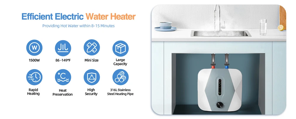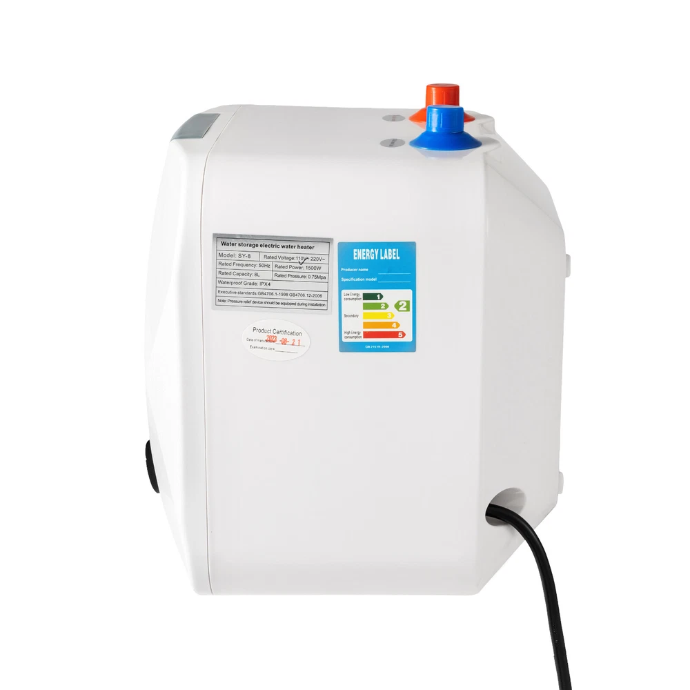 Water Temperature Range: 86-149 ° F UPC: Does not apply ISBN: Does not apply Type: Storage Tank Water Heater Tank Capacity: 2.11 gal Brand: Unbranded Voltage: 110 V EAN: Does not apply Water Connection Location: Top Power Source: Corded Electric Color: White Water Heater Profile: Compact gtin13: Does not apply Power: 1500 W Heating System: Storage Tank Mounting Location: Under Sink Features: Compact, Digital Display, Mini, Waterproof