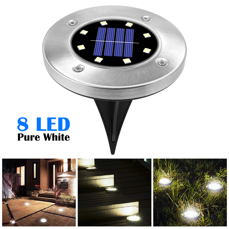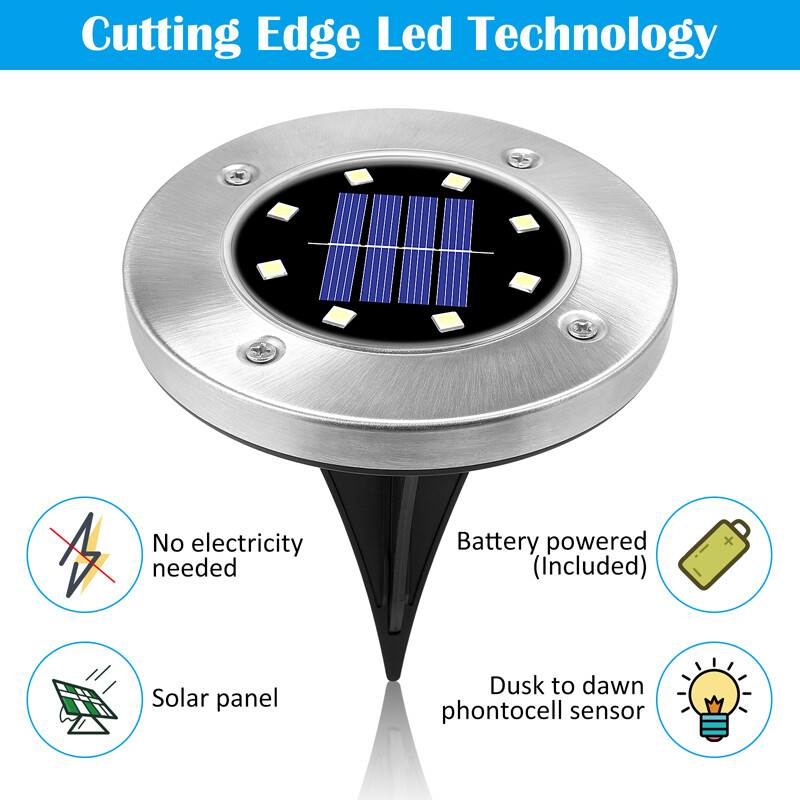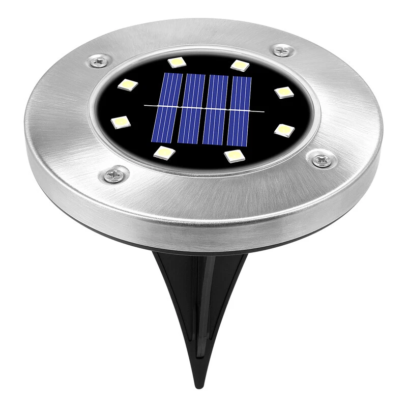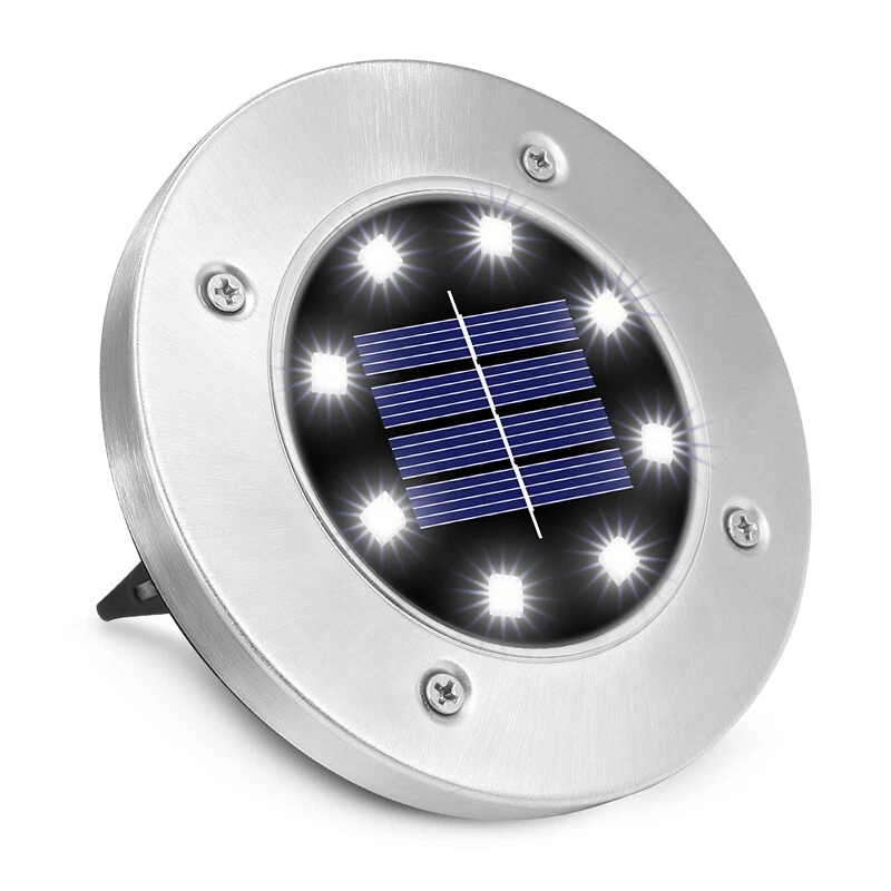 8-LED Solar Garden In-Ground Disc Light for Outdoor Illumination and Landscape Marking