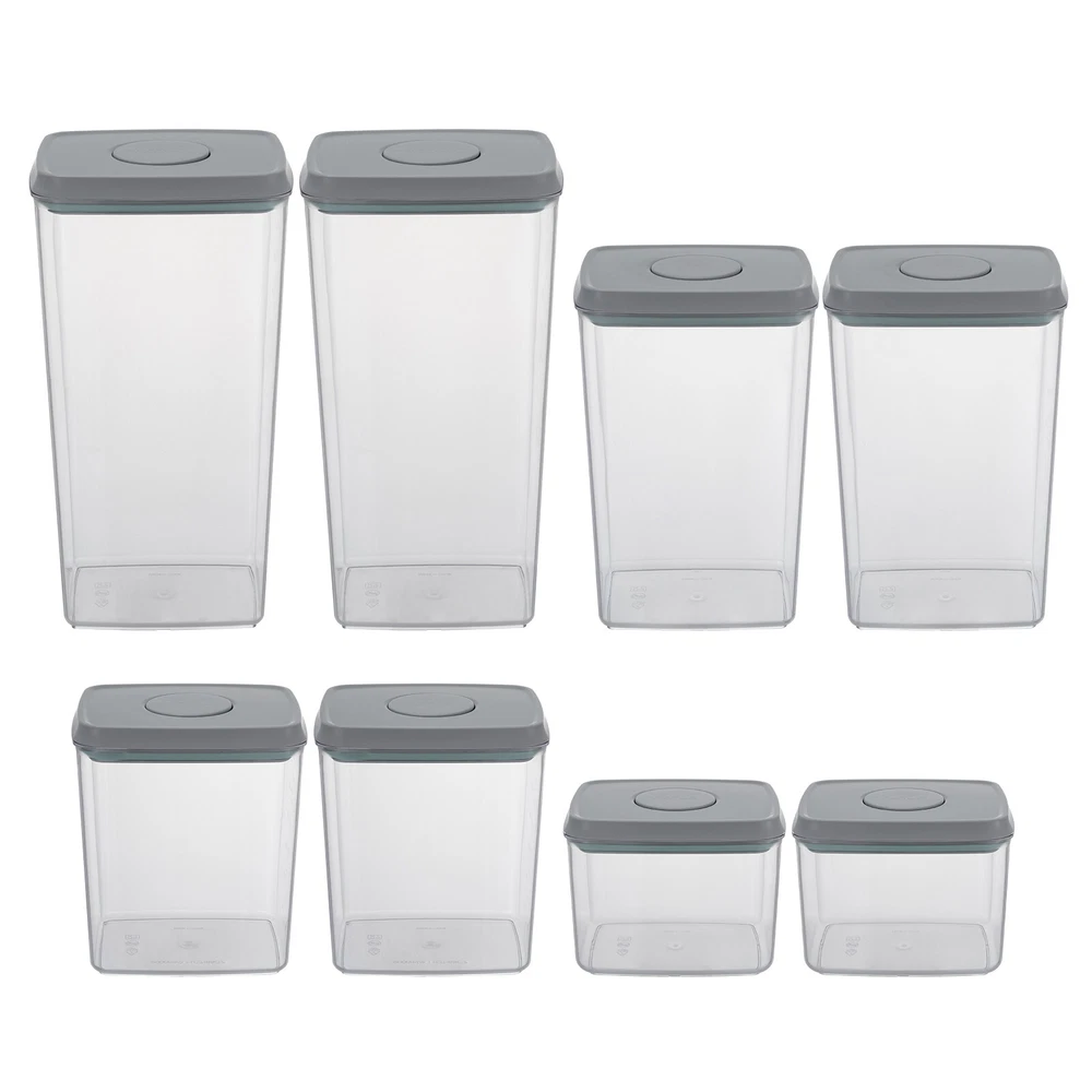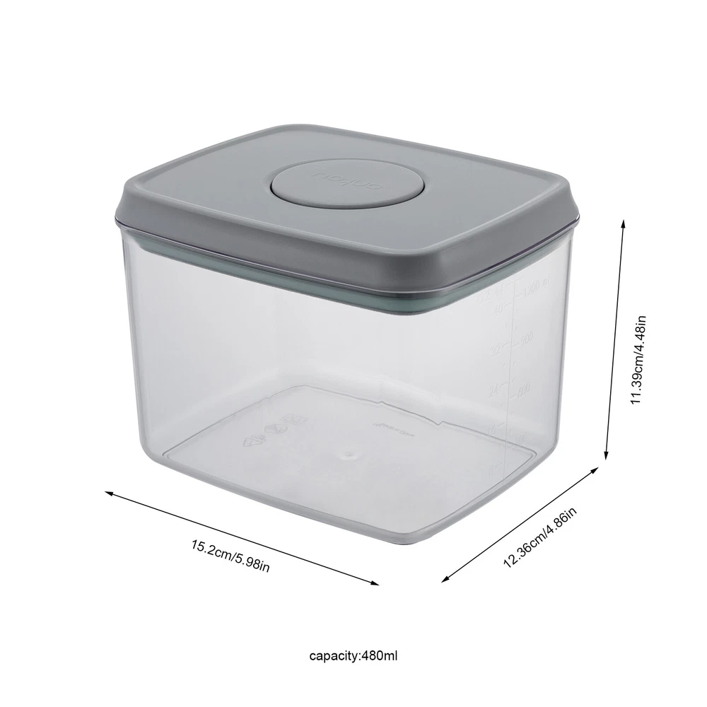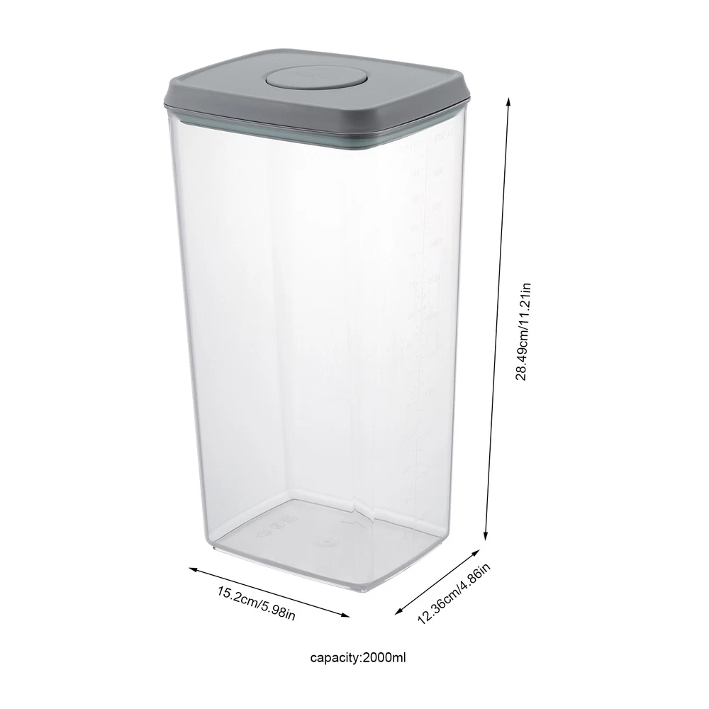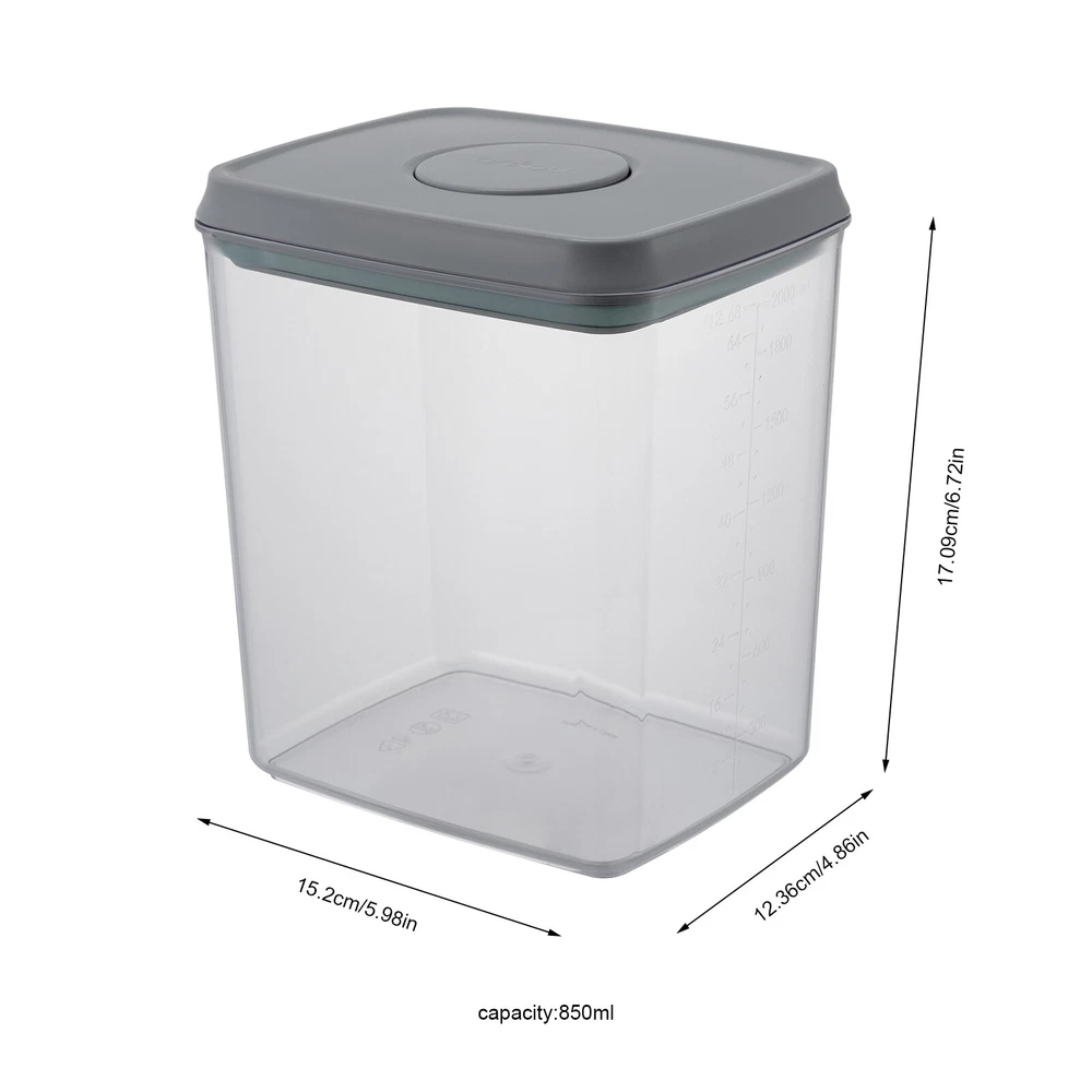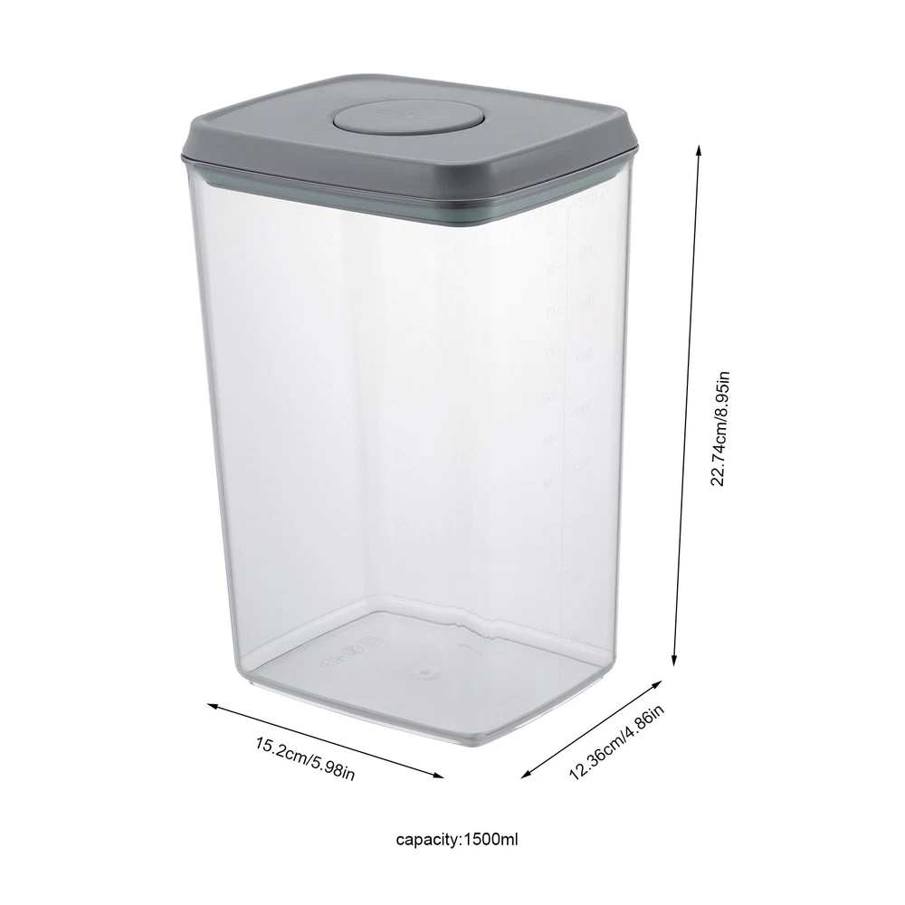Capacity: 480ml/850ml/1500ml/2000ml Shape: Square Material: AS & ABS Demensions of 1500ml Containes: 15.2*12.36*22.74cm/5.98*4.86*8.95inch Type: Storage Container Set gtin13: Does not apply Item Height: As pictures Demensions of 480ml Containes: 15.2*12.36*11.39cm/5.98*4.86*4.48inch Demensions of 850ml Containes: 15.2*12.36*17.09cm/5.98*4.86*6.72inch UPC: Does not apply Demensions of 2000ml Containes: 15.2*12.36*28.49cm/5.98*4.86*11.21inch Color: Transparent & Grey Item Length: As pictures Number of Items: 8 Brand: Unbranded Item Width: As pictures