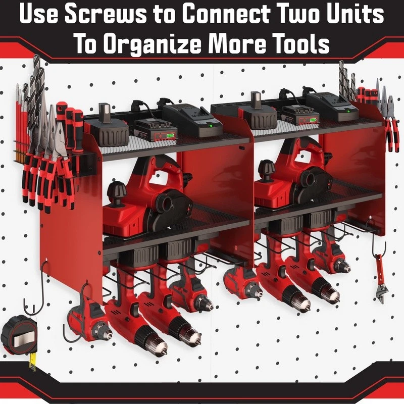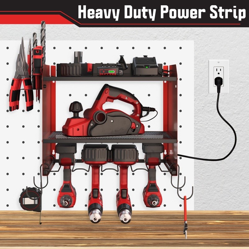 You may also like Durable Stainless Steel Tool Box W/ Removable Tray Organizing Compartment New 44.1 USD 46.42 USD Free shipping 5% off 3 in 1 Steel Rolling Tool Chest 6 Drawer 2 Cabinet Garage Organizer Heavy-Duty 210.25 USD 221.32 USD Free shipping 5% off Portable Tough Small Plastic Tool Box 13in Hardware Storage Equipment Workshop 10.16 USD 10.7 USD Free shipping 5% off TBTRAY1 Tool Box Tray Tool Box Service Part Sliding Plastic Tray Easy Access 36.14 USD 38.04 USD Free shipping 5% off Wall Mount Small Parts Organizer 8 Compartment Quick Release Heavy Duty Storage 42.27 USD 44.5 USD Free shipping 5% off 6 Drawer Rolling Storage Cart Wood Mobile Organizer Craft Office Supplies New 90.81 USD 95.59 USD Free shipping 5% off Professional Tool Box Liner Non Slip Mat Durable Drawer Shelf Liner Foam Sheet 58.88 USD 61.98 USD Free shipping 5% off Small Portable Tough Plastic Tool Box 13in Storage Hardware Workshop Equipment 10.16 USD 10.7 USD Free shipping 5% off Optimize your workshop or garage space with the Cordless Tool Organizer with Power Strip by . This wall mounted tool rack features a built-in 8 outlet charging station, 4 slots for hanging rechargeable tools, 2 shelves, 4 hanging hooks, and a drill bit rack. If that’s not enough space for your garage storage needs, you can connect a pair of these tool organizers to double your tool storage capacity. , for tool organization gifts for men that are SMART, STRONG, and SECURE. GARAGE TOOL ORGANIZER WALL MOUNT - Easily store and charge cordless drills and other power tools while keeping hand tools and accessories neatly organized with this 2-tiered power tool shelf. BUILT IN BATTERY CHARGING RACK - Power up your rechargeable tools right on this garage wall organizer, which features an 8 outlet power strip that delivers a 15-amp, 125VAC, 1875W/60Hz max load. VERSATILE TOOL HOLDER - This garage organizer wall mount has 4 power tool organizer slots for hanging rechargeable tools, 2 shelves, a side drill bit rack, and 4 hanging hooks. DURABLE CONSTRUCTION - The garage storage rack is made from heavy gauge steel with a 50lb capacity per shelf and a total capacity of 150lbs, and it comes with mounting screws and wall anchors for hanging. MATERIALS - Iron with Plastic Coating and ABS. DIMENSIONS - (L) 16. 5” x (W) 9. 1” x (H) 11. 8”; 8 Outlet Power Strip: (L) 14. 75” x (W) 1. 75” x (H) 0. 75”; Cord: 6’8”; Weight: 9. 48lbs; Power Tool Holder with UL 3 Prong Plug. COLOR - Red and Black. You may also like Bohemian Botanical Area Rug Soft Polyester Floral Indoor Carpet Low Pile Vintage 44.8 USD 47.16 USD Free shipping 5% off Medium Dog Deshedding Tool Non-Slip Handle Undercoat Grooming Brush Shedding Fur 17.32 USD 18.23 USD Free shipping 5% off Folding Bookcase 3 Shelf Wood Office Storage Furniture Durable Easy Transport US 70.38 USD 74.08 USD Free shipping 5% off Outdoor Bike Storage Shed Tent Waterproof Portable Cover 4 Double Door Gray New 100.11 USD 105.38 USD Free shipping 5% off Touchless Sensor Trash Can W/ Odor Filter Kitchen Office Hands-Free Use 76.5 USD 80.53 USD Free shipping 5% off Adjustable Manual Clay Pigeon Thrower Foot Operated Steel Portable Target 8223A 84.32 USD Free shipping Portable Calming Pheromone Diffuser Dogs Reduces Stress Behavior 30 Days New 29.22 USD 30.76 USD Free shipping 5% off Automotive Jump Starter W/ Air Compressor LED Worklight 260 PSI Emergency Tool 106.0 USD 111.58 USD Free shipping 5% off Meal Prep Glass Storage Container 4Cup Two Compartments BPA Free Microwave Safe 15.75 USD 16.58 USD Free shipping 5% off LED Makeup Mirror Freestanding 16 Dimmable Lights 180 Rotation Touch Control New 29.21 USD 30.75 USD Free shipping 5% off Chocolate Peanut Butter Meal Bar 5 Count High Protein Low Sugar Snack Fiber Rich 10.19 USD 10.73 USD Free shipping 5% off Armless Upholstered Accent Chair W/ Kidney Pillow Modern Graffiti Design New 96.59 USD 101.67 USD Free shipping 5% off