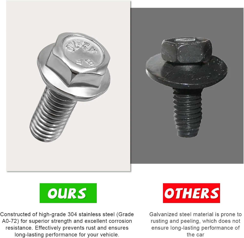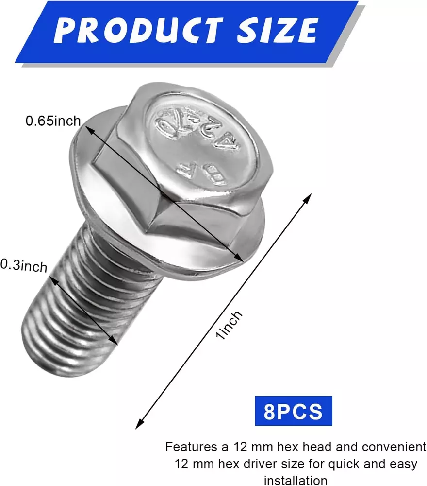 Menu Other Items Feedbacks About Us Contact Us Add To Favorites 8PCS Car Top Front Skid Plate Bolts, 304 Stainless Steel 12Mm Hex Head Auto Skid Plate Bolts, Compatible with 4Runner FJ Cruiser Land Cruiser Sequoia Tacoma, Car Accessories 【Size & Packaging】: This bolt measures 1.03×0.65 inches and has a thread diameter of 8 mm. With a 12mm hex head and convenient 12mm hex screwdriver size, it is accurately dimensioned and well made. You can choose between a four-piece pack and an eight-piece pack. 【Practical Accessory】: This product is a fastening bolt fitting for the front skid plate, hood, splash guard or bottom cover on the top of the vehicle. It provides a solid connection to prevent vehicle parts from falling off and falling apart. 【Excellent Material】: It is made of high quality 304 stainless steel, therefore, it has excellent corrosion and rust resistance that can be used for a long time without losing its functionality. It is also very tough, which is not easy to break and is tight after installation. 【Easy to Use】: The installation is easy, as you just need to remove the old or damaged bolts and screw in the new ones with the help of a screwdriver. You can keep them in your toolbox for emergencies, and you can save on repair costs by doing the yourself. 【Compatible Range】: It is compatible with bolt replacements for 4Runner, FJ Cruiser, Land Cruiser, Sequoia, Tacoma, etc. And it's number is 90080-11373. To make sure the fitment is right, please check the bolt size, part number, vehicle model and year. Specification: Material: Stainless Steel Quantity: 4/ 8 PCS Color: Silver Weight: 0.12 lb Size: 1.03×0.65 inches Thread Diameter: 8 mm Feature: Practical, Durable, Rustproof Replace Number: 90080-11373 Fitment: -4Runner 1996-2023 -FJ Cruiser 2007-2014 -Land Cruiser 2008-2010 -Sequoia 2001-2007 -Tacoma 1995-2023 Item Specification Item model number Car Top Front Skid Plate Bolts Thread Style Right Hand Thread Size 8 mm Set Screw Thread Type Metric Number of Pieces 8 Material Stainless Steel Manufacturer Part Number -1762CT Thread Type Unc Metal Type Stainless Steel Item Weight 3.84 ounces Head Style Hex Head Type Hex Model Car Top Front Skid Plate Bolts Exterior Finish Stainless Steel Fastener Type Hexagon Bolt Color 8 PCS Item Diameter 1.03 Inches Size 1.03×0.65 inches Dimensions Shipping Returns Additional Info Product Dimensions: . Weight: 3.84 oz Fast shipping is very important for us. Our standard shipping service is FREE. Your order will be shipped within 1-3 business days upon full payment received. Most items are delivered within 3-5 business days, however, please allow 3-10 business days. We are shipping only to USA. We only ship to the confirmed Paypal address. We reserve the right to cancel any order for any reason at any time. We are not responsible for undeliverable addresses. We offer a 30 day return policy from checkout winning date. Your satisfaction is guaranteed! If for any reason you are unhappy with your item, just return it within 30 days for a full refund, minus shipping cost. Please contact us prior to initiating a return so that we can issue you a refund authorization. Items defective upon receipt must be packaged in their retail packaging as if new and returned with a detailed description of the problem. Return shipping fees are not refundable. We reserve the right to decline any returns if the above guidelines are not followed. All of our items, unless otherwise stated, will only run on 120 volts. Please check to make sure your country complies with these specifications. If you have a problem or question regarding your transaction please contact us before leaving any type of feedback. We will work with you to resolve any problem you may have.