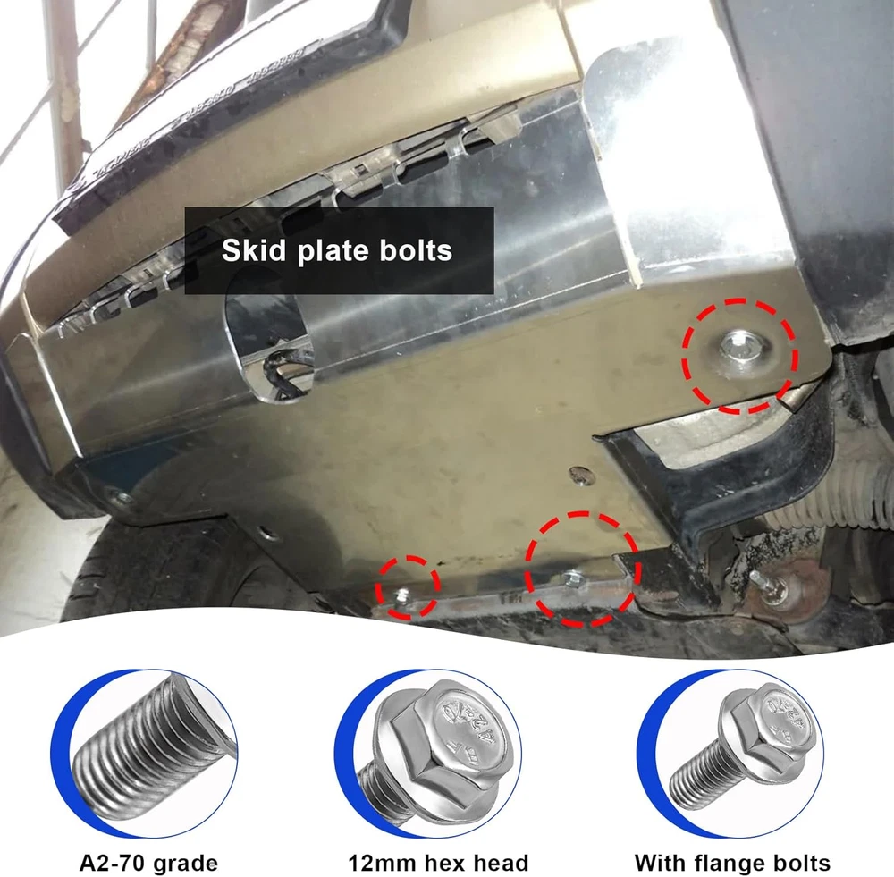 8PCS Car Top Front Skid Plate Bolts, 304 Stainless Steel 12Mm Hex Head Auto Skid