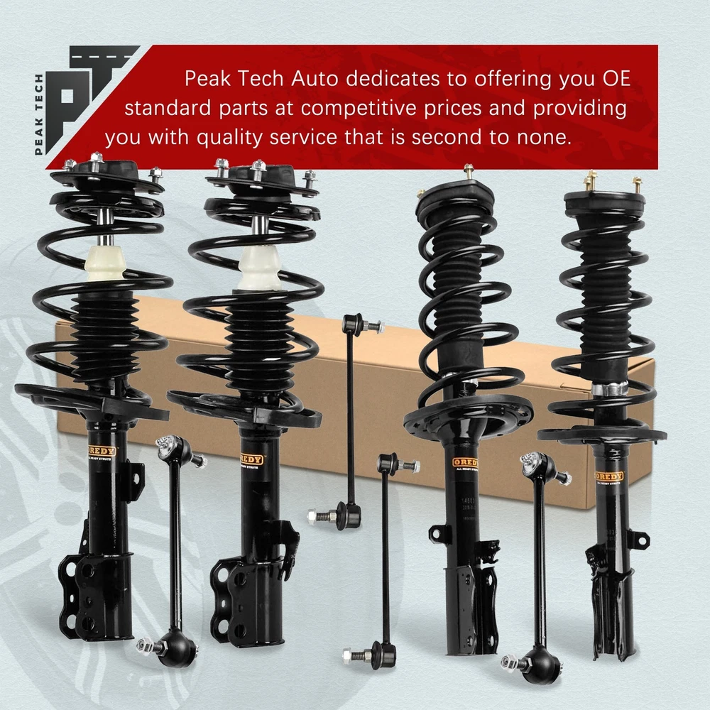 Store Home New Arrival View Feedback Contact us Add to Favourites 8PCS Front & Rear with Struts Sway Bars for Toyota Camry 2004 - 2006 Lexus ES330 Items Description Package Includes: 1x Front Driver Side Complete Strut + 1x Front Passenger Side Complete Strut 1x Front Driver Side Complete Sway Bar + 1x Front Passenger Side Complete Sway Bar 1x Rear Driver Side Complete Strut + 1x Rear Passenger Side Complete Strut 1x Rear Driver Side Complete Sway Bar + 1x Rear Passenger Side Complete Sway Bar Compatibility: For 2004 - 2006 Lexus ES330 (Without Adaptive Variable Suspension) For 2004 - 2006 Toyota Camry Shipping Payment Return Warranty About us Shipping All orders in the continental 48 States will be shipped free of charge. Orders placed before 12pm (Eastern Standard) will be shipped the same business day of purchase. We only ship to the address provided to us at the time of checkout. Please verify the shipping address before making any payment. We do not ship to Hawaii, Alaska, Puerto Rico, APO/FPO/PO Boxes. Payment Paypal, Visa, and MasterCard are accepted forms of payment. Please use eBay checkout system when place your order. Immediate payment is required for all orders. Return Buyer has 30 days to contact us and 10 days to return it from the date buyer's return request was received. Please note we only accept return for brand new products. When the return mistake is made on seller, we will provide a free return. Or, customer will be charged for return shipping fee. We will issue a refund to buyer after receiving and checking return packages. Warranty Peak Tech provides a Lifetime Warranty for original purchasers. If an auto part is defective, Peak Tech will provide ONE-Time replacement. Buyer needs to pay for the shipping cost of replacements occurred in warranty process. Buyer needs to provide Pictures or Video of damaged goods. About us Peak Tech focuses on auto parts and provides struts and shock absorbers suitable for a wide range of applications. Peak Tech products deliver the look, feel, fit and performance of OE. We provide buyers with professional customer service, and hope to offer buyers a better shopping experience. You May Also Like for Honda Accord 2008 - 2012 2.4L 2x Struts + 2x Sway Bars Front Right Left Side for Honda CR-V 2002 2003 2004 2005 2006 2PCs Struts Coil Spring Front Right Left for Honda CR-V CRV 2007 2008 2009- 2014 2PCs Struts Coil Spring Front Right Left for Honda Accord 2008 - 2012 2.4L 2PCs Struts Coil Spring Front Right Left Side for 2006 - 2011 Honda Civic 1.8L Sedan & Acura CSX 2PCs Struts Front Right Left Copyright © 2024, peak-tech-autoparts All Rights Reserved