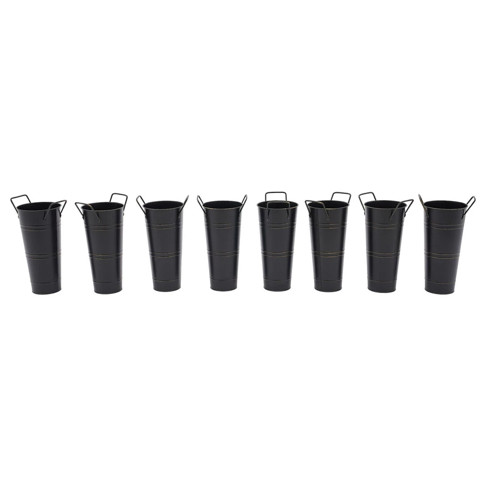 8PCS Galvanized Metal Vases Flower Bucket Vases, Black Flower Vases for Bouquet Description Our metal bucket vase, with its simple cylindrical shape, can harmoniously match various flowers, from fresh wildflowers to noble and elegant roses to display different decorative styles; It can also create a picturesque scene even without flowers, showcasing a unique attitude towards life. Whether as the finishing touch of home decoration or as a gift for family and friends, it is an ideal choice, making every aspect of life full of harmonious coexistence between art and nature. Key Features Strong and Durable : The product is made of thickened iron(0.23mm) with a galvanized finish to prevent rust, deform, and break, together with the waterproof coated interior, providing excellent durability and long service life. Practical Function : The 9.06-inch depth and 4.33-inch opening diameter are not picky about the flower material, whether it is a single large branch bouquet or a complex combination of small flowers, this vase can show their beauty and flexibility to adapt to a variety of decorative needs. Elegant Decoration : The classic retro appearance of the galvanized flower vase can match any home decoration and add an elegantly pristine ambiance to your home. Paired with real, artificial flowers, or plants, it greatly elevates the look of your living space. A pack of 8 : 8 vases can meet your different space placement needs, thus making the whole space layout more reasonable. DIY Fun : With these vases, you can invite your friends and family to join the DIY project and exercise your hand ability, stimulate your imagination and creativity, and have fun in it. Installation-Free : You can use this product directly after receiving it without additional installation, which saves you time and energy. Effortless Clean : A simple structure and smooth surface make this product easy to clean. You only have to wipe it with a damp cloth. Excellent Gift : You can give this practical product to your family, friends, and flower and plant lovers on various occasions such as anniversaries, holidays, Christmas, Thanksgiving, New Year's, and weddings, and share the beauty of nature with your loved ones. Good Customer Service : We stand behind all our guests and look forward to assisting you with your purchase. It is our pleasure to answer your confusion and questions. The end of the story between us is not "we sell and you buy". Details Practical Handles : The ergonomic handles are designed to make it convenient for you to move the product. Smooth Edges : They not only enhance the aesthetics and textures of the product but also improve safety during cleaning and use. Application These vases are ideal for flower arrangements, fresh/dried flowers, or plants. They are suitable for the bedroom, dining table, living room, kitchen, balcony, garden, party, ceremony, wedding, anniversary, hotel, flower shop, and other spaces. Specifications Color: Black Style: Modern Shape: Cylindrical Material: Iron Surface Treatment: Galvanized Assembly Required: No Mount Type: Floor Standing Number of Items: 8 Thickness: 0.23mm/0.009in Top Width(Handle Included): About 15cm/5.9in Top Opening Diameter: About 11cm/4.33in Product Overall Height: About 25.5cm/10.04in Vase Height(Handle Excluded): About 23cm/9.06in Bottom Diameter: About 7.5cm/2.95in Gross Weight: 1.63kg/3.59lbs Net Weight: 1.55kg/3.42lbs Package Size: 43.5*14*11.5cm/17.13*5.51*4.53in Package Included 8*Flower Bucket Vases Notes Please note that flowers are not included in this product. Due to manual aging surface treatment, there may be slight differences in color depth, which is a normal phenomenon. Rust spots are also specially designed. Please make sure you can accept this aging style before purchasing! Iron products may sometimes show signs of collision, paint peeling, etc. during transportation, but it does not affect the overall appearance. The iron sheet series flower vases cannot guarantee absolute waterproofing, and soaking in water for a long time will gradually rust. If you need hydroponic plants, you can put them in your own plastic bag or add a plastic inner pot! Please allow the slight color difference caused by the shooting light and the 1-3 cm error due to manual measurement, and make sure you do not mind before ordering. Payment Delivery details Terms of sales About us Contact us Payment We accept ebay payment 。 Fees such as import duties, taxes are not included in the item price or shipping costs. These charges are the buyer's responsibility. Delivery details Shipping: 2-9 working days to: USA Terms of sales We maintain high standards of excellence and strive for hundred percent customer satisfaction. Feedback is very important to us. We hope that you contact us immediately before you give neutral or negative feedback, so that we can address your concerns. It is impossible to address issues if we do not know about them! About us Your satis faction is our ultimate goal. We work hard to earn your trust and future business. Our certified technicians have tested each item before shipping. The unit comes with 1 year limited warranty on all manufacturing defects. a) If you receive a defective item, you may return it or ask for a discount. Please contact us within 14 days after you receive the package. b) What you returned must be intact and in its original packaging as re? u. Customer is responsible for shipping costs of the returned item. c) We will cover the cost of shipping back t with the shipping rate indicated in the registration page. We will send you a new unit or refund the full payment you paid. Thank you. Contact us Business Hour Business Hour: Monday To Friday: 8:30 AM to 5:00 PM (Beijing China time) Due to time zones, our reply to your questions may not be immediately. But within above working time, we will reply your email within 24 hours. If it's non-workdays, please kindly be patient and wait till Monday. Please contact us with ebay message. P