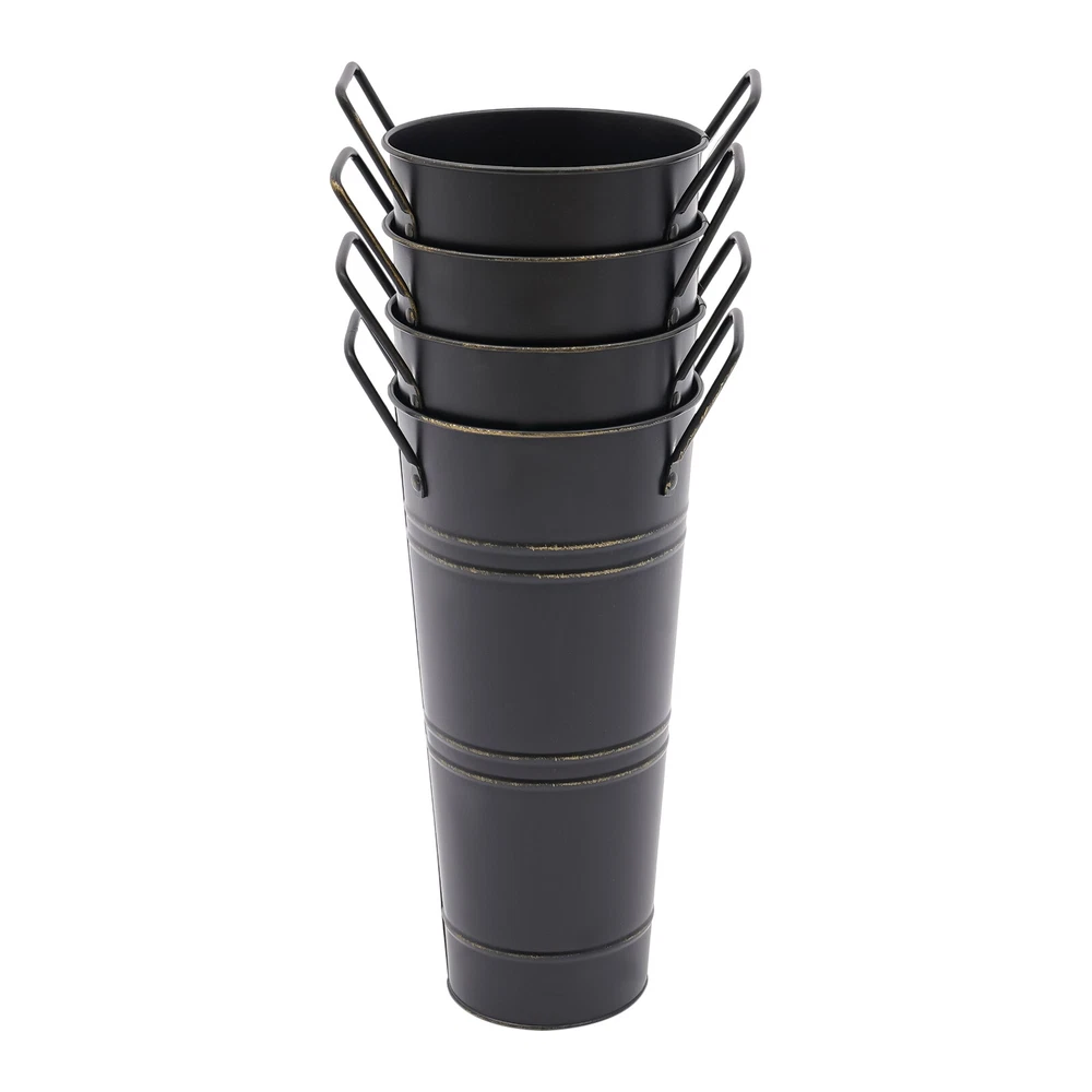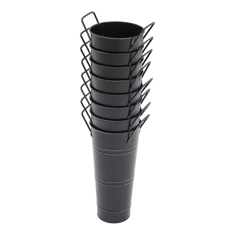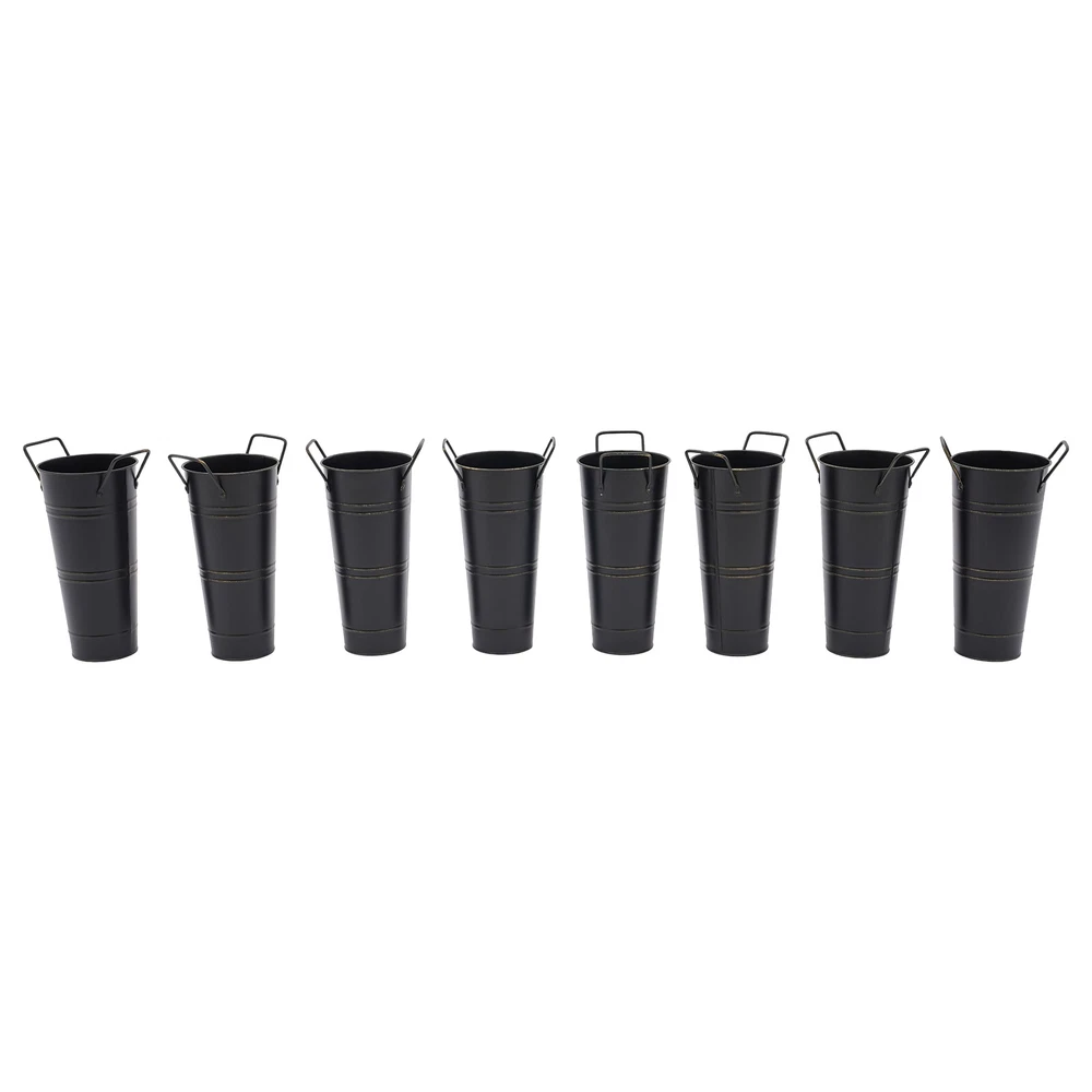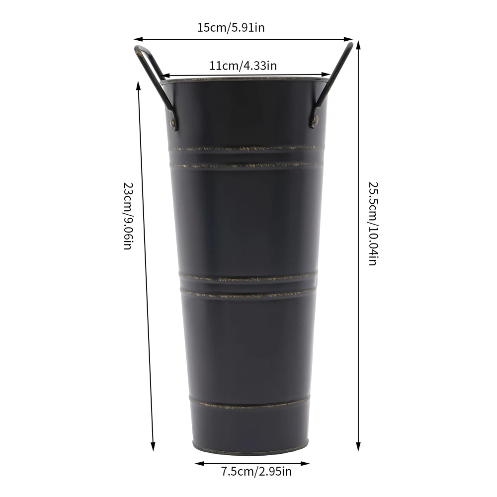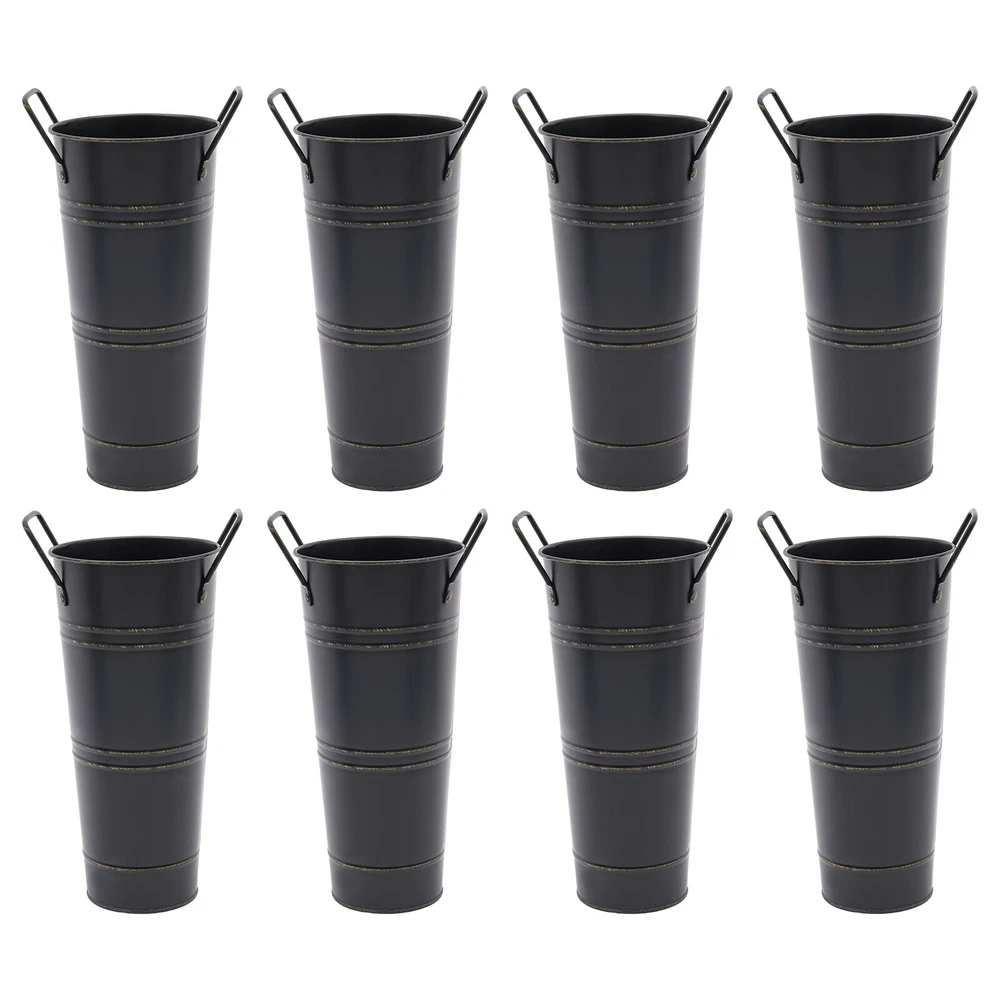 Specifications Color: Black Style: Modern Shape: Cylindrical Material: Iron Surface Treatment: Galvanized Assembly Required: No Mount Type: Floor Standing Number of Items: 8 Thickness: 0.23mm/0.009in Top Width(Handle Included): About 15cm/5.9in Top Opening Diameter: About 11cm/4.33in Product Overall Height: About 25.5cm/10.04in Vase Height(Handle Excluded): About 23cm/9.06in Bottom Diameter: About 7.5cm/2.95in Gross Weight: 1.63kg/3.59lbs Net Weight: 1.55kg/3.42lbs Package Size: 43.5*14*11.5cm/17.13*5.51*4.53in Package Included 8*Flower Bucket Vases 8PCS Galvanized Metal Vases Flower Bucket Vases, Black Flower Vases for Bouquet Description Our metal bucket vase, with its simple cylindrical shape, can harmoniously match various flowers, from fresh wildflowers to noble and elegant roses to display different decorative styles; It can also create a picturesque scene even without flowers, showcasing a unique attitude towards life. Whether as the finishing touch of home decoration or as a gift for family and friends, it is an ideal choice, making every aspect of life full of harmonious coexistence between art and nature. Key Features Strong and Durable : The product is made of thickened iron(0.23mm) with a galvanized finish to prevent rust, deform, and break, together with the waterproof coated interior, providing excellent durability and long service life. Practical Function : The 9.06-inch depth and 4.33-inch opening diameter are not picky about the flower material, whether it is a single large branch bouquet or a complex combination of small flowers, this vase can show their beauty and flexibility to adapt to a variety of decorative needs. Elegant Decoration : The classic retro appearance of the galvanized flower vase can match any home decoration and add an elegantly pristine ambiance to your home. Paired with real, artificial flowers, or plants, it greatly elevates the look of your living space. A pack of 8 : 8 vases can meet your different space placement needs, thus making the whole space layout more reasonable. DIY Fun : With these vases, you can invite your friends and family to join the DIY project and exercise your hand ability, stimulate your imagination and creativity, and have fun in it. Installation-Free : You can use this product directly after receiving it without additional installation, which saves you time and energy. Effortless Clean : A simple structure and smooth surface make this product easy to clean. You only have to wipe it with a damp cloth. Excellent Gift : You can give this practical product to your family, friends, and flower and plant lovers on various occasions such as anniversaries, holidays, Christmas, Thanksgiving, New Year's, and weddings, and share the beauty of nature with your loved ones. Good Customer Service : We stand behind all our guests and look forward to assisting you with your purchase. It is our pleasure to answer your confusion and questions. The end of the story between us is not "we sell and you buy". Details Practical Handles : The ergonomic handles are designed to make it convenient for you to move the product. Smooth Edges : They not only enhance the aesthetics and textures of the product but also improve safety during cleaning and use. Application These vases are ideal for flower arrangements, fresh/dried flowers, or plants. They are suitable for the bedroom, dining table, living room, kitchen, balcony, garden, party, ceremony, wedding, anniversary, hotel, flower shop, and other spaces. Specifications Color: Black Style: Modern Shape: Cylindrical Material: Iron Surface Treatment: Galvanized Assembly Required: No Mount Type: Floor Standing Number of Items: 8 Thickness: 0.23mm/0.009in Top Width(Handle Included): About 15cm/5.9in Top Opening Diameter: About 11cm/4.33in Product Overall Height: About 25.5cm/10.04in Vase Height(Handle Excluded): About 23cm/9.06in Bottom Diameter: About 7.5cm/2.95in Gross Weight: 1.63kg/3.59lbs Net Weight: 1.55kg/3.42lbs Package Size: 43.5*14*11.5cm/17.13*5.51*4.53in Package Included 8*Flower Bucket Vases Notes Please note that flowers are not included in this product. Due to manual aging surface treatment, there may be slight differences in color depth, which is a normal phenomenon. Rust spots are also specially designed. Please make sure you can accept this aging style before purchasing! Iron products may sometimes show signs of collision, paint peeling, etc. during transportation, but it does not affect the overall appearance. The iron sheet series flower vases cannot guarantee absolute waterproofing, and soaking in water for a long time will gradually rust. If you need hydroponic plants, you can put them in your own plastic bag or add a plastic inner pot! Please allow the slight color difference caused by the shooting light and the 1-3 cm error due to manual measurement, and make sure you do not mind before ordering. Payment Delivery details Terms of sales About us Contact us Payment We accept ebay payment 。 Fees such as import duties, taxes are not included in the item price or shipping costs. These charges are the buyer's responsibility. Delivery details Shipping: 2-9 working days to: USA Terms of sales We maintain high standards of excellence and strive for hundred percent customer satisfaction. Feedback is very important to us. We hope that you contact us immediately before you give neutral or negative feedback, so that we can address your concerns. It is impossible to address issues if we do not know about them! About us Your satis faction is our ultimate goal. We work hard to earn your trust and future business. Our certified technicians have tested each item before shipping. The unit comes with 1 year limited warranty on all manufacturing defects. a) If you receive a defective item, you may return it or ask for a discount. Please contact us within 14 days after you receive the package. b) What you returned must be intact and in its original packaging as re? u. Customer is responsible for shipping c