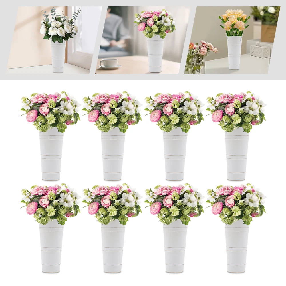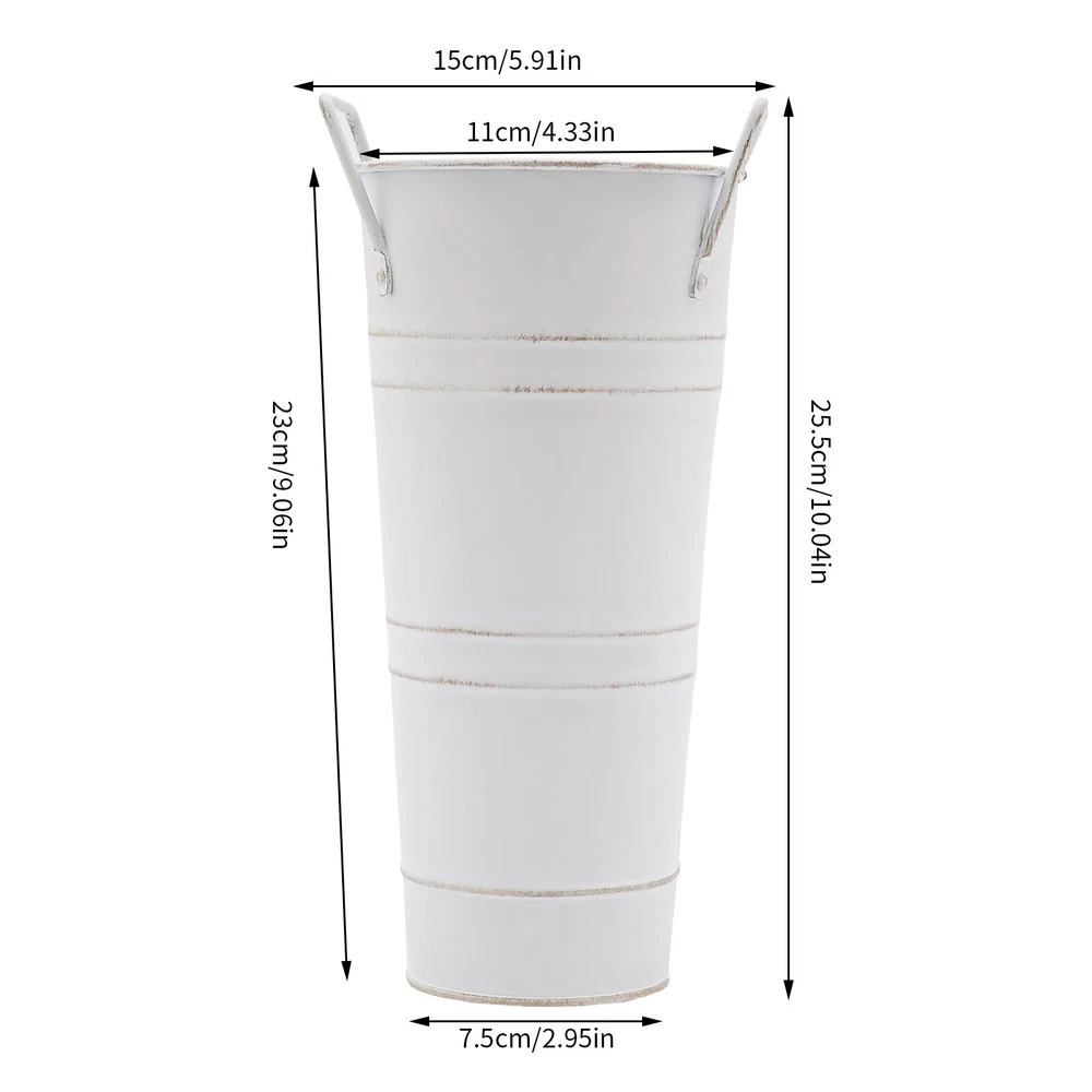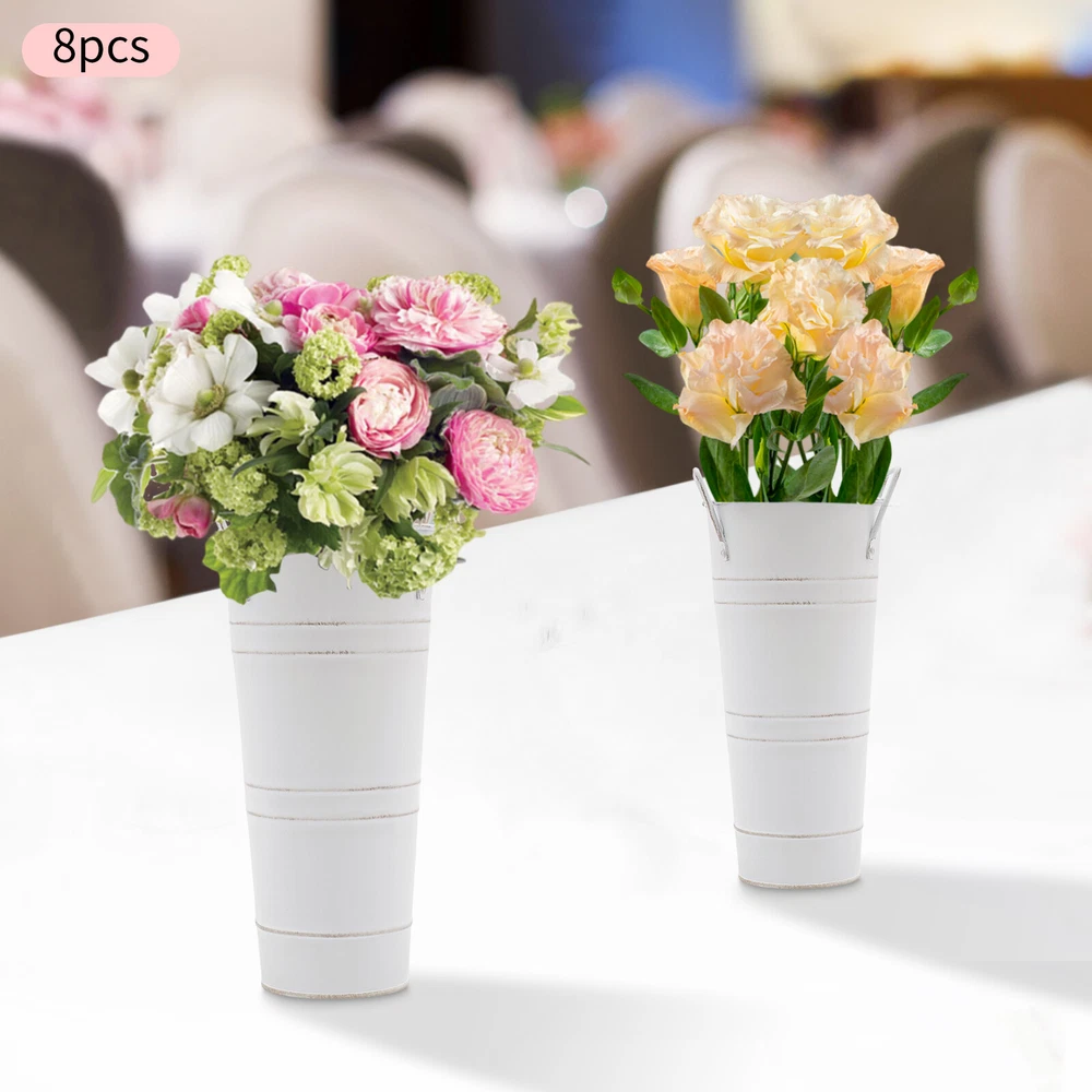 8PCS Metal Vases Flower Vases for Bouquet Flower Bucket Centerpiece Decorations Description Our metal bucket vase, with its simple cylindrical shape, can harmoniously match various flowers, from fresh wildflowers to noble and elegant roses to display different decorative styles; It can also create a picturesque scene even without flowers, showcasing a unique attitude towards life. Whether as the finishing touch of home decoration or as a gift for family and friends, it is an ideal choice, making every aspect of life full of harmonious coexistence between art and nature. Key Features Strong and Durable : The product is made of thickened iron(0.23mm) with a galvanized finish to prevent rust, deform, and break, together with the waterproof coated interior, providing excellent durability and long service life. Practical Function : The 9.06-inch depth and 4.33-inch opening diameter are not picky about the flower material, whether it is a single large branch bouquet or a complex combination of small flowers, this vase can show their beauty and flexibility to adapt to a variety of decorative needs. Elegant Decoration : The classic retro appearance of the galvanized flower vase can match any home decoration and add an elegantly pristine ambiance to your home. Paired with real, artificial flowers, or plants, it greatly elevates the look of your living space. A pack of 8 : 8 vases can meet your different space placement needs, thus making the whole space layout more reasonable. DIY Fun : With these vases, you can invite your friends and family to join the DIY project and exercise your hand ability, stimulate your imagination and creativity, and have fun in it. Installation-Free : You can use this product directly after receiving it without additional installation, which saves you time and energy. Effortless Clean : A simple structure and smooth surface make this product easy to clean. You only have to wipe it with a damp cloth. Excellent Gift : You can give this practical product to your family, friends, and flower and plant lovers on various occasions such as anniversaries, holidays, Christmas, Thanksgiving, New Year's, and weddings, and share the beauty of nature with your loved ones. Good Customer Service : We stand behind all our guests and look forward to assisting you with your purchase. It is our pleasure to answer your confusion and questions. The end of the story between us is not "we sell and you buy". Details Practical Handles : The ergonomic handles are designed to make it convenient for you to move the product. Smooth Edges : They not only enhance the aesthetics and textures of the product but also improve safety during cleaning and use. Application These vases are ideal for flower arrangements, fresh/dried flowers, or plants. They are suitable for the bedroom, dining table, living room, kitchen, balcony, garden, party, ceremony, wedding, anniversary, hotel, flower shop, and other spaces. Specifications Color: White Style: Modern Shape: Cylindrical Material: Iron Surface Treatment: Galvanized Assembly Required: No Mount Type: Floor Standing Number of Items: 8 Thickness: 0.23mm/0.009in Top Width(Handle Included): About 15cm/5.9in Top Opening Diameter: About 11cm/4.33in Product Overall Height: About 25.5cm/10.04in Vase Height(Handle Excluded): About 23cm/9.06in Bottom Diameter: About 7.5cm/2.95in Gross Weight: 1.63kg/3.59lbs Net Weight: 1.55kg/3.42lbs Package Size: 43.5*14*11.5cm/17.13*5.51*4.53in Package Included 8*Flower Bucket Vases Notes Please note that flowers are not included in this product. Due to manual aging surface treatment, there may be slight differences in color depth, which is a normal phenomenon. Rust spots are also specially designed. Please make sure you can accept this aging style before purchasing! Iron products may sometimes show signs of collision, paint peeling, etc. during transportation, but it does not affect the overall appearance. The iron sheet series flower vases cannot guarantee absolute waterproofing, and soaking in water for a long time will gradually rust. If you need hydroponic plants, you can put them in your own plastic bag or add a plastic inner pot! Please allow the slight color difference caused by the shooting light and the 1-3 cm error due to manual measurement, and make sure you do not mind before ordering. Payment Delivery details Terms of sales About us Contact us Payment We accept ebay payment 。 Fees such as import duties, taxes are not included in the item price or shipping costs. These charges are the buyer's responsibility. Delivery details Shipping: 2-9 working days to: USA Terms of sales We maintain high standards of excellence and strive for hundred percent customer satisfaction. Feedback is very important to us. We hope that you contact us immediately before you give neutral or negative feedback, so that we can address your concerns. It is impossible to address issues if we do not know about them! About us Your satis faction is our ultimate goal. We work hard to earn your trust and future business. Our certified technicians have tested each item before shipping. The unit comes with 1 year limited warranty on all manufacturing defects. a) If you receive a defective item, you may return it or ask for a discount. Please contact us within 14 days after you receive the package. b) What you returned must be intact and in its original packaging as re? u. Customer is responsible for shipping costs of the returned item. c) We will cover the cost of shipping back t with the shipping rate indicated in the registration page. We will send you a new unit or refund the full payment you paid. Thank you. Contact us Business Hour Business Hour: Monday To Friday: 8:30 AM to 5:00 PM (Beijing China time) Due to time zones, our reply to your questions may not be immediately. But within above working time, we will reply your email within 24 hours. If it's non-workdays, please kindly be patient and wait till Monday. Please contact us with ebay message. P
