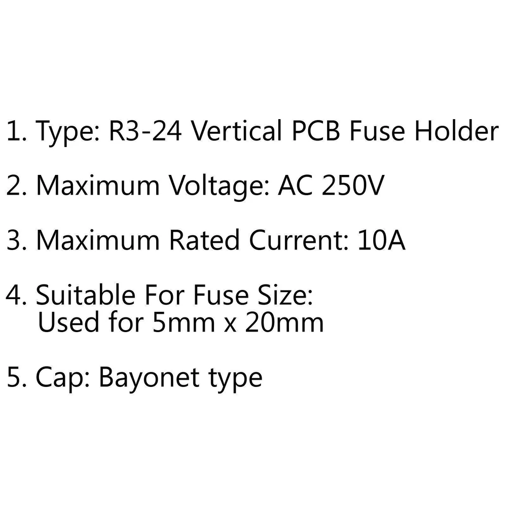 Rainbow Effect 260W 10R Sharpy Moving Head Beam Light 3In1 DJ Stage Lighting 349.99 USD Free shipping Fridge Defrost Thermostat for Kenmore, AP7116304, PS12199075, 60148-0007500 14.24 USD 14.99 USD Free shipping 5% off 250W MSD 8R Lamp Sharpy Beam Moving Head Replacement Bulb Stage Show Lighting 33.79 USD Free shipping 1Pcs 1Meter Power Cable For 350W/330W/280W/230W/200W Moving Head Light US Plug 12.87 USD Free shipping Rectifier Assy For Honda GX GXV 270 340 390 GX160 GX200 31600-ZE2-861 SH586B-12 30.79 USD Free shipping Brushless Motor Pinion And Mount Set For Wltoys 144002 144010 124016 124017 9.99 USD Free shipping NEW 65W Laptop Car Charger Power Supply DC Adapter Universal for HP 19.5V 3.33A 19.89 USD Free shipping Replacement Moving Head Beam Bulb 17R 350W Ballast Power Supply R17 Stage Lamp 46.79 USD Free shipping RC3563 Battery Voltage Meter Internal Resistance Voltage Tester Detector 39.27 USD Free shipping 6692836 For Bobcat Hydraulic Cap 321 323 324 325 328 329 331 334 335 337 341 22.79 USD Free shipping HDM to 3 RCA AV+S-Video CVBS Composite R/L Audio 1080P Converter US Plug US 35.87 USD Free shipping 1D 2D Desktop Barcode Scanner Omnidirectional USB Auto Sensing Barcode Reader V1 60.79 USD Free shipping A Fantastic Shop Send us a message Our Store Seller Profile Feedbacks Save this seller Contact 8PCS SCI R3-24 Vertical PCB Fuse Holder For 5x20mm Glass Fuses 10A 250V 100% Brand New and High Quality. Shape: Same as the picture show 1. Type: R3-24 Vertical PCB Fuse Holder 2. Maximum Voltage: AC 250V 3. Maximum Rated Current: 10A 4. Suitable For Fuse Size: Used for 5mm x 20mm 5. Cap: Bayonet type Package included: 8Pcs About US About Our Items We strive to describe all items accurately and thoroughly, with the utmost care and attention to detail. However, to ensure a mutually satisfactory transaction, we kindly ask for your assistance in thoroughly reviewing the item description and photos, and addressing any questions before placing a bid. Customer Satisfaction We stand behind our commitment with exceptional service, a 100% money-back guarantee, and a dedication to customer satisfaction. I am readily available to address any inquiries or concerns you may have, both before and after your purchase. Our aim is to ensure your shopping experience is enjoyable and that you're delighted with your purchase. Feedback Your feedback is crucial to our business's success. If you're satisfied with your purchase and the service you received, we would greatly appreciate your positive feedback, along with an overall Detailed Selling Rating (DSR) of 5. Please take a moment to leave us positive feedback. Our eBay account is set up to automatically reciprocate positive feedback once yours is received. If you're considering leaving neutral/negative feedback or opening an eBay/PayPal case, we encourage you to reach out to us immediately. We're committed to resolving any issues to the best of our ability. Shipping Parcel will be shipped using Standard shipping method. For security purposes, items will be shipped exclusively to the confirmed address on Paypal. Please ensure your Shipping address is up to date before proceeding with payment. Estimated delivery time within the United States ranges from 3 to 10 business days, depending on your location. Returns We accept returns within 60 days from the date the buyer receives the item. If the item is found to be defective upon receipt, the customer has up to 30 days from the date of receipt to request an exchange for a new item or a refund. For returns due to a change of mind, we accept items in their original selling condition. However, if the package has been opened due to a mistaken order, it does not qualify for our return policy. Please note that the buyer is responsible for covering the cost of return postage. If you encounter any issues, please reach out to us via eBay message, and we'll respond within 24 hours. 2PCS SCI R3-11 Panel Mount Chassis Fuse Holder For 5x20mm Glass Fuses 10A 250V 9.79 USD Free shipping 2PCS SCI R3-24 Vertical PCB Fuse Holder For 5x20mm Glass Fuses 10A 250V 9.87 USD Free shipping 8PCS SCI R3-11 Panel Mount Chassis Fuse Holder For 5x20mm Glass Fuses 10A 250V 13.79 USD Free shipping