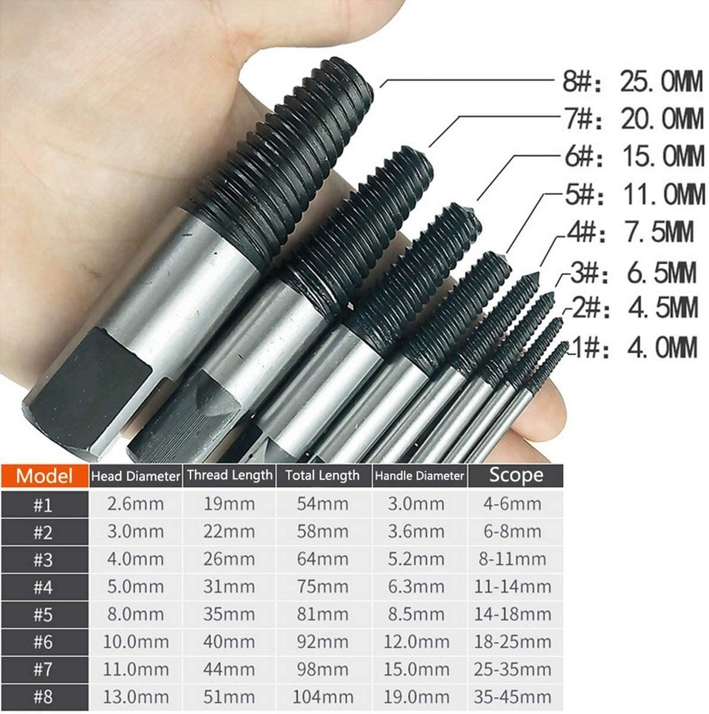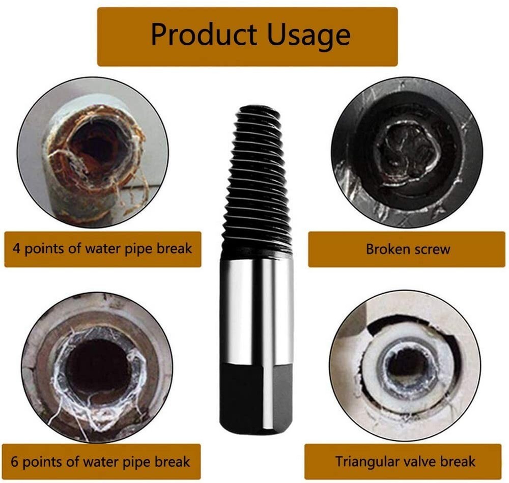 Features: 【RELIABLE QUALITY】The 8 Pcs Damaged Screw Extractor made from carbon steel and are tempered twice for extra hardness and durability.Works on wood and machine screws, as well as flat, hex, or painted over screws. 【EASY TO OPERATE】In just easy steps, only need a drill, choose a smaller extractor than the damaged screw, can easily remove the screw, please ensure to run the drill in reverse during this process. 【ATTACHED WITH A DURABLE CASE】8 pcs extractors are sequentially stored in a Buckle Lock storage box, for Easy Storage And Transport and preventing falling out and rusting. It has a protective effect. 【8 SIZES TO MEET YOUR DIFFERENT NEEDS】Screw extractor set includes #1 for 1/8"-5/32", #2 for 5/32"-3/16", #3 for 3/16"-1/4", #4 for 1/4"-5/16", #5 for 5/16"-7/16", #6 for 7/16"-9/16", 7# for9/16"-3/4", 8# for 3/4"-1". 【2 OF 8 EXTRACTORS ARE DESIGNED FOR WATER PIPE BREAKS】These extractors will remove most kinds of damaged, stripped, rusted, broken, or stuck screws from any wood or metal surface with relative ease. The new two water pipe extractors, designed for the broken water pipes. Specification: How To Use: 1. First drill a hole with a power drill on the broken screw. 2. Gently tap the screw extractor into the drilled hole with a hammer. 3. Use a wrench to rotate counterclockwise to remove the broken screw. 4. Check if the broken screws are all removed. Package Including: 8 * Damaged Screw Extractor Set 1 * Storage Box Tips: 1. Use the electric drill with the speed changeable in the opposite direction. 2. First make sure that the workpiece is safe and will not be moved when using the extractor. 3. Select a screw extractor that is thinner than the damaged screw head. Drill a deep enough hole in the middle of the screw head with one end of the drill head. 4. Reverse the screw extractor and turn it counterclockwise into the damaged screw until the damaged screw is released. Notice: In case the item is defective, please inform us within 15 days of receipt, we will arrange reship or refund. Buyers have to pay for the return cost and we will pay the cost for resend. If you are unsatisfied with our item or service, please contact us before leaving any feedback. We are committed to resolve all issues in a friendly and satisfactory manner. We always reply to messages within 2 business days (off-duty at weekend).If you do not get a response from us, then please check your junk or spam mailbox.