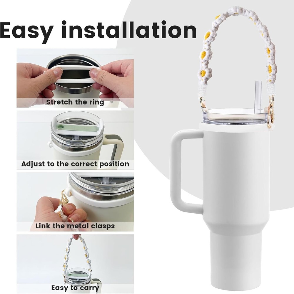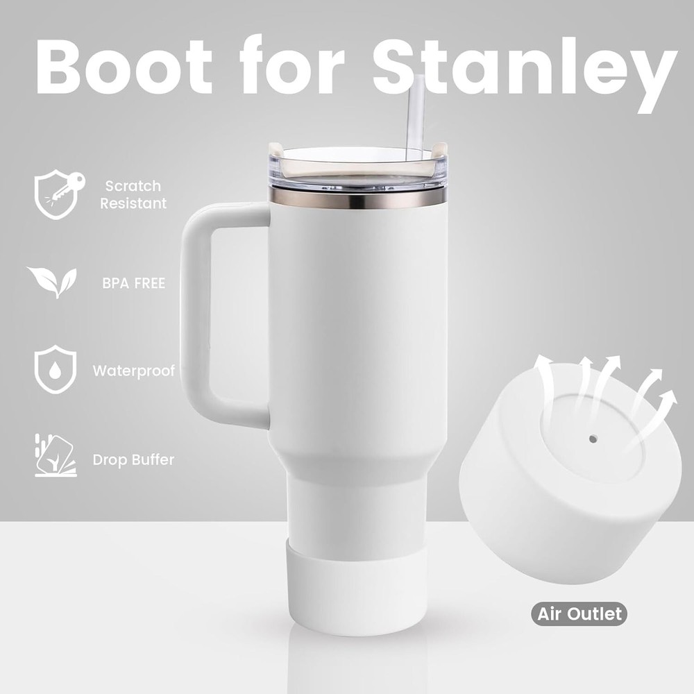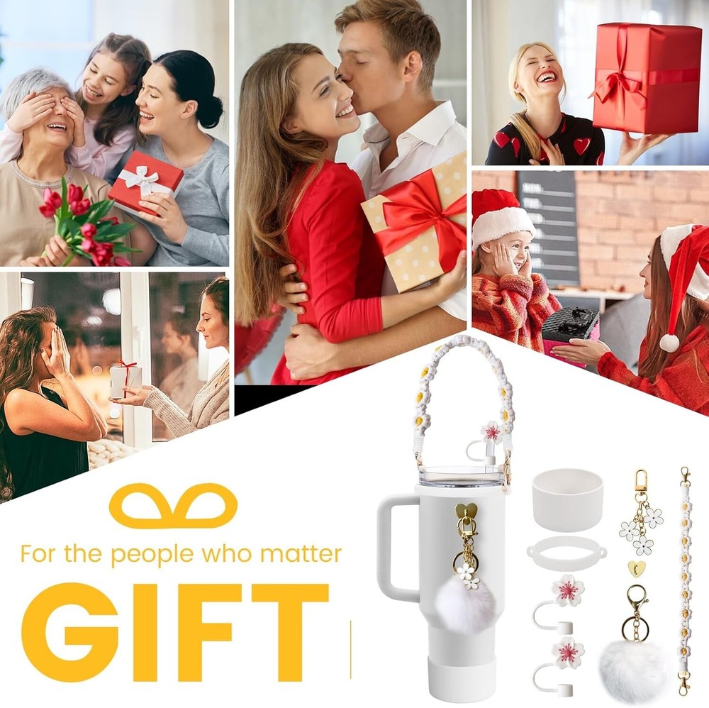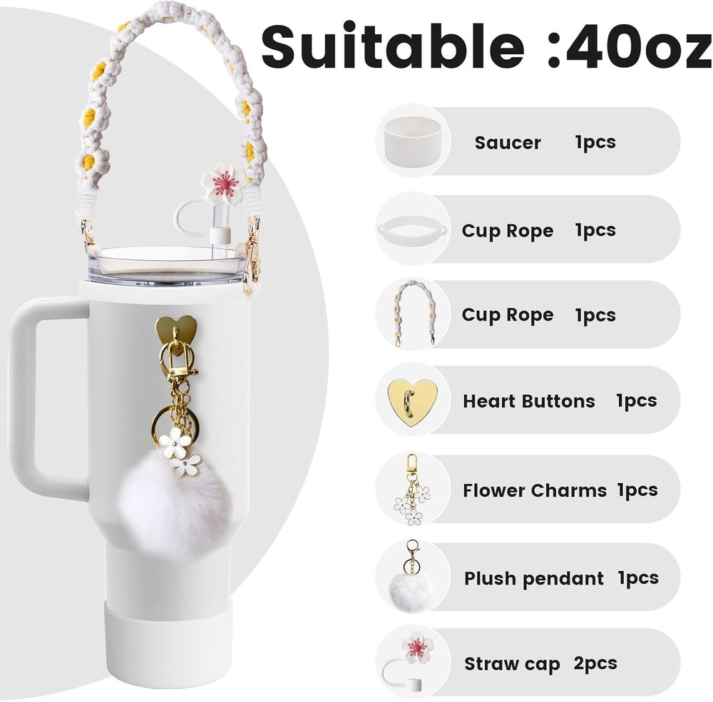 8PCS Cup Accessories for Stanley Cup 40oz & 30oz Tumbler with Handle, Including Siliocne Straw Topper Cover,Water Bottle Handle Strap, Boot, Keychain Charms for Stanley Cup (White) About This Item : 1. [ Complete Stanley Cup Accessories Set] This set by Puvxgur includes all the essentials you need for your Stanley Cup 40oz & 30oz Tumbler. An ideal kit to elevate your tumbler user experience. 2.[Comfortable Handle] The ergonomically designed handle ensures an easy grip and convenient carrying. It is created to fit the Stanley Cup 40oz & 30oz Tumbler perfectly. 3. [ Protective Silicone Straw Topper Cover] The silicone straw topper cover provides enhanced protection, keeping your straw clean while not in use. It brings a new level of hygiene to your drinking habits. 4.[ Durable Water Bottle Handle Strap & Boot] The sturdy handle strap adds extra security while carrying, preventing accidental drops. The boot offers additional protection to your tumbler, guarding against dents and scratches. 5. [Personalized Keychain Charms] The kit comes with unique keychain charms, adding a personal touch to your Stanley Cup. These charms are not just decorative but can also serve as a great identifier for your tumbler.