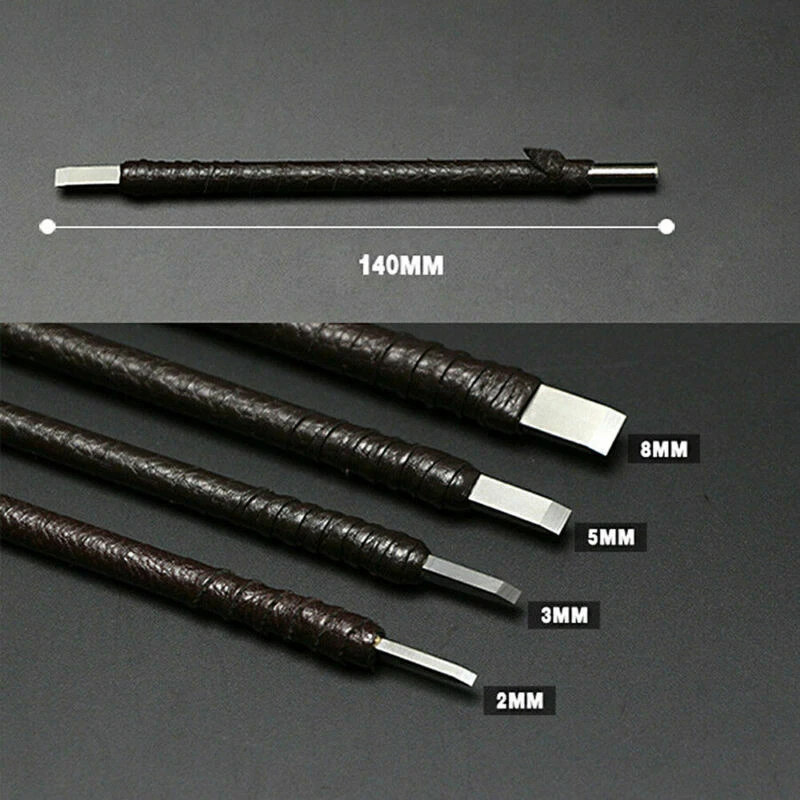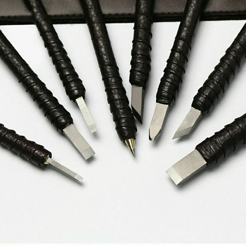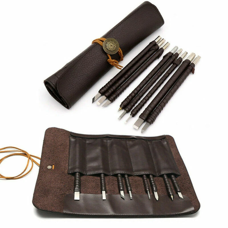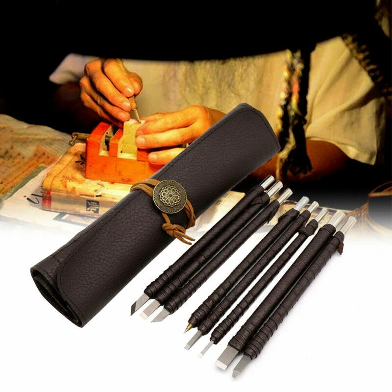 8pcs Tungsten Steel Stone Carvin g Sculpting Kit Carbide Hand Chisel Tool + A Bag Features: Durable,well made and easy to control for each have a very comfortable grip Used for carving stone stamps and small decorative crafts Tungsten steel cutter head has high hardness, wear resistance, good strength and toughness, heat resistance and corrosion resistance The storage bag is made of high-quality PU leather with retro brass buckles. Specifications: Carving Tools Material: Tungsten Steel Storage Bag Material: PU Length: 140mm Diameter: 5.8mm Package Included: 8 x Carving Tools 1 x Storage Bag