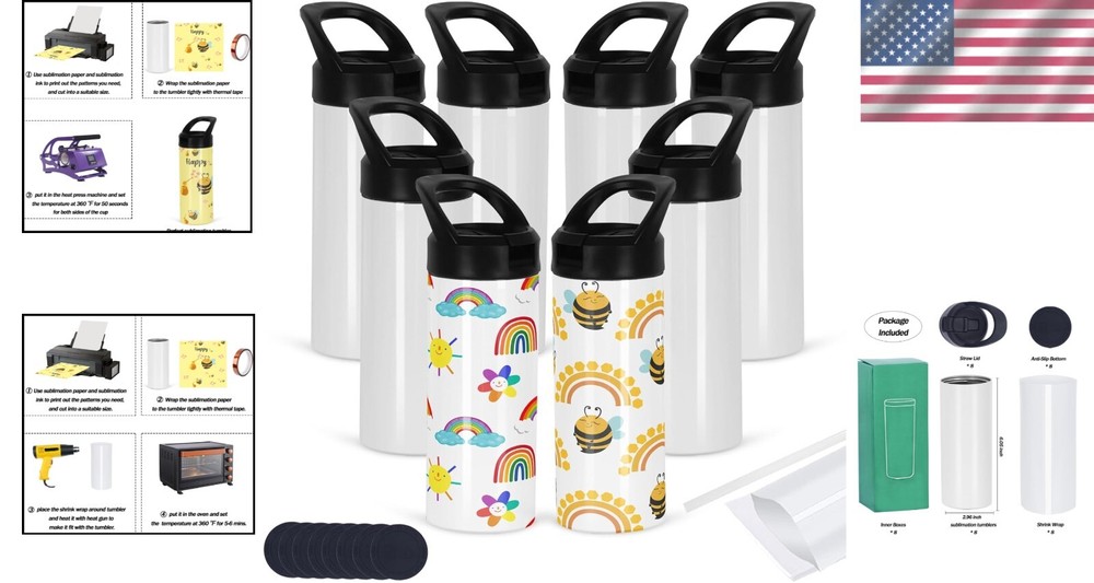 8 Pack Kid Sublimation Tumblers, 15 Oz Leak-Proof Stainless Steel Bottles ‹ › ‹ › ‹ › ‹ › ‹ › ‹ › ‹ › ‹ › 8 Pack Kid Sublimation Tumblers Experience the joy of creating with our 15 oz Leak-Proof Stainless Steel Bottles, ideal for personalizing memories and gifts! Features: GREAT SUBLIMATION COATING: Our tumblers feature a special high-temperature coating, ensuring bright, vibrant colors that won't fade or fog, perfect for heat transfer DIY projects. UPGRADED STRAW LID: Designed with an anti-spill valve and thickened sealing ring, these bottles prevent leaks while providing a hygienic solution with a foldable straw to keep dust out. FULLY EQUIPPED PACKAGE: Each pack includes 8 x 15 oz sublimation blank tumblers, straw lids, inner boxes, sublimation wrap, rubber bases, straws, and 1 outer box for a complete gifting experience. 18/8 FOOD GRADE STAINLESS STEEL: Crafted from top-quality 18/8 food-grade stainless steel, these tumblers are rust-resistant and free from metal aftertaste, ensuring a pure drinking experience. DOUBLE-WALL VACUUM TECHNOLOGY: Enjoy your beverages at the perfect temperature, with the ability to keep drinks warm for up to 9 hours and cold for 12 hours, sweatproof for your convenience. Benefits: Unleash your creativity by designing personalized tumblers with loved ones. Keep your drinks secure with upgraded leak-proof features. Fully equipped for DIY projects, saving time on packing and presentation. Made with safe, high-quality materials for a superior drinking experience. Perfectly insulated for hot summer days and cozy winter nights. Why choose our Kid Sublimation Tumblers? Delight in the world of custom creations with our 8 Pack Kid Sublimation Tumblers. Not only are they designed for personalization, but they are also equipped with essential features that make them practical for everyday use. These tumblers are the perfect way to craft lasting memories or gift something truly unique to family and friends! Enhance your DIY experience today—order your set of Kid Sublimation Tumblers now! Shipping Free & Fast Shipping - We offer free shipping to most of the USA with a normal delivery time of 3-7 days. However, due to the current situation, additional delivery time (up to 3 weeks) may be required for some items. Alternative Carriers - We may use alternative carriers (e.g. USPS, FedEx, UPS, etc.) to ensure your package arrives safely and on time. Due to the use of multiple carriers, we are unable to provide a tracking number automatically. Handling Time - Orders are processed and shipped within 1-2 business days of receiving cleared payment. Shipping Restrictions - Shipping to Alaska, Hawaii, Puerto Rico, Guam, and other US territories may incur shipping charges or delivery restrictions. Please contact us before ordering, or your order can be refunded/cancelled. State Restrictions - There may be restrictions based on your state of purchase. For example, certain items may not be shipped to California due to state regulations. Contact for Tracking Updates - If you require tracking updates or have any concerns about the delivery of your order, please feel free to contact us, and we will be happy to assist you. Return 30-Day Hassle-Free Returns - We want you to be completely satisfied with your purchase. If you are not, you can return the item within 30 days of receiving it for a full refund or exchange. Easy Return Process - To start a return, simply contact us and we will provide you with a prepaid return shipping label and detailed instructions. Restocking Fee - There are no restocking fees for returns. However, the buyer is responsible for return shipping costs if the return is not due to a seller's error. Refund Processing Time - Refunds will be processed within 5 business days of receiving the returned item in its original condition. Payment We accept all major credit cards, PayPal, and Apple Pay for your convenience. Your payment information is secure and encrypted to ensure a safe and seamless transaction. Please complete your payment within 3 days of purchase to avoid any delays in shipping. Feedback Your feedback is extremely important to us. We strive to provide the best products and customer service possible. If you are satisfied with your purchase, please take a moment to leave us a positive review. If you have any concerns or issues with your order, please contact us before leaving negative feedback. We are committed to resolving any problems and ensuring your satisfaction. Contact Us If you have any questions or concerns, please feel free to reach out to our customer support team. You can contact us through the eBay messaging system. We are available Monday to Friday, 9:00 am to 5:00 pm EST, and we will do our best to respond to your inquiry within 24 hours. Buy it now and enjoy a pleasant shopping experience! UPC: Not Set Unit Quantity: 8 Material: Stainless Steel Theme: Bottle Features: Leak Proof,Upgraded Straw Lid,Double Wall,Anti Spill Valve,Thickened Sealing Ring,Folding Straw Mouth,Portable Handle,Sweatproof Character: Not Set Department: Kids Type: Sublimation Tumbler Brand: Unbranded Color: White Character Family: Not Set Beverage Type: Hot or Cold Pattern: Not Set Capacity: 15 oz Lid Type: Flip Top MPN: Not Set Country/Region of Manufacture: Not Set Item Width: Not Set Item Height: Not Set Keeps Hot For: 9 hrs Keeps Cold For: 12 hrs Number of Items in Set: Eight-Piece Care Instructions: Hand Wash Only Manufacturer Warranty: Not Set Item Weight: 0.2 kg Model: Not Set Unit Type: Unit Personalize: Not Set