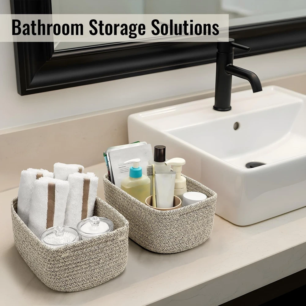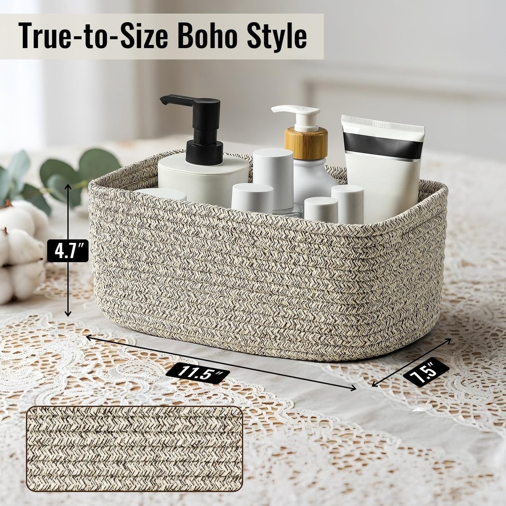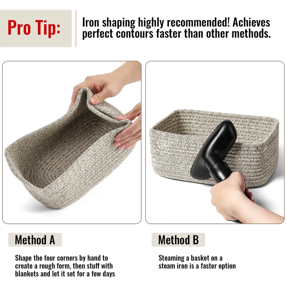 8 Packs Shelf Storage Baskets for Organizing - Small Cube Woven Rope Baskets for shelves - Closet Organizer Bins, Toy Basket, Decorative Box, 12x8x4.5", Brown Compact & Versatile Storage – Measuring 11.5"×7.5"×4.7", these small woven baskets are perfect for organizing cosmetics, jewelry, toys, towels, keys, and more. The set of 8 helps declutter desks, shelves, and closets effortlessly, Brown Soft & Baby-Safe Cotton Rope – Hand-woven with premium natural cotton, these baskets are ultra-soft, odorless, and free of sharp edges, making them safe for babies, pets, and delicate items Charming Minimalist Decor – The neutral-toned woven texture adds warmth to any space—ideal for living rooms, nurseries, or closets. Enhances modern, cozy aesthetics effortlessly Durable & Quality Crafted – Each basket undergoes strict quality checks for reinforced stitching and long-lasting use. Holds shape well even with daily use Easy to Shape & Store – Ships flat for eco-friendly packaging! For instant perfection, a 30-second steam iron treatment works wonders (trust us, it's like magic!). Of course, you can also gently stuff it with clothes—but why wait when crisp edges are just one ironing away? Flattens back down for compact storage