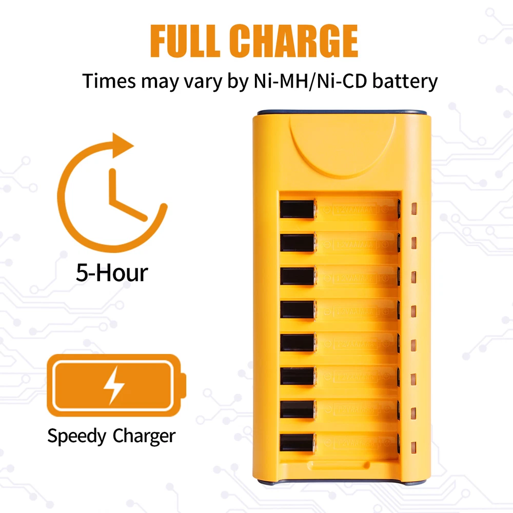 8Pcs AA & 8Pcs AAA 1.2V Ni-MH Rechargeable Batteries with USB 8-Slot Charger & Plastic Battery Storage Case Warm Tips: Before use, please remove the plastic packaging film of the battery. AA / AAA NiMH Battery 1.2v Features: 1.【Widely used】 The AA batteries rechargeable 1.2v is perfect for solar garden lights, landscape lights, lawn lights, etc.It can replace all disposable alkaline batteries for low power electronic products. 2.【Easy to Charge】 The AA rechargeable batteries Ni-MH can be charged by solar lights or standard charging devices. Better high-temperature performance than other types of batteries, can be used from -4℉ to 140℉, and can be charged from the sun even in the snow. 3.【Safe and Reliable】 The Ni-MH AA 1.2v rechargeable battery is very safe and reliable. For transportation safety, these Ni-MH AA batteries are only pre-charged to 30%, so please charge them before use for longer working time. 4.【Durable】 Our Ni-MH AA batteries rechargeable have a capacity of 700mAh and can be recharged at least 500 times continuously. Save you the cost of buying disposable alkaline batteries and reduce the harm to the environment. 5.【Suggestion】 Please charge the battery after each power exhaustion, otherwise it will affect the capacity and life. In addition, charge every 3 months to extend the life of the battery. NiMH AA Battery 1.2v Specification: Capacity: 700mAh Voltage: 1.2V Size: diameter 14mm*50 mm Terminal Type: Button Top Chemistry: Ni-MH (Nickel Metal Hydride) Rechargeable Times: Up to 1000 times No Memory Effect Note: Do not disassemble or modify the rechargeable battery NiMH AAA Battery 1.2v Specification: Capacity: 700mAh Voltage: 1.2V Size: diameter 10mm*44 mm Terminal Type: Button Top Chemistry: Ni-MH (Nickel Metal Hydride) Rechargeable Times: Up to 1000 times No Memory Effect Note: Do not disassemble or modify the rechargeable battery Package Included: 8X Ni-MH AA 1.2v Rechargeable Battery 700mAh 8X Ni-MH AAA 1.2v Rechargeable Battery 700mAh 4X Plastic Battery Storage Cases 1X AA AAA USB Universal Battery Charger 8-Slot Warm Tips: 1. Before use, please remove the plastic packaging film of the battery. 2. Please check the "+" and "—" directions of the battery before you charge the battery. 3. Do not put the product into fire, short circuit, dissassemble and extrude. 4. Do not mix charging with different type of batteries, which may explode or leak, causing personal injury. 5. Please use up the power each time, then recharge it otherwise it will affect its capacity and lifetime. 6. Please take out the battery if you won't use for a long time to avoid battery leakage. 7. Note:Please find us in first time when you find the parcel Broken/Scratch/Function Error/Miss Parts/Unwork/has not arrived etc, we always have more details and solutions, even duty for your order. On Jan 4, 2025 at 00:01:58 PST, seller added the following information:
