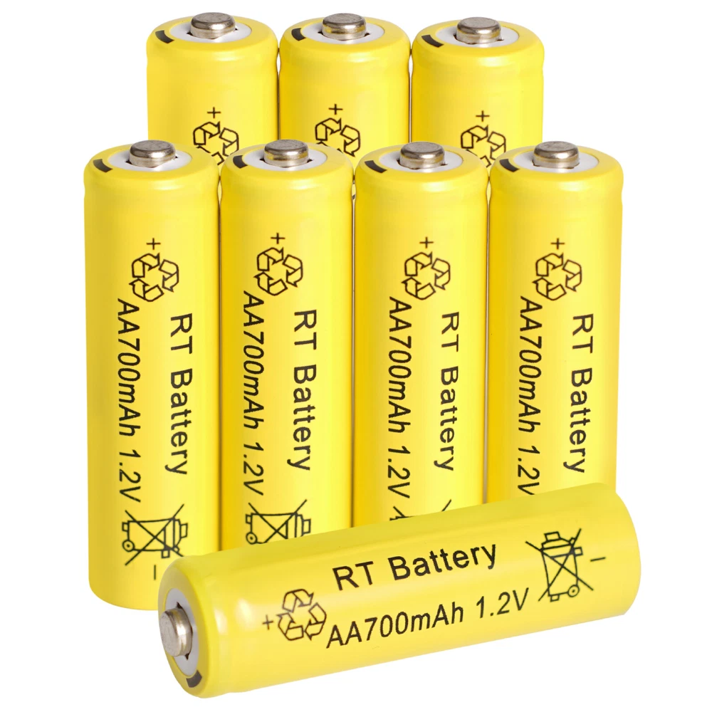 8Pcs AA & 8Pcs AAA Ni-MH Rechargeable Batteries 1.2v 700mAh with Storage Case Warm Tips: Before use, please remove the plastic packaging film of the battery. AA / AAA NiMH Battery 1.2v Features: 1.【Widely used】 The AA batteries rechargeable 1.2v is perfect for solar garden lights, landscape lights, lawn lights, etc.It can replace all disposable alkaline batteries for low power electronic products. 2.【Easy to Charge】 The AA rechargeable batteries Ni-MH can be charged by solar lights or standard charging devices. Better high-temperature performance than other types of batteries, can be used from -4℉ to 140℉, and can be charged from the sun even in the snow. 3.【Safe and Reliable】 The Ni-MH AA 1.2v rechargeable battery is very safe and reliable. For transportation safety, these Ni-MH AA batteries are only pre-charged to 30%, so please charge them before use for longer working time. 4.【Durable】 Our Ni-MH AA batteries rechargeable have a capacity of 700mAh and can be recharged at least 500 times continuously. Save you the cost of buying disposable alkaline batteries and reduce the harm to the environment. 5.【Suggestion】 Please charge the battery after each power exhaustion, otherwise it will affect the capacity and life. In addition, charge every 3 months to extend the life of the battery. NiMH AA Battery 1.2v Specification: Capacity: 700mAh Voltage: 1.2V Size: diameter 14mm*50 mm Terminal Type: Button Top Chemistry: Ni-MH (Nickel Metal Hydride) Rechargeable Times: Up to 1000 times No Memory Effect Note: Do not disassemble or modify the rechargeable battery NiMH AAA Battery 1.2v Specification: Capacity: 700mAh Voltage: 1.2V Size: diameter 10mm*44 mm Terminal Type: Button Top Chemistry: Ni-MH (Nickel Metal Hydride) Rechargeable Times: Up to 1000 times No Memory Effect Note: Do not disassemble or modify the rechargeable battery Package Included: 8X Ni-MH AA 1.2v Rechargeable Battery 700mAh 8X Ni-MH AAA 1.2v Rechargeable Battery 700mAh 4X Plastic Battery Storage Cases Warm Tips: 1. Before use, please remove the plastic packaging film of the battery. 2. Please check the "+" and "—" directions of the battery before you charge the battery. 3. Do not put the product into fire, short circuit, dissassemble and extrude. 4. Do not mix charging with different type of batteries, which may explode or leak, causing personal injury. 5. Please use up the power each time, then recharge it otherwise it will affect its capacity and lifetime. 6. Please take out the battery if you won't use for a long time to avoid battery leakage. 7. Note:Please find us in first time when you find the parcel Broken/Scratch/Function Error/Miss Parts/Unwork/has not arrived etc, we always have more details and solutions, even duty for your order. On Jan 3, 2025 at 23:03:28 PST, seller added the following information: