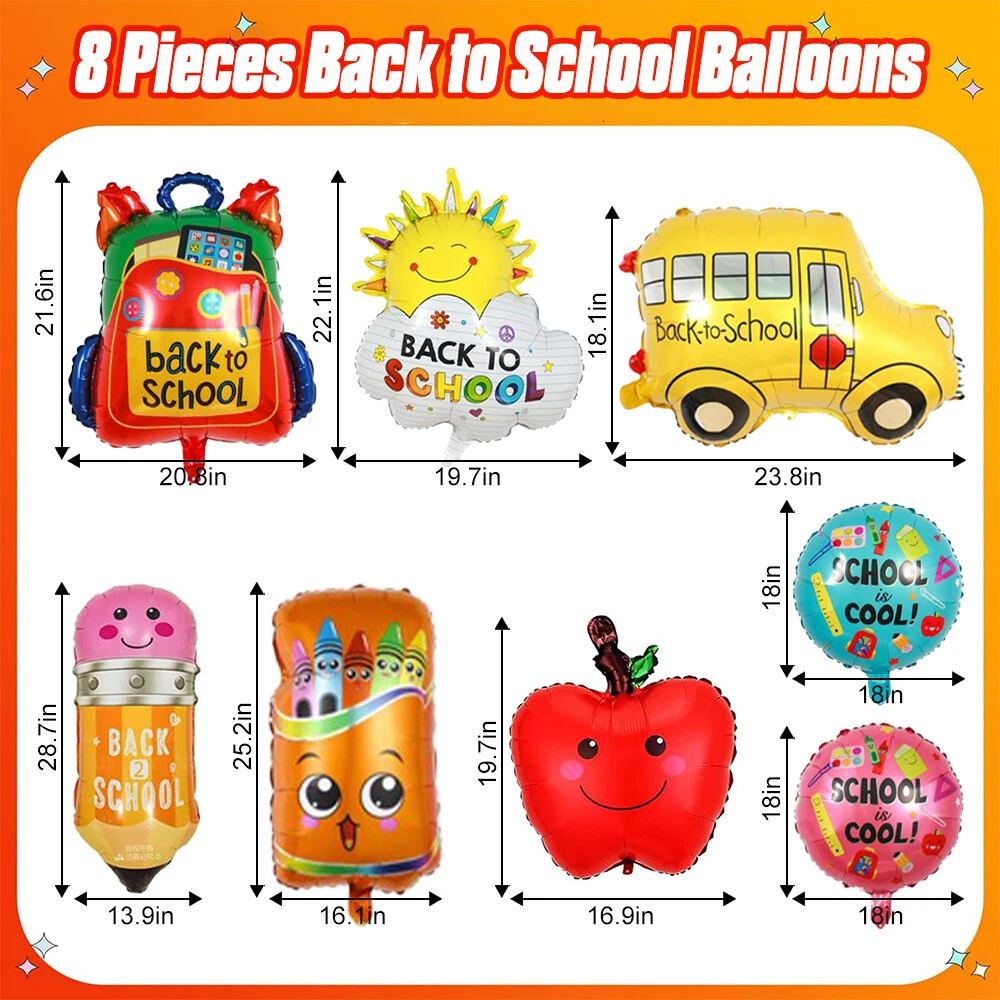 Product details: you will get 8 back to school balloons, including 1 schoolbag balloons, 1 apple balloons, 1 cloud balloons, 1 pencil balloons, 1 crayon box balloon, 1 school bus balloon, and 2 round balloons. Create a party feel: foil balloons have many classic and fun school elements, which are very consistent with the school theme. For back to school: let this foil balloon set make a big splash at back to school party. How to use: school is cool balloons are easy to inflate; do not inflate them excessively to avoid breakage, and keep them away from sharp objects; not suitable for children under 3 years old; you can use ropes to hang the balloons where you want to decorate. Sturdy and reusable: first day of school balloons are aluminum materials, which are strong and reusable. Home Home Decoration Gift Idea Buy 1 Get 1 50% OFF Other Big Deals Follow Us 8Pcs Back to School Foil Balloons Set Stationery Balloons Pencil Apple Reusable Product Details Product details: you will get 8 back to school balloons, including 1 schoolbag balloons, 1 apple balloons, 1 cloud balloons, 1 pencil balloons, 1 crayon box balloon, 1 school bus balloon, and 2 round balloons; the dimensions are shown in the picture. Create a party feel: foil balloons have many classic and fun school elements, which are very consistent with the school theme and can easily create a happy party feeling for the class; school balloons of profuse colors feature shiny appearances and are great for decorating classrooms. For back to school: let this foil balloon set make a big splash at back to school party and school is cool party, with a variety of styles for you to share and adorn the classroom with your classmates; large balloons look great and they are reusable. How to use: school is cool balloons are easy to inflate; do not inflate them excessively to avoid breakage, and keep them away from sharp objects; not suitable for children under 3 years old; you can use ropes to hang the balloons where you want to decorate. Sturdy and reusable: first day of school balloons are aluminum materials, which are strong and reusable, and have bright colors that are less likely to fade; you can attach foil balloons to walls, blackboards, desks, windows, hang them on railings, or design your own decorative style. Choking Hazard:Children under 8 yrs. can choke or suffocate on uninflated or broken balloons. Adult supervision required. Keep uninflated balloons from children. Discard broken balloons at once. Package Included: 8 x Back to School Balloons Shipping Policy Payment Method Returns Policy Customer service Note Shipping Policy • We always ship within 1-2 business days via USPS or UPS. You are expected to get the parcel within 4-7 business days. • Free shipping available for USA address only. • We do not change your shipping address by email. Pls make sure your address is correct before checking out and making payment. Payment Method • Credit cards, debit cards, Apple Pay, Google Pay, and PayPal are accepted • When you buy an item on eBay, you'll need to pay within 4 days. The sooner we receive your payment, the sooner we'll send your item. • Platform is required by law to collect sales tax and applicable fees for certain tax authorities, you can see tax when checkout. • If you have any problems paying for your items, please contact eBay. Returns Policy • If a defective product was received, please do not hesitate to message us via eBay message within 7 days. We will response in 24 hours to resolve the problem. • We stand behind our products. Items can be returned for exchange or full refund within 30 days from the date you receive. Please message us via eBay message before you return it. • Return shipping is the responsibility of buyer unless the return is a result of our mistake (i.e., the wrong/ defective item has been sent). e will pay for shipping replacement back to you if an exchange is requested. • Your full satisfaction is utmost important to us; We pledge to do everything possible to gain your trust and approval. Customer service • Honest customer is our good friends. Your satisfaction is important to us. Everything goes better with understanding and communication. • If you have any questions please via eBay Message for our Customer Service. We will respond via eBay Message in 1-2 business day or less. Please include your eBay ID. Note •Prior to any return please message us via ebay message, so we can help you quickly and efficiently. We aim to deal with all e-mails on a 24hr turn around Monday to Friday.. •Buyer is responsible for all applicable customs, import duties, and VATs. •In case there's inspection by the local customs or post office, deliver will be affected accordingly. •We maybe will send your multiply items in one package to let you receive your package safely together if you buy several items at the same time. If you want to send the package separately, Please make a note to remind me when you make the payment with PayPal. We sincerely hope you can consider this position, we will appreciate greatly.