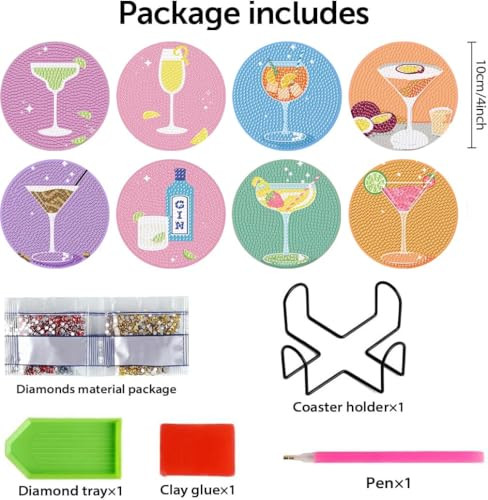 Menu 1. We require immediate payment. 2. We currently accept payment via eBay managed payments only. 3. Once payment is cleared, we will dispatch your shipment within 1-3 business days. Please refer to the "Shipping" tab for more information regarding shipping speed to your destination. 8Pcs Diamond Painting Coasters with Holder,DIY Cocktail Life Coaster Diamond Art Kits for Adults Kids,Beginners Round Full Drill Diamond Art Craft Supplies Product description Proper Dimension to Use: these diamond painting coasters with holder measure about 3.74 inches/ 9.5 cm in diameter, compact in size, light in weight, suitable for most household cups, simple to store and carry around Cocktail Diamond Painting Coaster Set:You can get diamond paintings coaster x 8,coaster holder x 1, clay glue x 1, pen x 1, diamond tray x 1 and enough colorful diamonds.It contains all the accessories and tools you need for DIY diamond painting coasters. Premium Material: Our diamond painting coasters are made of high quality acrylic. The pattern and numbers are clear and easy to read. It has strong adhesion, which can firmly stick the rhinestones on the coaster and is not easy to fall off. Easy to operate: The Craft Supplies Kits come with a diamond painting tool that allows you to easily complete 8 pcs coasters. First, remove the protective film from the coasters, then find the rhinestones you need according to the numbers/letters on the coasters (the corresponding numbers/letters are marked on the bag) and start making them.Easy to use and suitable for beginners. SALES SERVICE: Please contact us if you have any questions after receivingdiamond painting kit , we will reply to your message and solve the problem within 24 hours, please do not worry,rest assured to buy. PLEASE MESSAGE US IF YOU HAVE ANY OTHER QUESTIONS, AND MANY THANKS FOR READING ALL OF THIS. Copyright ©#. All Rights Reserved.