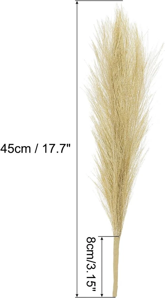 About this item Artificial pampas grass with stylish and natural look is perfect for vase filler. The faux pampas grass decoration is suitable for any different occasions including indoor and outdoor decoration, flower arrangement, wedding, home, hotel and anywhere you want to decorate. Fake pampas grass can also be used to make garlands, photography props, etc. Fake Pampas Grass,Color: Golden;Material: Fabric;Pampas grass size: 17.7 inches / 45cm;In the package of: 8Pcs x faux pampas grass; Faux pampas grass, soft and fluffy can be matched with any decorations, adding romantic atmosphere. Artificial pampas grass will not fall off, no smell, will not make people feel uncomfortable, no effect on people's body. The stems are durable and do not require maintenance and can be used for a long time. You can pair faux reed decor with a variety of other real plants and flowers to create a variety of exquisite looking DIY floral arrangements. Carefully shake each stem before use to remove excess fur and help the feathers open. Note: Please understand that there may be slight color differences due to different lighting and monitor differences.
