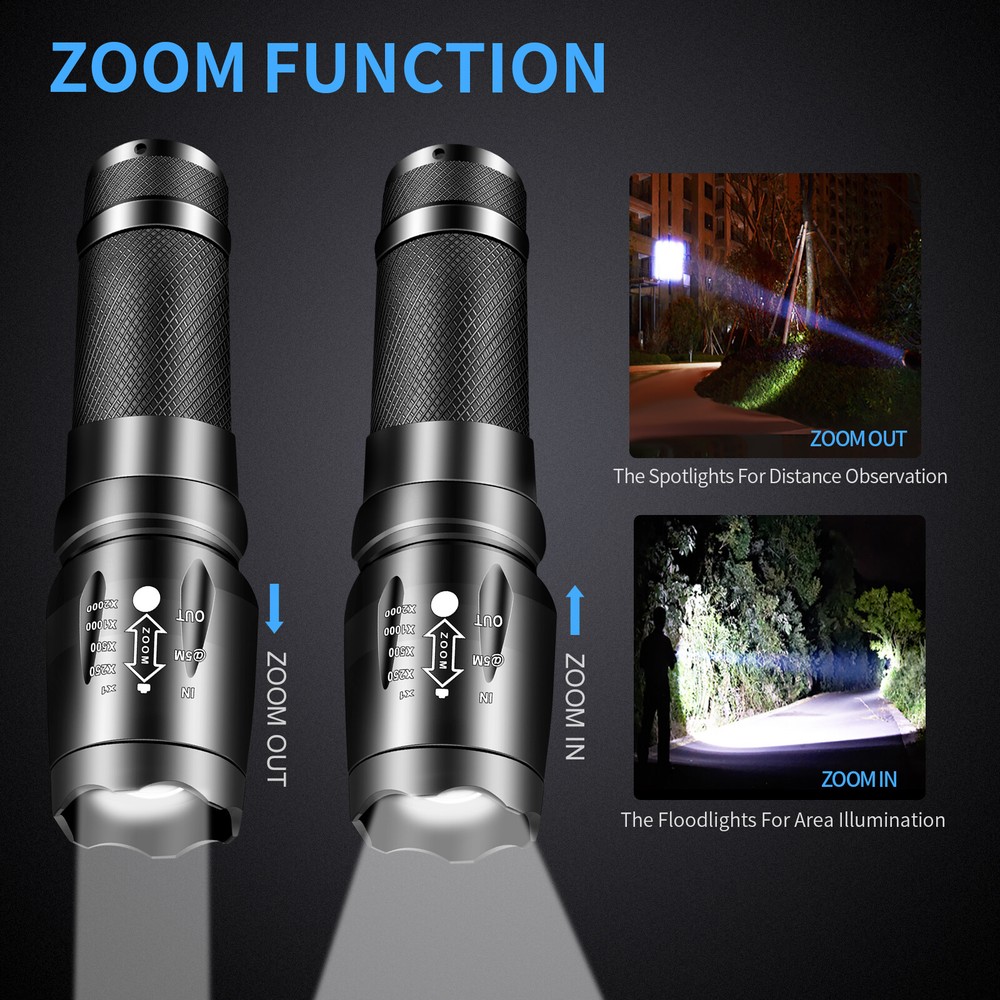 8Pcs Small Super Bright LED Flashlight Work Light Flashlights Torch Zoomable AAA Description: 1. [SUPER BRIGHT WITH 5 MODES] The small flashlight LED uses advanced LED beads, it can easily light up an entire room! Adjustable/zoomable focus with 5 modes: High- Medium- Low- Strobe- SOS (for Emergency). 2. [WATERPROOF] LED mini small flashlight torch can be used in any weather. The aluminum alloy body has no rust issue. 3. [PREMIUM QUALITY & LONG-LASTING] Our LED flashlight is made of high quality aluminum alloy, this super bright LED Flashlight is solid and sturdy, the edge designed is sharp and strong, can easily break the windows. 4. [MULTIFUNCTIONAL USES] Anti-abrasive, skid proof, compact design makes it the top pocket small LED flashlight for tactical situations, outdoor activities, camping, hiking, hunting, fishing, home use, military and as a powerful emergency light. Taclight is small enough to fit in your pocket, handbag, or car compartment, so you can take it with you wherever, whenever. 5. [Power Source] The LED flashlights working torch is powered by rechargeable battery 3.7v battery(18*65*O/26650 not included ) or 3X AAA battery(not included). Specification: Product Name: Super Bright LED flashlight Bulb: Super Bright LED Material: Aluminum Alloy Power Source : 1 * 26650/1*18*65*O/3 * AAA (All batteries are not included) Color: black Function: High/Medium/Low/Strobe/SOS Package includes: (without battery) 8x Super Bright LED Flashlight Small 8x Battery Tube 8x AAA Battery Holder On Jan 4, 2025 at 17:01:13 PST, seller added the following information: