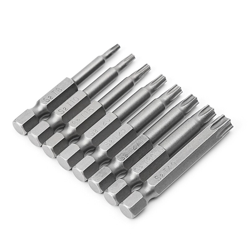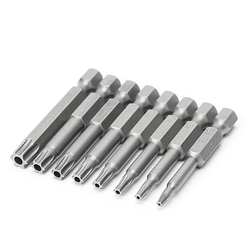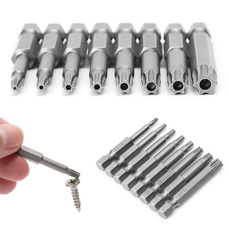 Description: brand new and high quality All torx bits have a centre bore Those Torx Screwdriver Bits are made of S2 alloy steel which is a commonly used material in hardware with high hardness bits are firmly fixed on screwdrivers Fit for electric screwdrivers, hand screwdrivers, electric drills, drills and so forth. 8 sizes a set at an inexpensive price can meet your requirements. Specifications Material: Alloy Steel Type of head: Torx Type of shank: 6.35mm / 1/4 inch hex Size: T8 T10 T20 T25 T27 T30 T40 Overall length: 50mm / 2 inch Quantity: 8 Pcs/1 Set Note: Please allow 1-3mm error due to manual measurement. pls make sure you do not mind before you bid Due to the difference between different monitors, the picture may not reflect the actual color of the item. Thank you! Package Contents: 1 Set x Torx Screwdriver Bit