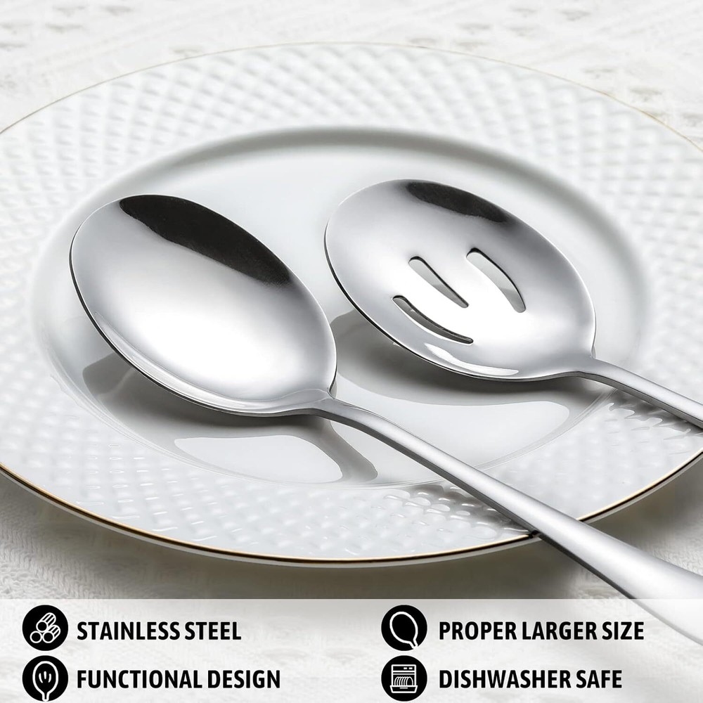 Free eBay listing template designed by dewiso.com Hiware 8-Piece Serving Spoons Set - Includes 4 Serving Spoons and 4 Slotted Spoons, 18/8 Stainless Steel Buffet Serving Utensils - Mirror Polished, Dishwasher Safe, 8.6-Inch FREE AND FAST SHIPPING! About this item Serving Spoons Set: Includes 4 Serving Spoons and 4 Slotted Serving Spoons. Ideal for catering, food service, picnics, weddings, buffets, holiday dinners, party serving, family reunions and everyday use. High Quality: Made of 18/8 stainless steel ensure your health, rust resistant to avoid additional investments, solid and sturdy structure will not chip or bend after heavy use, durable set to serve you well for years. Proper Size: The length of the whole spoon is 8.6", the bowl of the spoon is 2.9"L and 2.1"W. Perfect for serving appetizer, soup, salad, mashed potatoes, scurries, party platters, rice, ice cream and more. Classic Design & Easy to Clean: Highly mirror polished, smooth edges and comfortable handle. These serving spoons are completely dishwasher safe, so they are easy to clean up. If you're not completely satisfied simply let us know and we will offer a prompt refund or replacement, no questions asked. › Product We offer a 30-Day Return Policy on items which you are not completely satisfied with. You have the option for a full-refund or an exchange of the item. No returns are available on items shipped outside of the US . Shipping We offer Free Shipping to the US and ship within 2 business days of payment, usually sooner. We use UPS express shipping. That's why your products are usually delivered within 3 days . Contact We try our very best to make sure every customer is completely satisfied. If there's a problem , message us! We're happy to help. 24/7 live chat available.