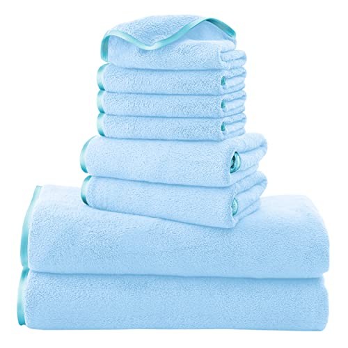 Return Policy Fast Delivery Trusted seller Microfiber 8-Piece Towel Set, 2 Bath Towels, 2 Hand Towels, and 4 Wash Cloths, Ultra Soft Highly Absorbent Towels for Bathroom, Gym, Hotel, Beach and Spa (Aquamarine) Product Description PREMIUM QUALITY CONSTRUCTION - Don't worry about the lint falling off. Don't worry about fading. SILK DETAIL - The edge of the towel uses silk hemming. Silky and soft without rubbing the skin. User friendly Microfiber coral velvet Widely Used in Options- These quick dry towels are versatile plush fabric towel, perfect for you to take to the gym, beach, pool or other endless places. ULTRA SOFT - COMFORTABLE & SOFT - Highly absorbent, yet light-weighted. Gives the body a soft and delicate touch while absorbing the moisture. For personal care and beauty- such as hair turban, hair drying towel, sports towel, travel towel, bath towel bathrobe, bath wrapper. EASY CARE - Microfiber towels are machine washable and tumble dry on low heat. Anti-shrinkage, anti-wrinkle and lint-free. Please do not use bleach and do not iron. SET OF 8 - The towels sets includes 2 bath towels measuring 27 x 54 inches each; 2 hand towels of 16 by 28 inches each; and 4 washcloths of 12 inch by 12 inches. The plush microfiber towel set are strong and durable, extremely cost-effective in the long run. Shipping Returns Payment Shipping Shipping is FREE to all addresses other than APO/PO boxes in the lower 48 states. All our stock ships from US-based warehouses. Shipped via USPS or UPS (depending on location and package weight) Unless stated otherwise, all orders will ship within 24-72 hours of your payment being processed. Check our feedback to see the great reviews of FAST shipping we offer. Returns Seller does not accept returns Payment We currently accept payment via eBay managed payments only. Once payment is cleared, we will dispatch your shipment within 1-3 business days. Please refer to the "Shipping" tab for more information regarding shipping speed to your destination.