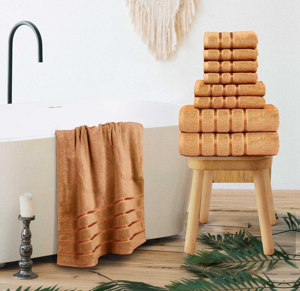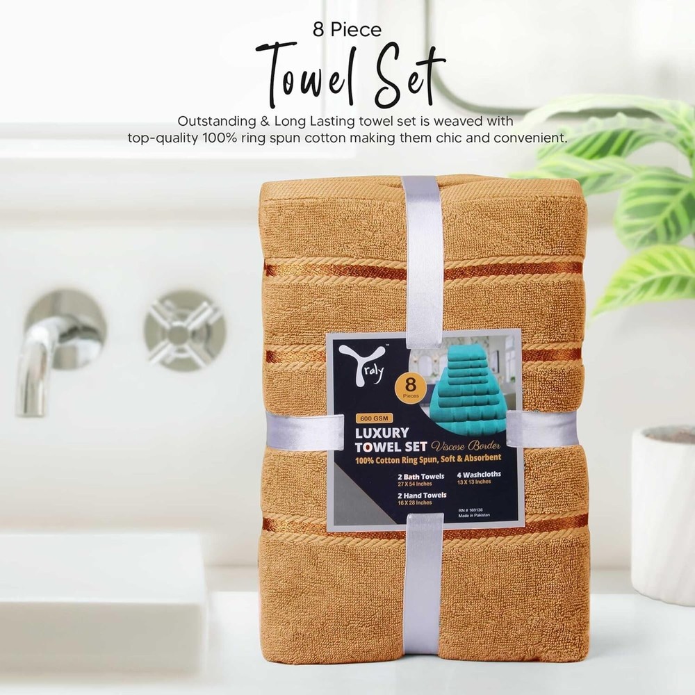 8-Piece Bath Towel Set - 600 GSM Cotton with Elegant Viscose Border