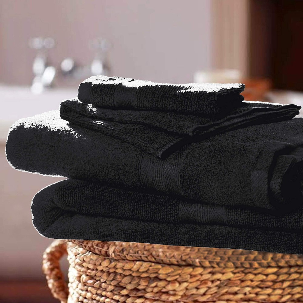 These towels are a game-changer! The cotton is so plush and absorbent—it feels like a luxury hotel experience at home. The set has everything you need, from oversized bath towels to soft washcloths, all with sturdy stitching that holds up wash after wash. They dry fast and stay super soft, making them perfect for daily use. The rich black color adds a sleek touch to any bathroom. Highly recommend for anyone who wants spa-quality towels without the spa price tag!