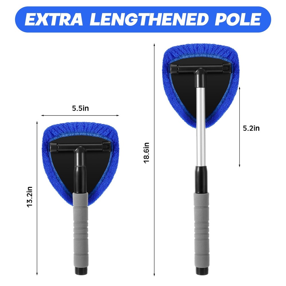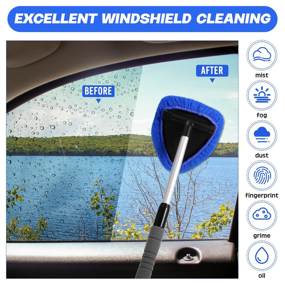 Car Window Cleaner Kit with 4 Microfiber Pads & Extendable Handle