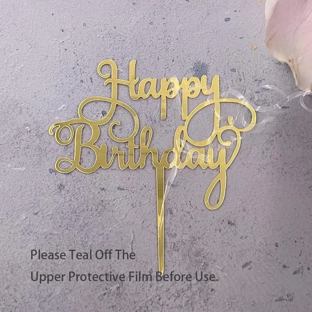 $ 9.896-Pack Double-Sided Glitter Acrylic Happy Birthday Cake Toppers in Gold