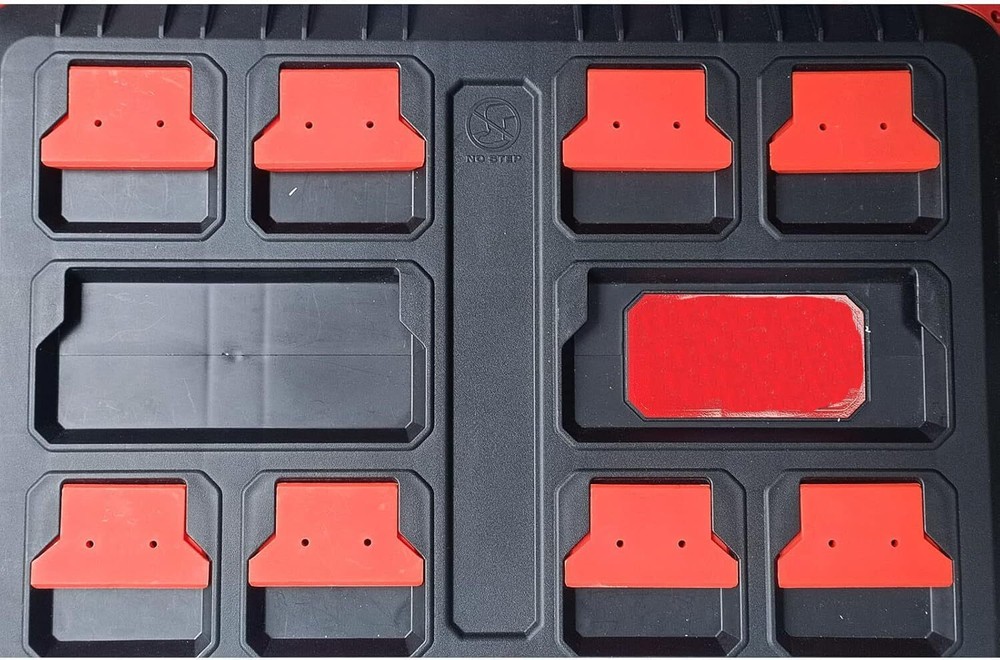 ★Function:Compatible with the Milwaukee Packout System.Add what you want to your milwaukee packout suitcase.Use them for plywood to make a work top/bench on packout. ★Perfect & Tight Fit:Great accessorie for your Milwaukee collection.Ride very conveniently atop your PackOut.Get a good connection with packout lids.Easy one handed release but still holds on if youflip the lid upside down. ★No 3D printed Material:These packout mount accessories are make of very durable ABS plastic.They are very strength and durability. ★Tricks for attachment:Put the mounting plate in your Packout, lay a piece of paper out, and poke holes or use marker and mark the screw holes, then put your paper template on your non-Packout item. ★100% Satisfaction Guarantee: We believe our Feet for Packout have good quality and our service will obtain your alike. Please feel free to contact us if you have any question. JILINWEI Mounting Feet for Milwaukee Packout Light friction holds feet securely in slot. Just simply screw/bolt the 'feet' to the base of the box, vacuum, panel etc and you're ready to attach it to your Milwaukee Packout cases. Made from high quaility ABS plastics. Package Contents: 8 x Mounting Feet for Packout(Red)