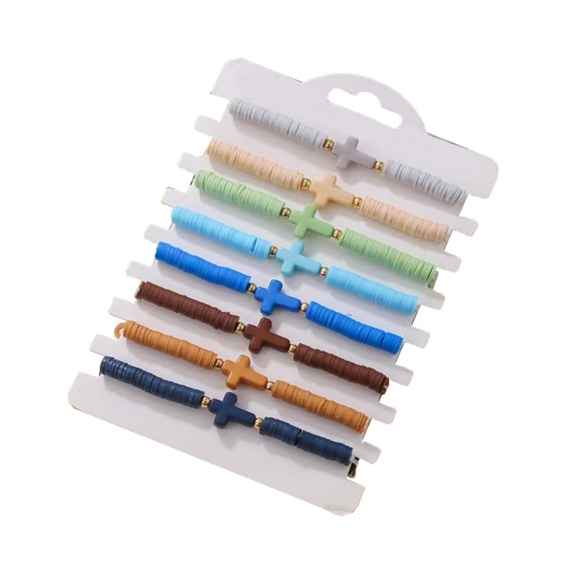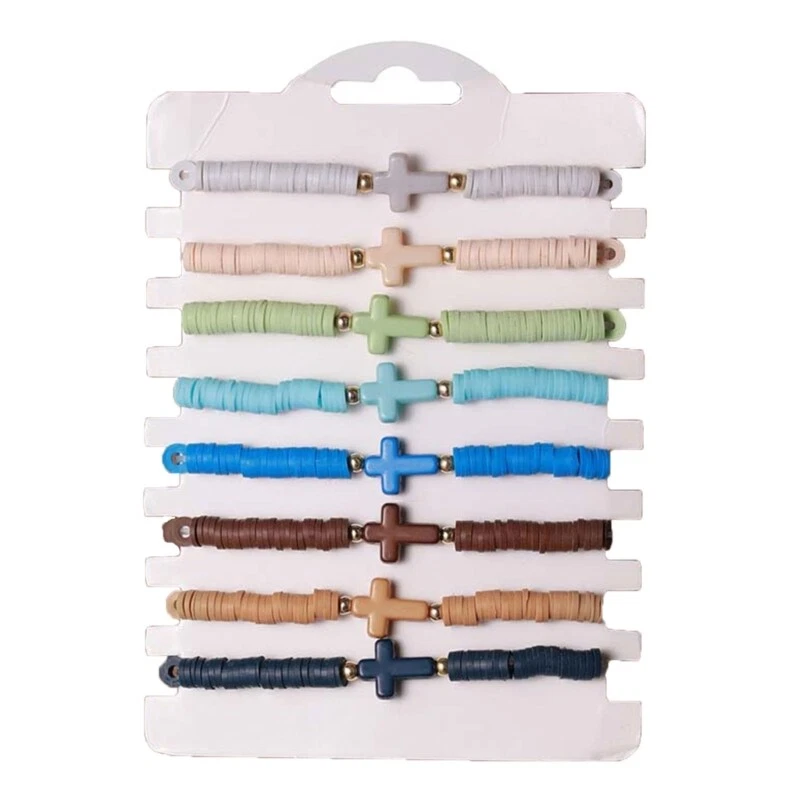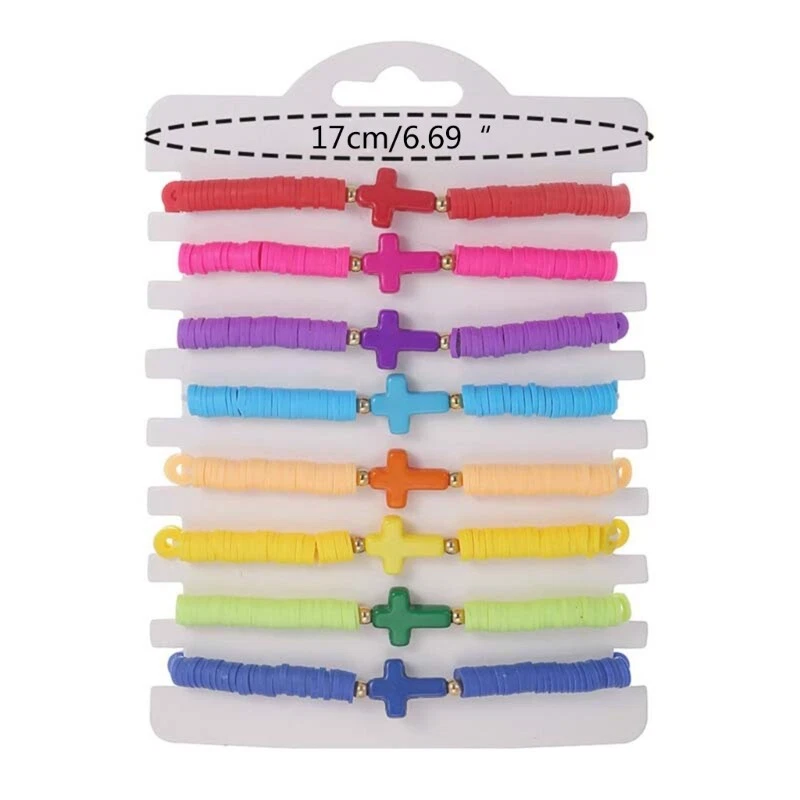 Features: This cross set features adjustable elastic cords, making it suitable for daily wear and various occasions. Made from clay and resin, these bracelets are durable and comfortable to wear. for individuals who appreciate unique and styles, these cross bracelets are for those who want to showcase their beliefs and aesthetic taste. Whether it is a birthday, holiday, party, or wedding, these bracelets can be worn to add a touch of elegance and spirituality to any special occasion. These beautiful cross bracelets make a wonderful yourself, and family, symbolizing love, protections, and Specifications: Clay, Resin Size: Detail Sizes in the Pictures Package Includes: 8x Elastic Bracelets note: Please allow 1-2cm errors due to manual measurement. Due to the difference between different monitors, the picture may not reflect the actual color of the item.