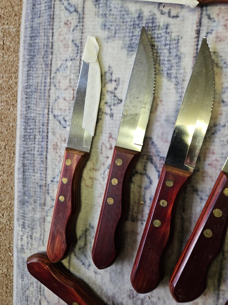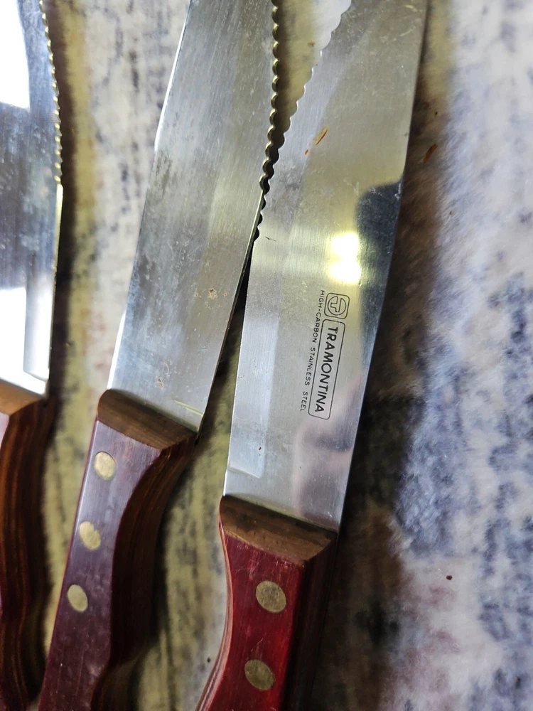 Blade Edge:StraightCountry/Region of Manufacture:BrazilBlade Length:5 inType:Carving & Slicing KnivesUPC:Does not applySet Includes:Serrated KnifeMaterial:Stainless SteelNumber of Items in Set:8Features:Multi Functional, Reusablegtin13:Does not applyFood Compatibility:MeatBrand:TramontinaHandle Material:Wood